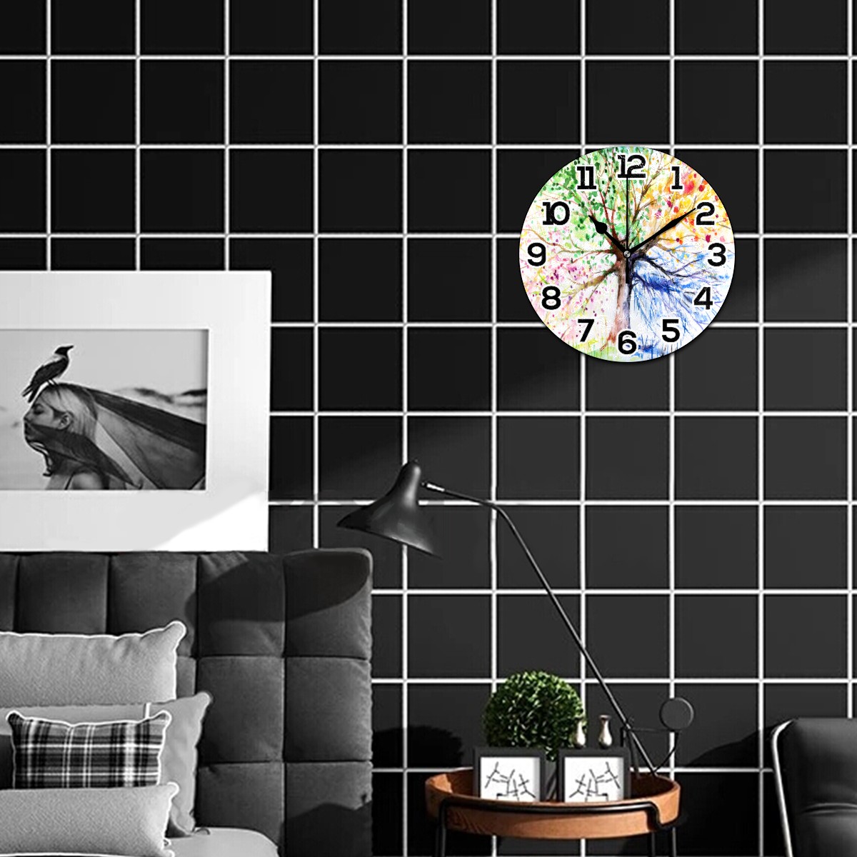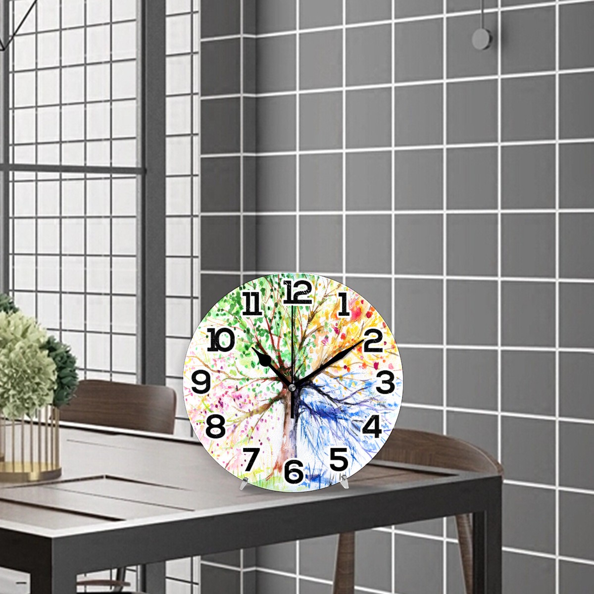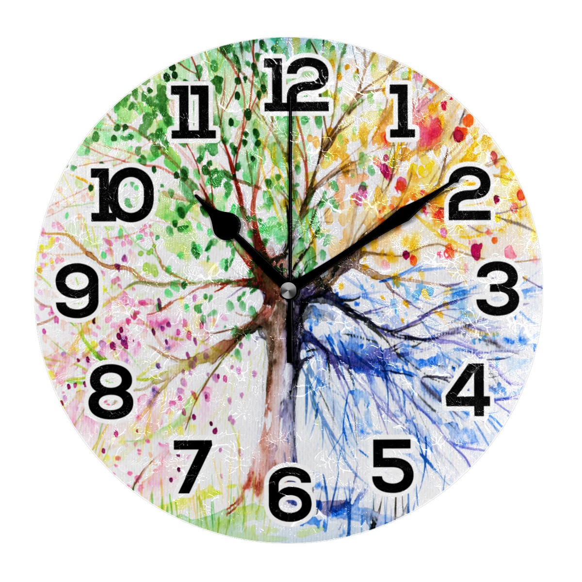 Colorful Art Four Seasons Tree Clock Wall Decor Acrylic Decorative Round Battery Operated Wall Clocks for Home Bedroom Living Room Decor Silent Non Ticking