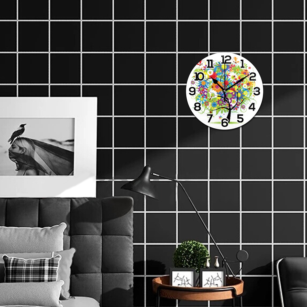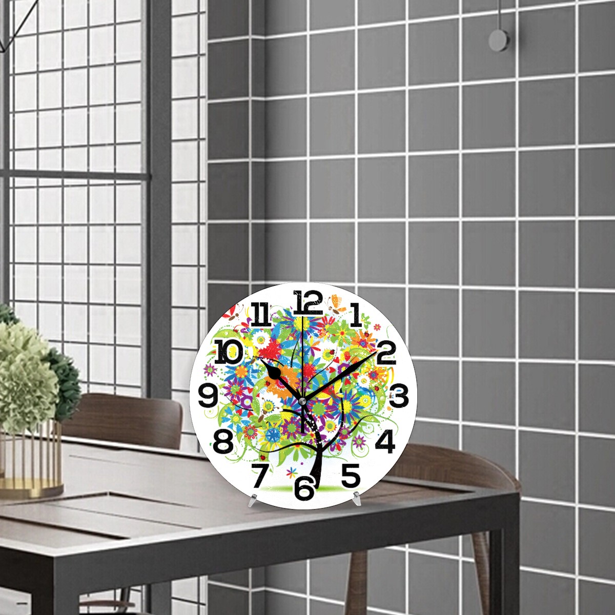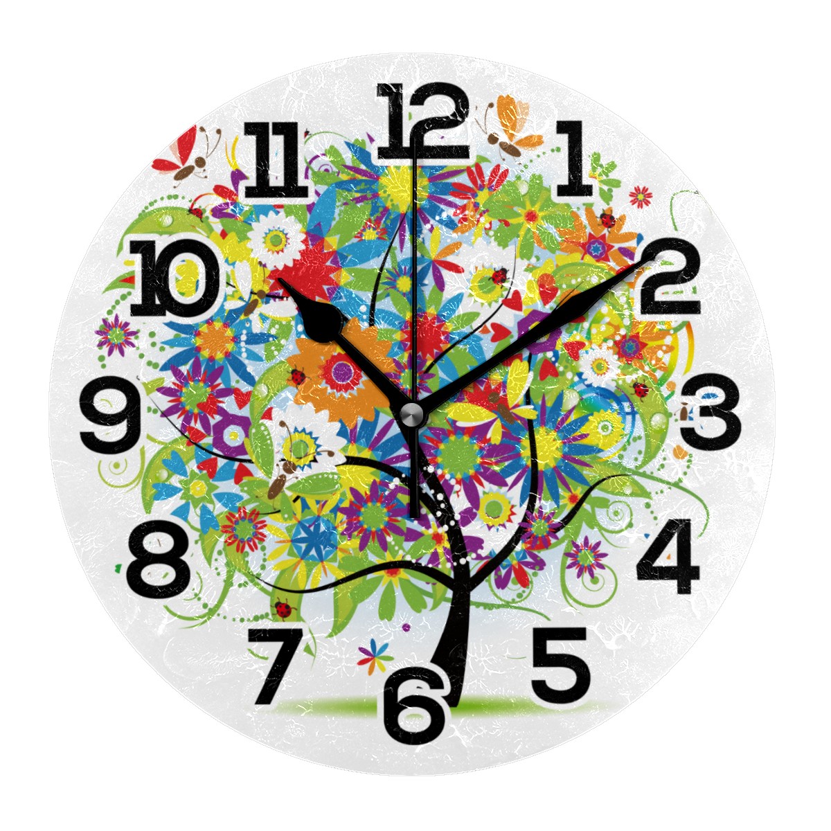 Colorful Rainbow Painting Tree Clock Wall Decor Acrylic Decorative Round Battery Operated Wall Clocks for Home Bedroom Living Room Decor Silent Non Ticking