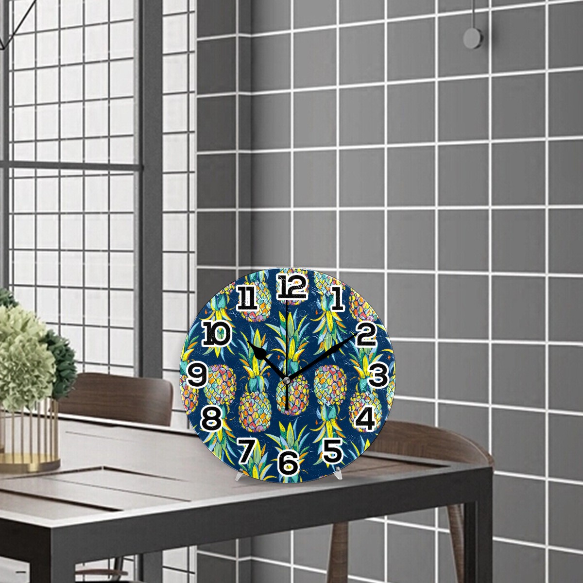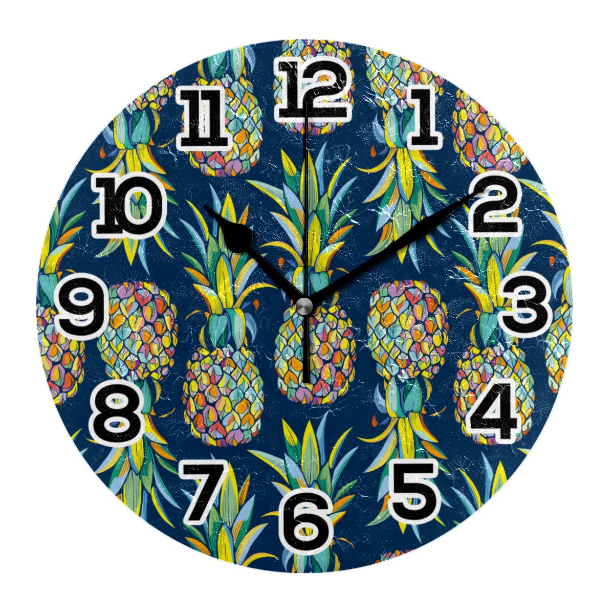 Colorful Pineapple Fruit Pattern Clock Wall Decor Acrylic Decorative Round Battery Operated Wall Clocks for Home Bedroom Living Room Decor Silent Non Ticking