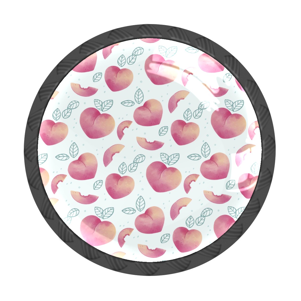 Cabinet Drawer Knobs Set of 4 Pink Peach Fruit Pattern Light Blue Cabinet Furniture Knobs Drawer Pulls Handle Crystal Glass Round Cupboard Knobs with Screws for Cabinets Kitchen Dresser Wardrobe DIY