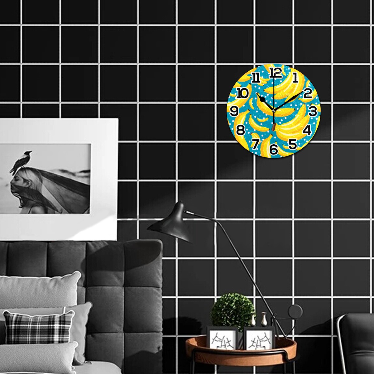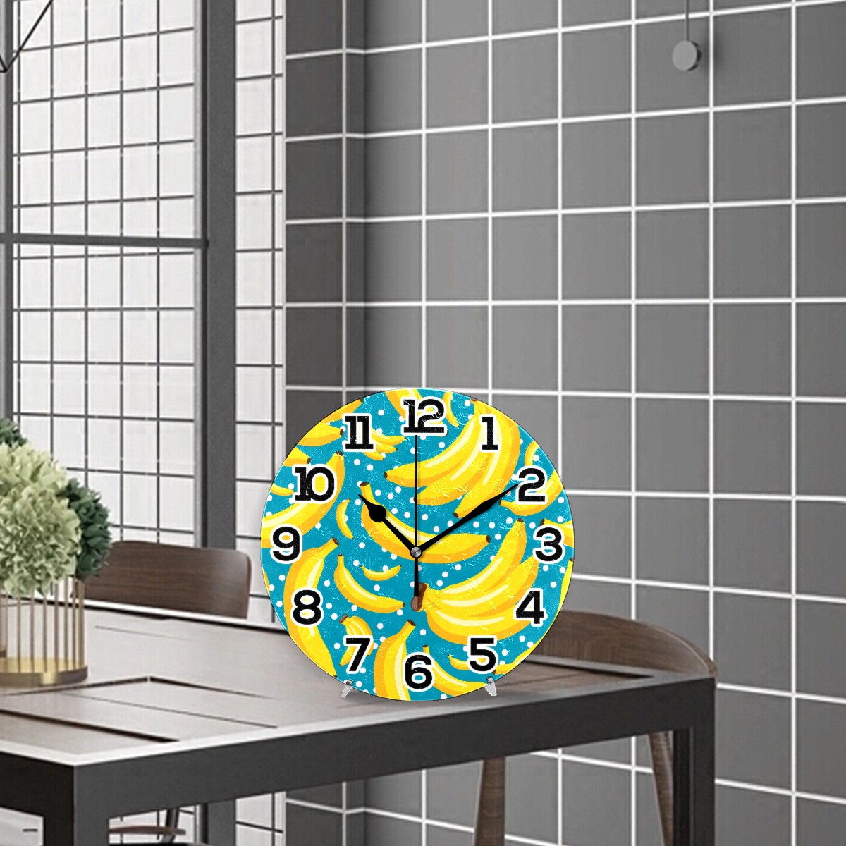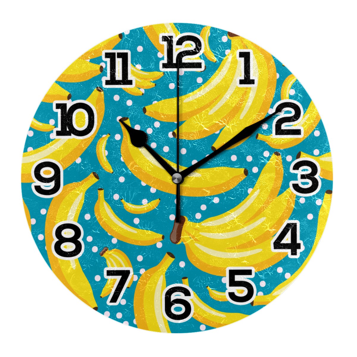 Banana Dot Pattern Clock Wall Decor Acrylic Decorative Round Battery Operated Wall Clocks for Home Bedroom Living Room Decor Silent Non Ticking