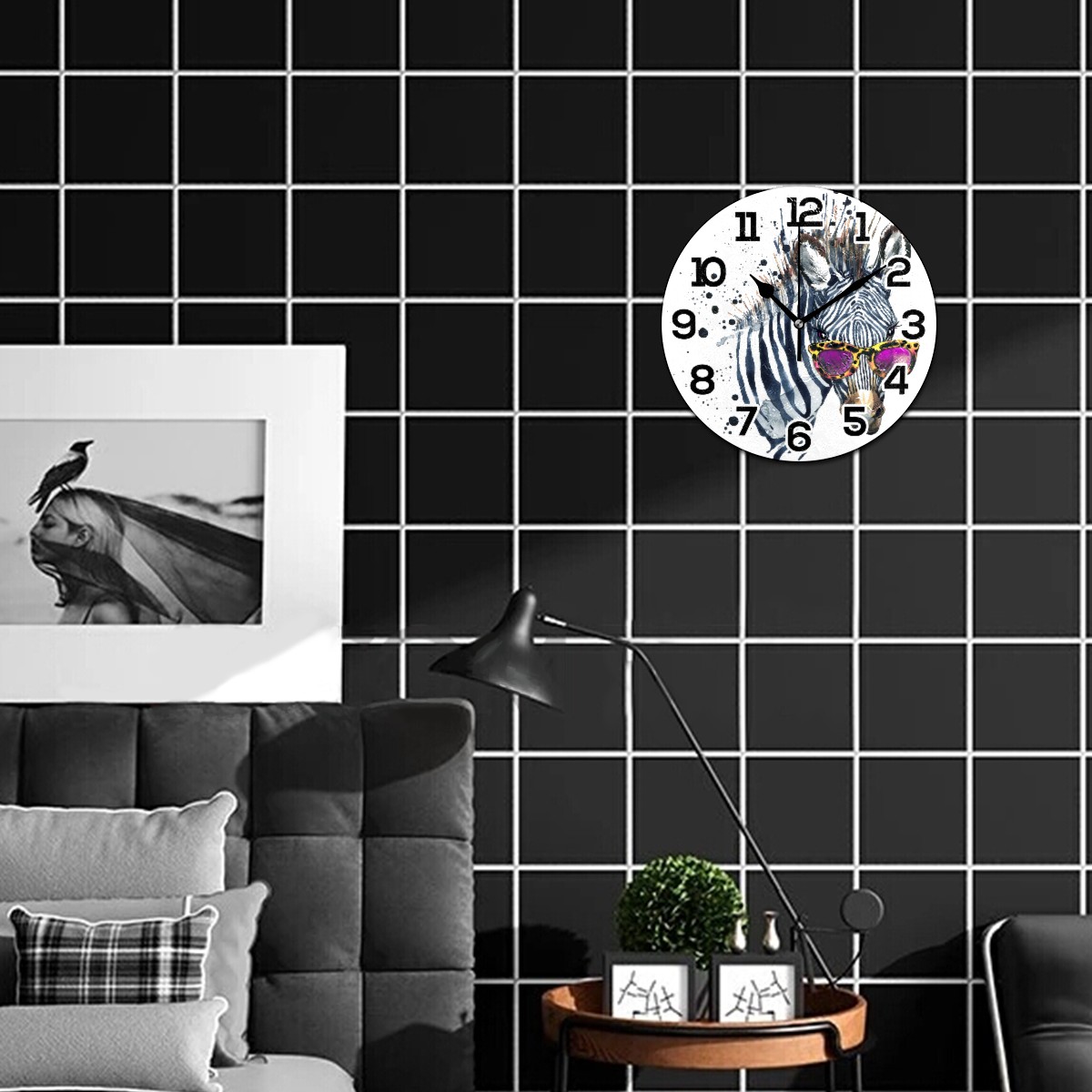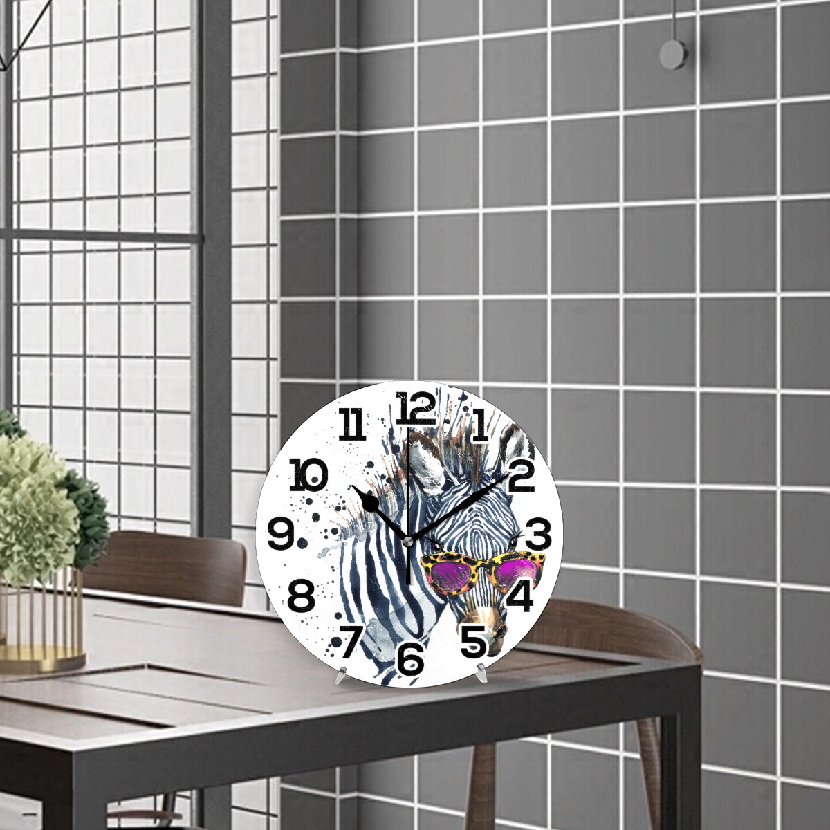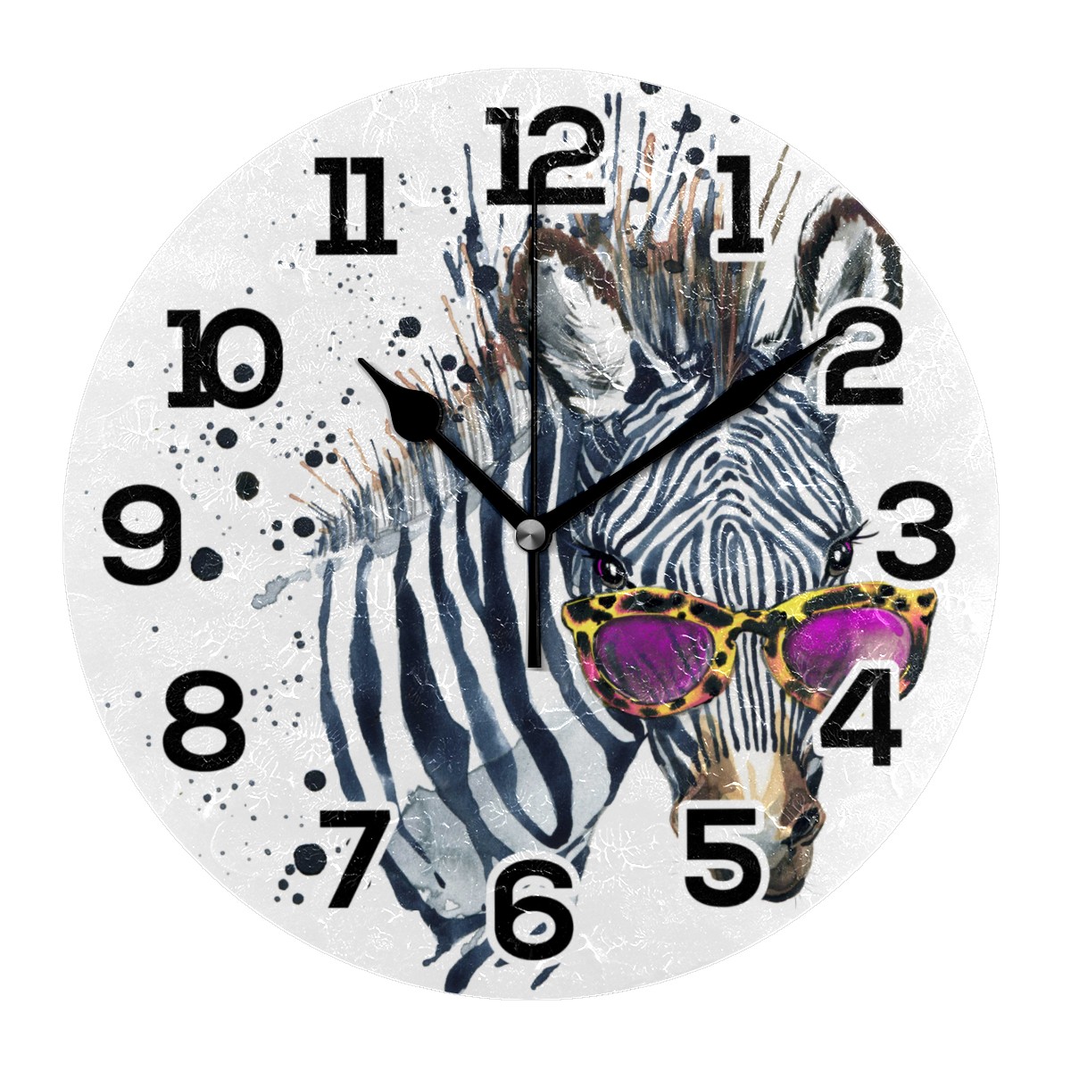 Watercolor Hipster Zebra With Glasses Clock Wall Decor Acrylic Decorative Round Battery Operated Wall Clocks for Home Bedroom Living Room Decor Silent Non Ticking