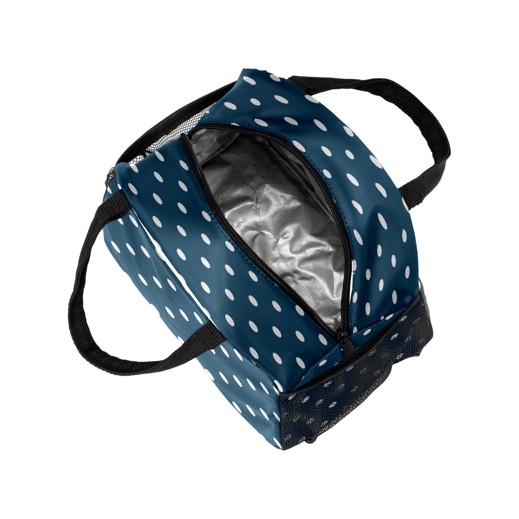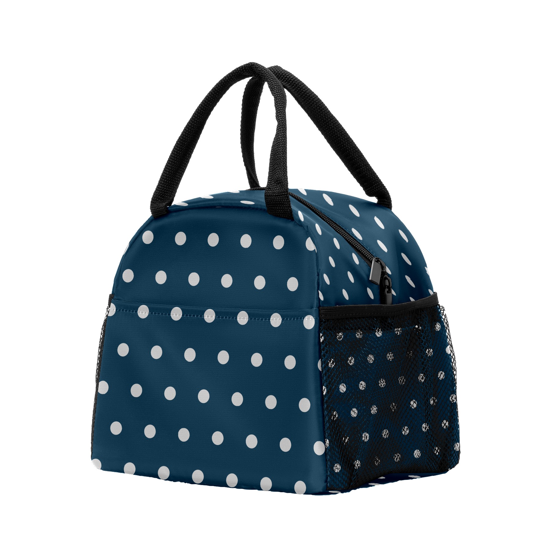 Lunch Bag for Women Men, Rero Blue White Polka Dot Insulated Reusable Lunch Box Thermal Cooler Tote Bag for Work Picnic Hiking Travel Beach