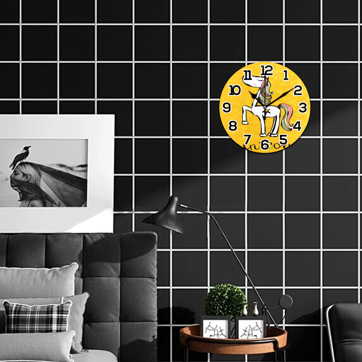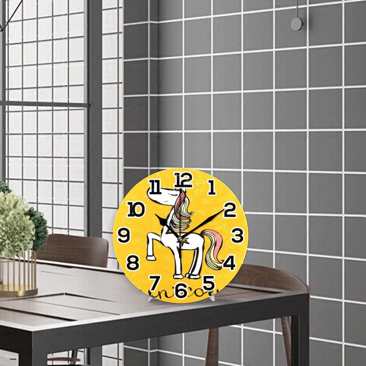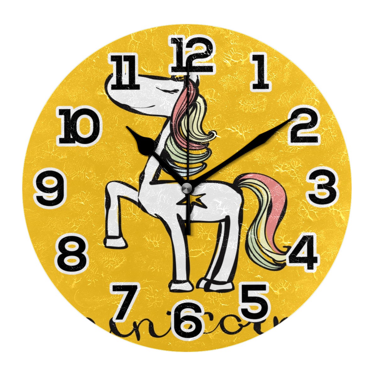 Yellow Cartoon Unicorn Clock Wall Decor Acrylic Decorative Round Battery Operated Wall Clocks for Home Bedroom Living Room Decor Silent Non Ticking