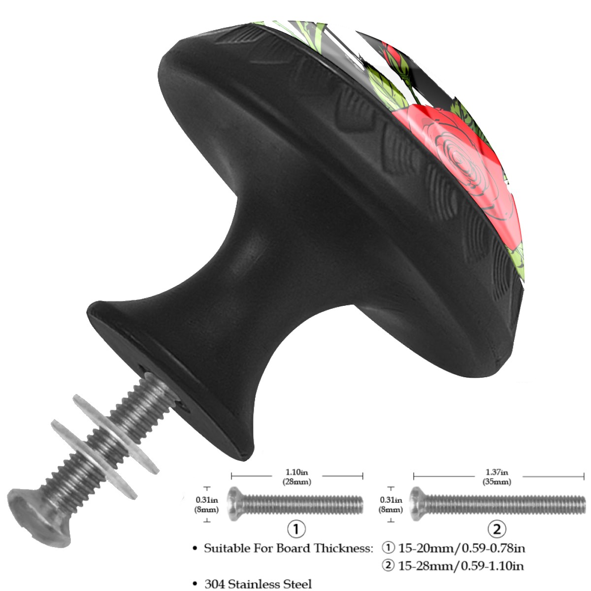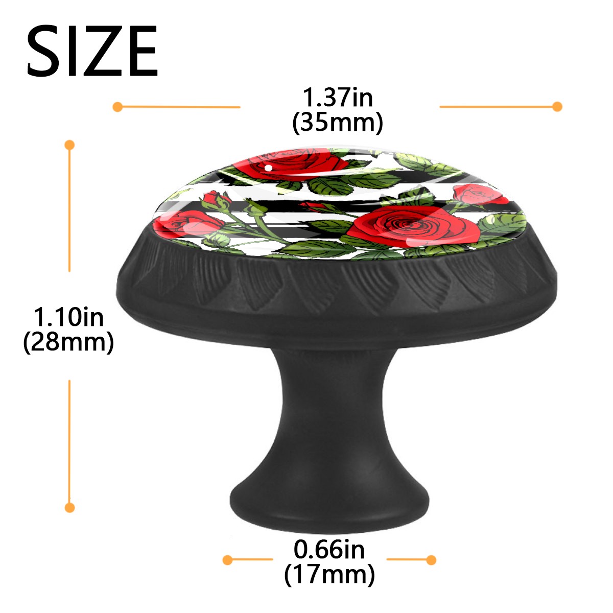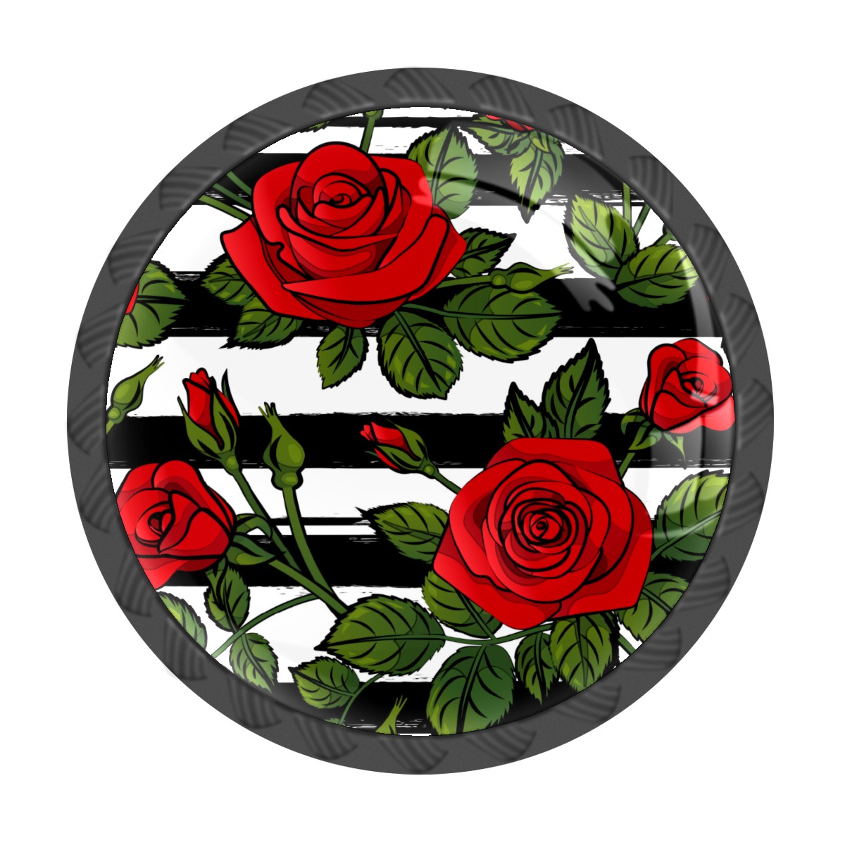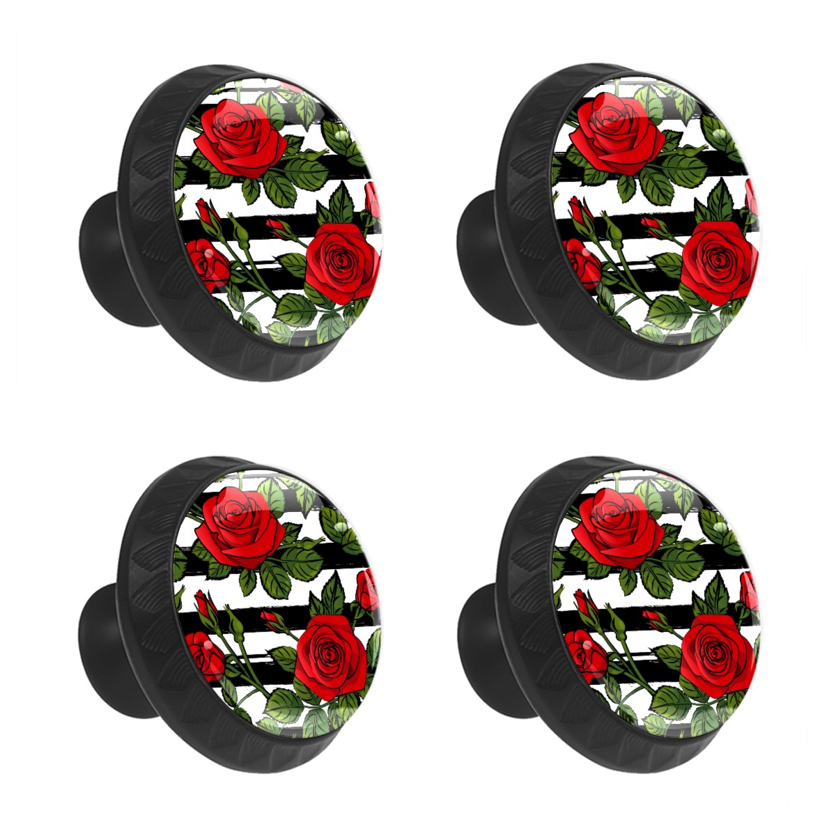 Cabinet Drawer Knobs Set of 4 Blooming Red Roses Black White Stripes Cabinet Furniture Knobs Drawer Pulls Handle Crystal Glass Round Cupboard Knobs with Screws for Cabinets Kitchen Dresser Wardrobe DIY