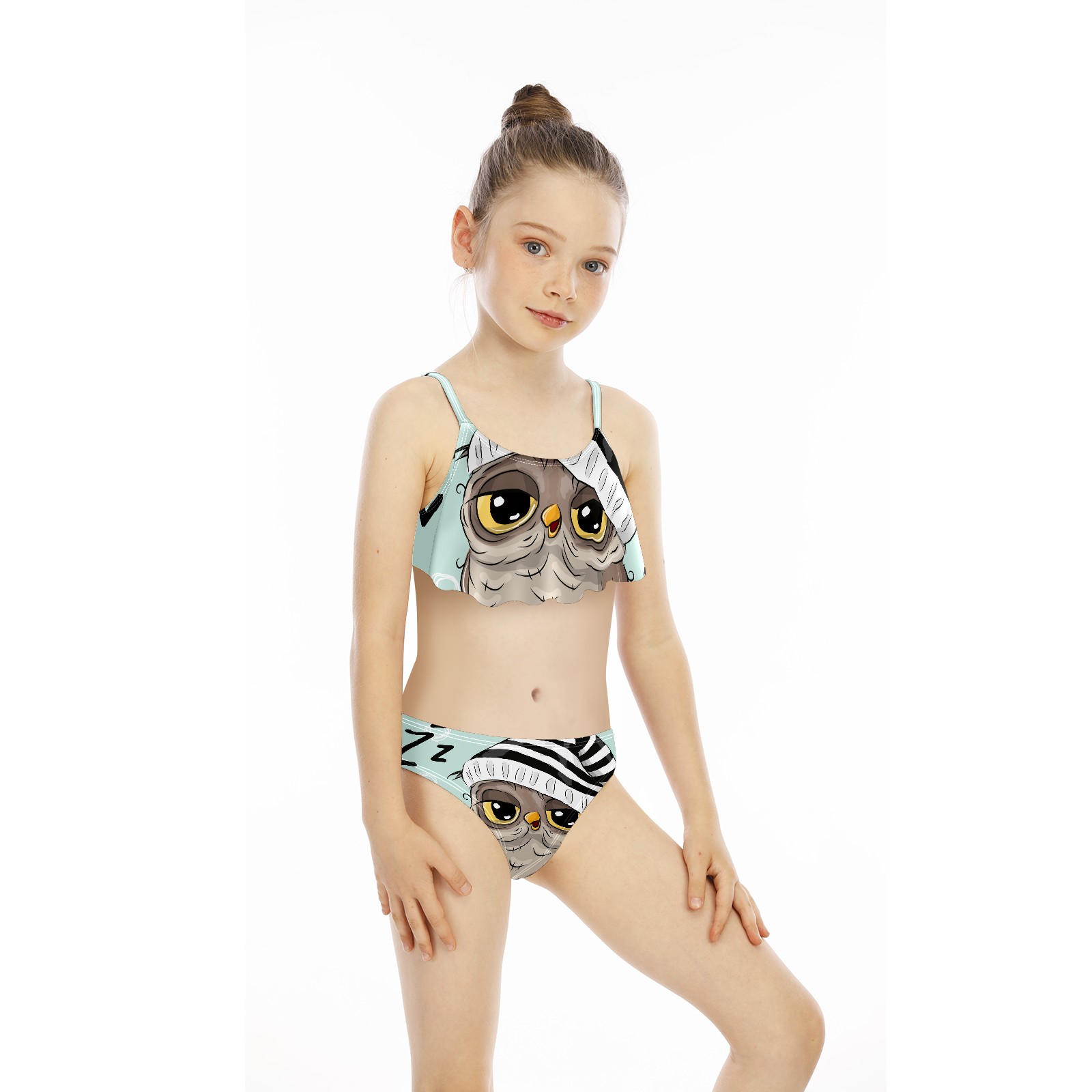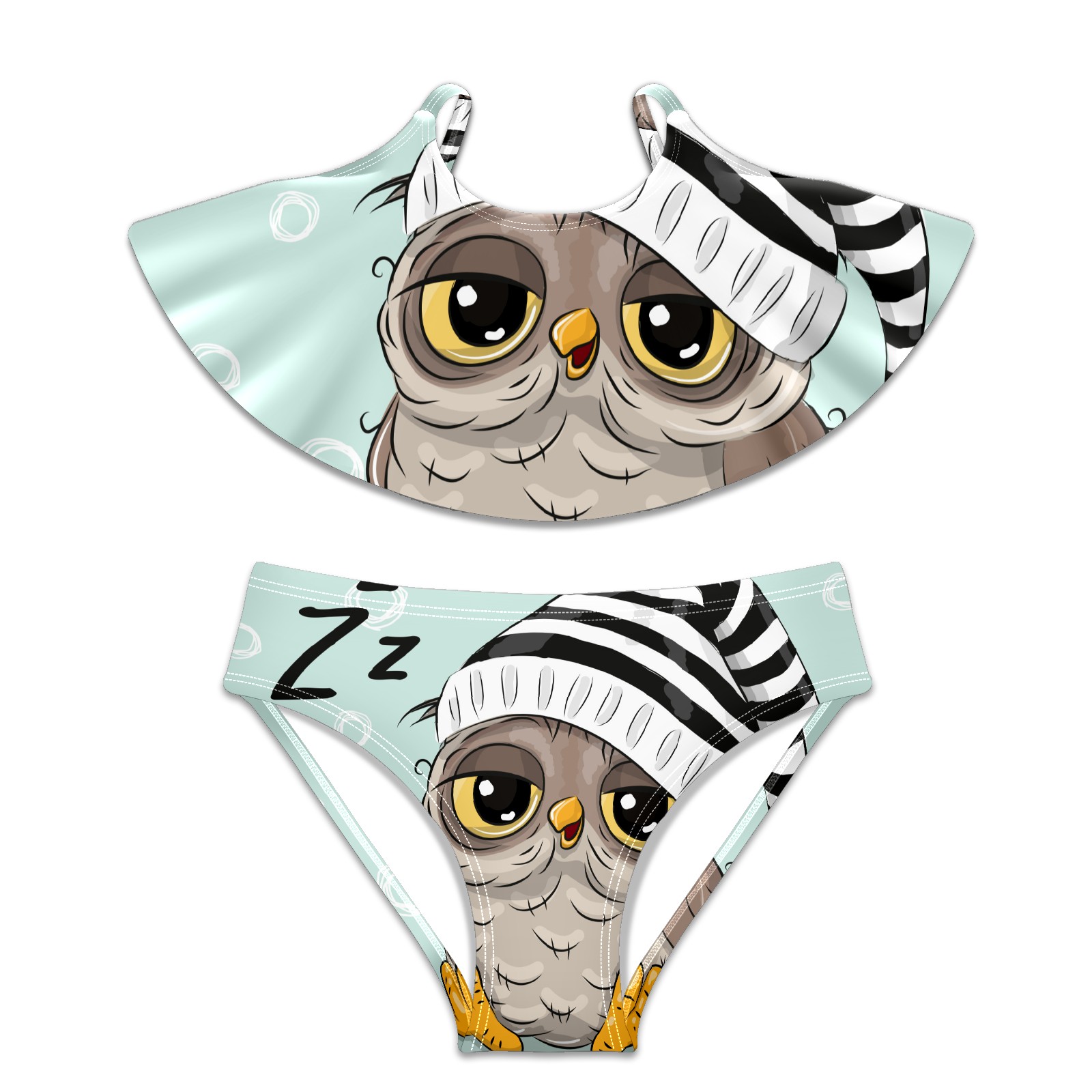 Swimsuits for Girls Two Pieces Bathing Suit Quick Dry Swimwear Cartoon Animal Owl Bird S