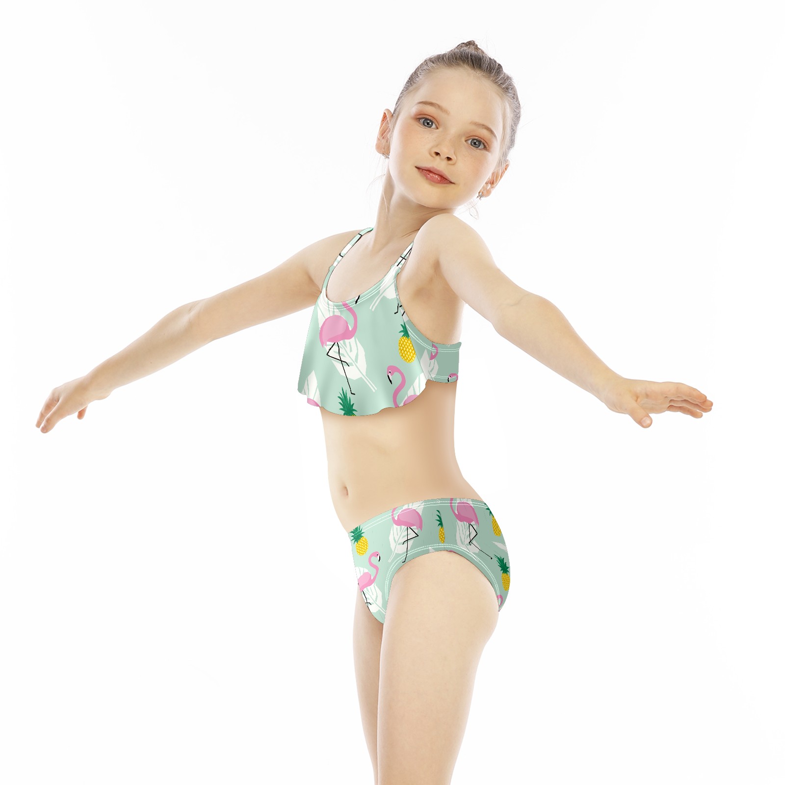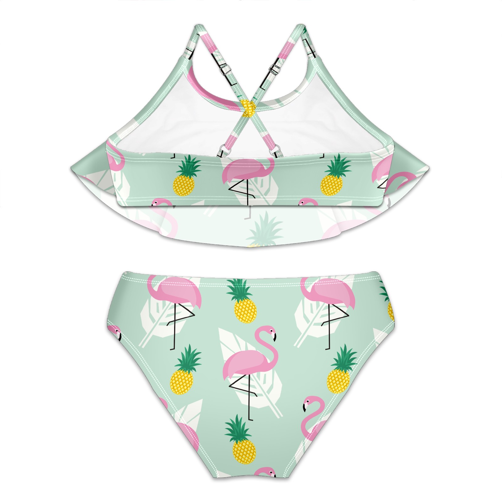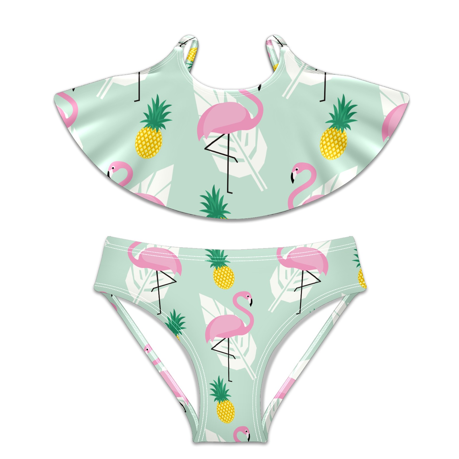 Swimsuits for Girls Two Pieces Bathing Suit Quick Dry Swimwear Tropical Flamingos Pineapple S