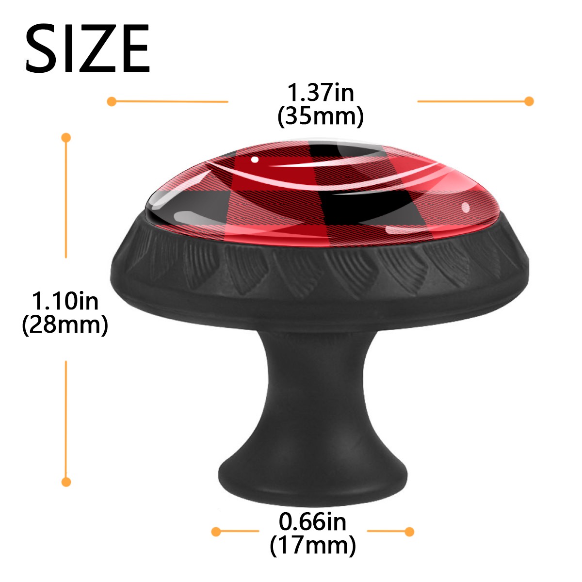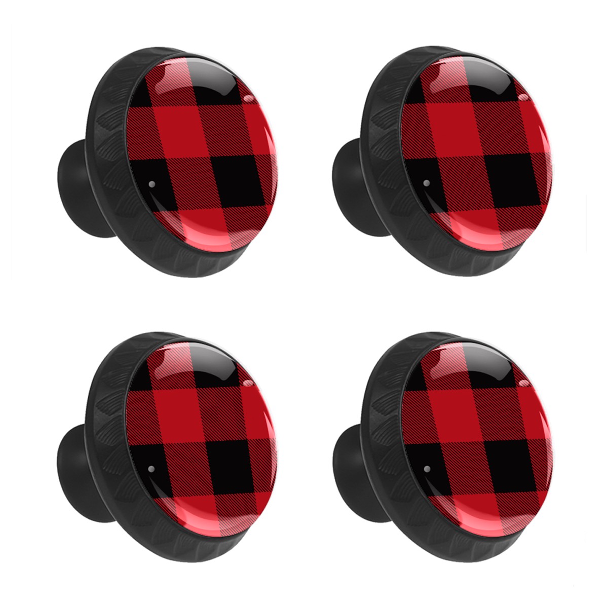 Cabinet Drawer Knobs Set of 4 Black Red Big Buffalo Plaid Pattern Classic Cabinet Furniture Knobs Drawer Pulls Handle Crystal Glass Round Cupboard Knobs with Screws for Cabinets Kitchen Dresser Wardrobe DIY