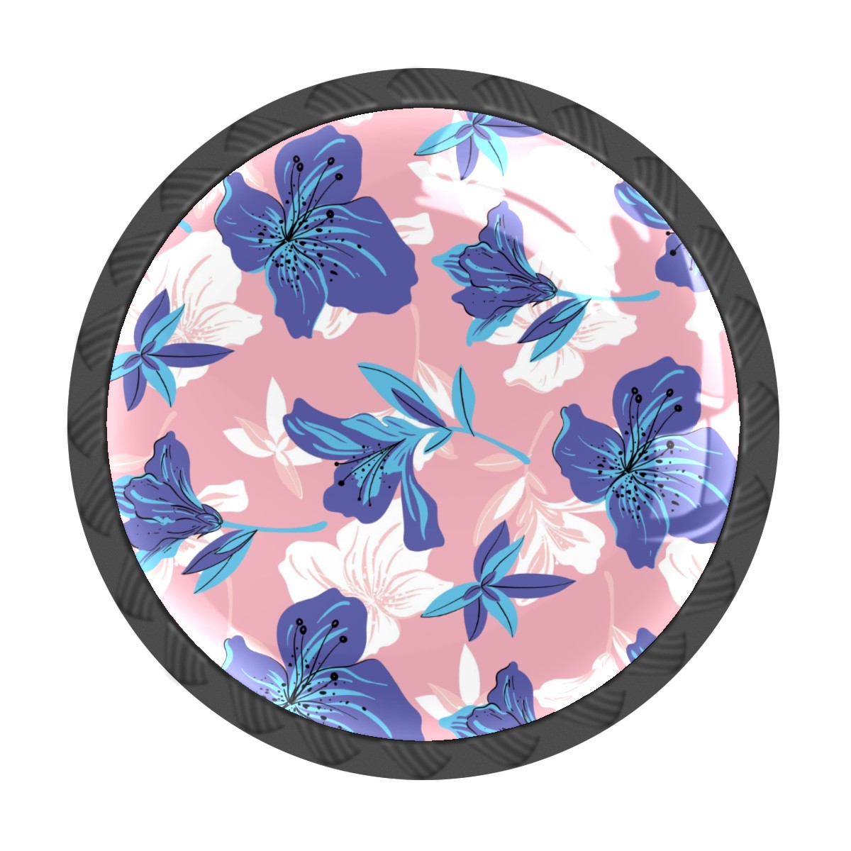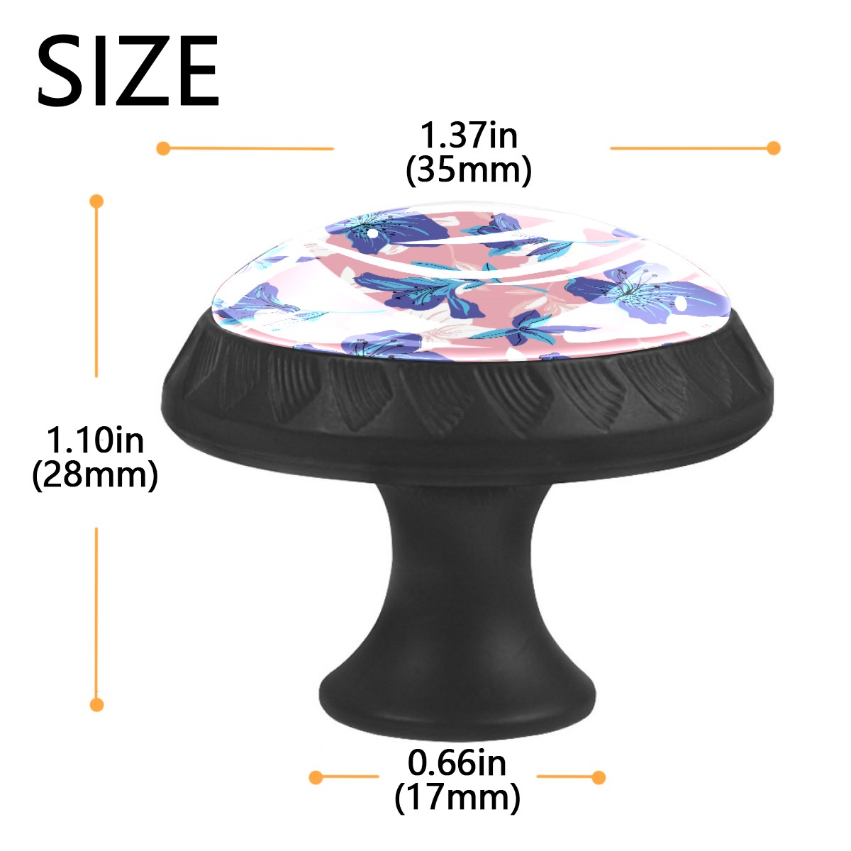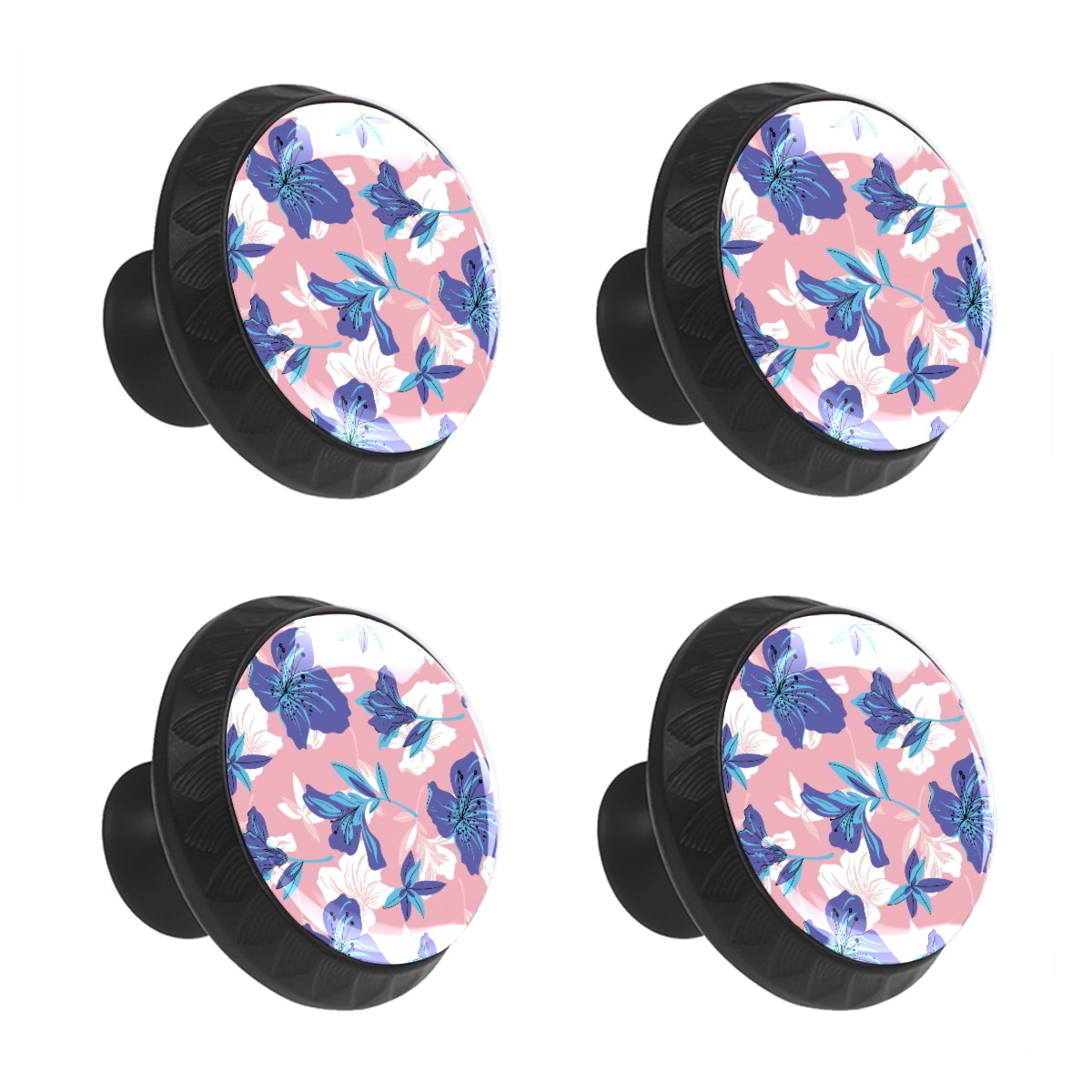 Cabinet Drawer Knobs Set of 4 Purple White Pastel Flower Pattern Pink Cabinet Furniture Knobs Drawer Pulls Handle Crystal Glass Round Cupboard Knobs with Screws for Cabinets Kitchen Dresser Wardrobe DIY