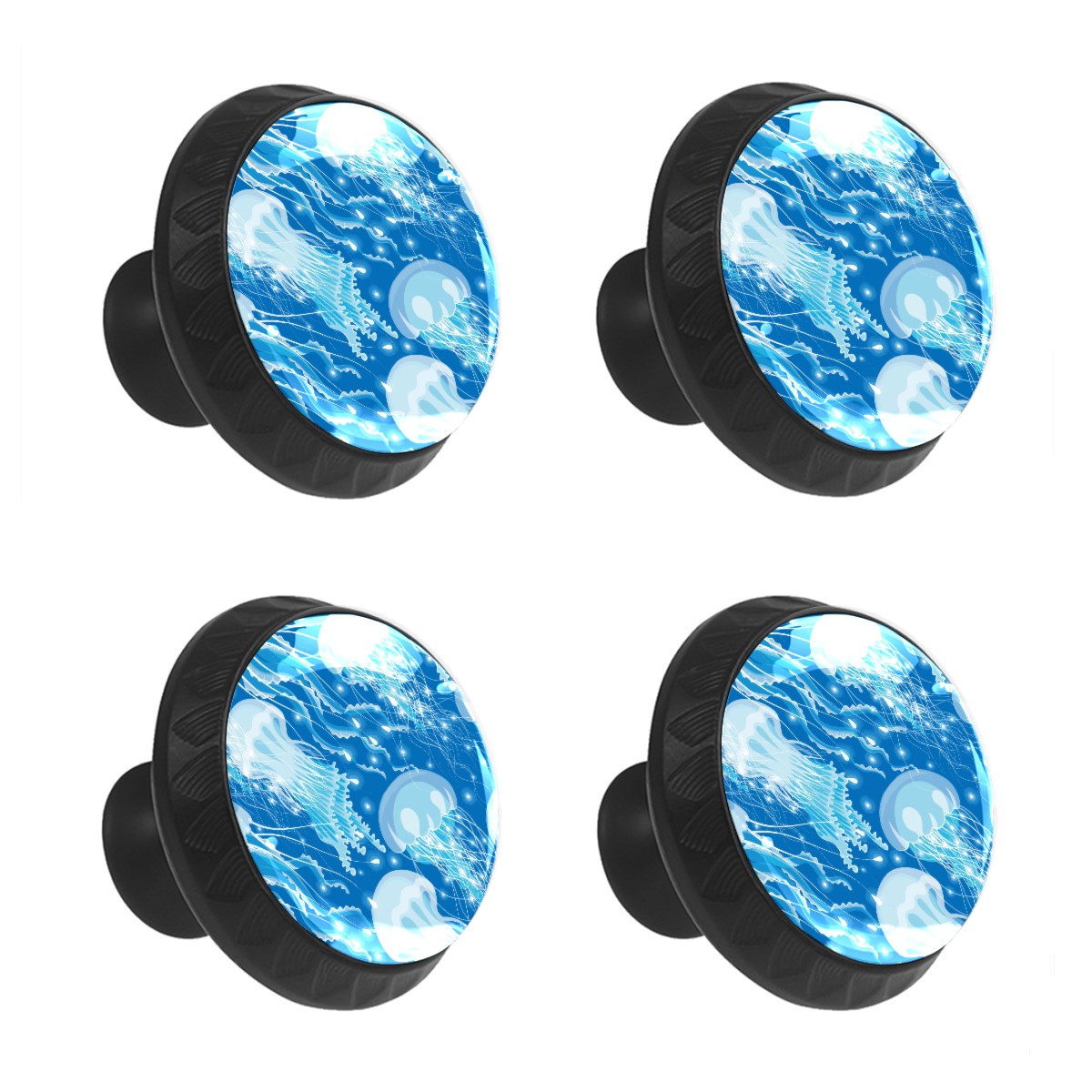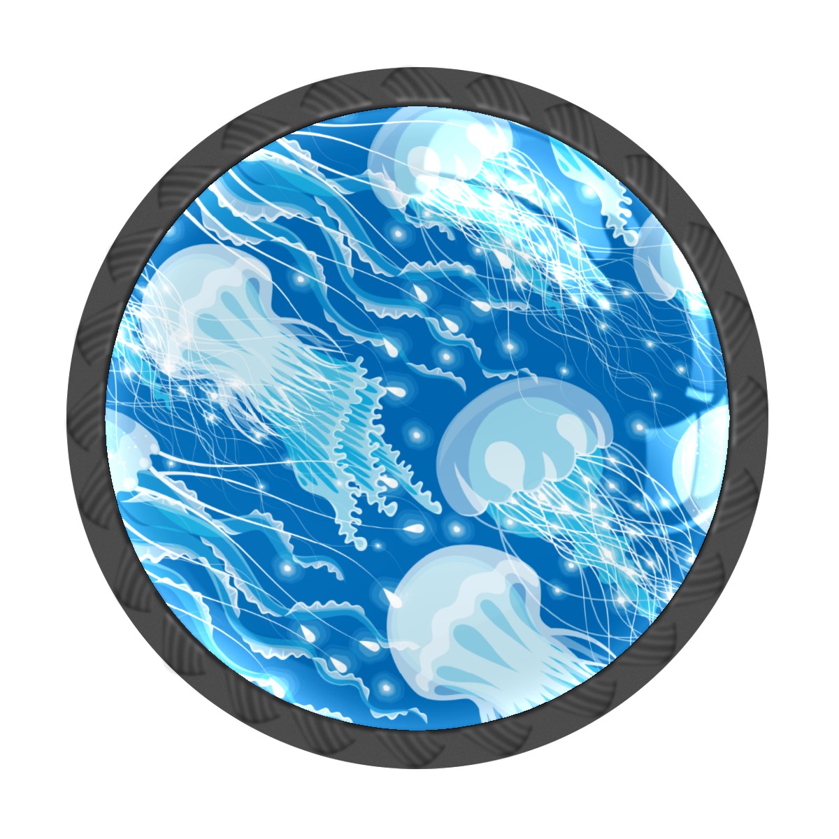 Cabinet Drawer Knobs Set of 4 Blue Ocean Life Jellyfish Beautiful Cabinet Furniture Knobs Drawer Pulls Handle Crystal Glass Round Cupboard Knobs with Screws for Cabinets Kitchen Dresser Wardrobe DIY