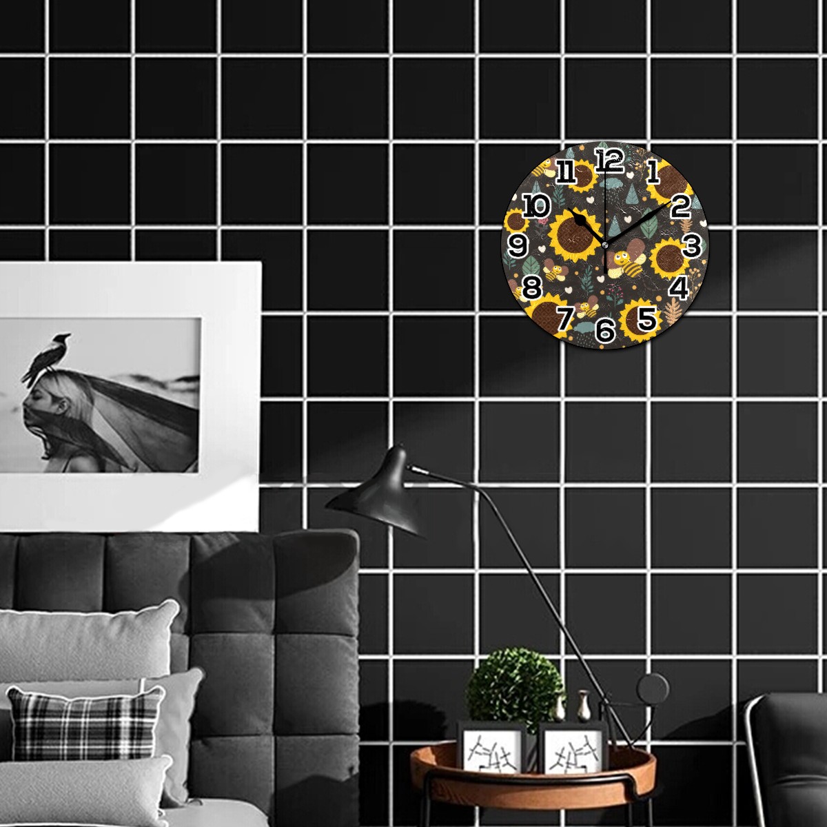 • <p>Our wall clock is perfect for hanging outdoors or indoors,&nbsp; living room, bedroom, kitchen, bathroom, office, dining room, sewing room or any other room. Beautify your space, bring different color to your space. It is not only a decoration, but also a great gift for Christmas/Birthday/Kids/Family/Friend.</p><p></p><p>Product Size: 9.5" diameter x 0.25" thickness;</p><p></p><p>Material: MDF frame, Wood mechanism housing, Metal clock hands.</p><p></p><p>Non ticking: Quiet sweep second hand, no ticking to ensure a good sleeping or working environment.</p><p></p><p>Power Source: 1 x AA battery(not included)</p><p></p><p>Package Included: ONE Wall Clock</p><p></p><p>LARGE NUMBER</p><p>Large white numbers on the dark wood dial face, easy to see from a distance or side. Perfect for grandpa and grandma, parents or any others have poor sight.</p><p>Silent Movement</p><p>Quality Scanning Quartz Movement ensure accurate time and absolutely silent environment. Not bother you reading, working, thinking, conversing or sleeping.</p><p>CUSTOMER SERIVCE</p><p>Please feel free to contact us if you have any questions.</p>