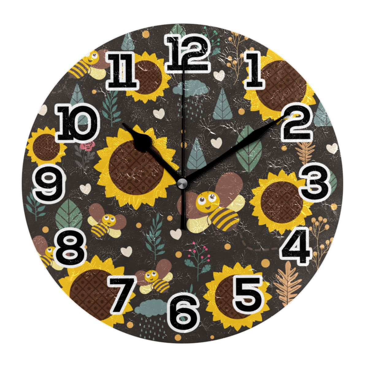 Sunflower With Bee Clock Wall Decor Acrylic Decorative Round Battery Operated Wall Clocks for Home Bedroom Living Room Decor Silent Non Ticking