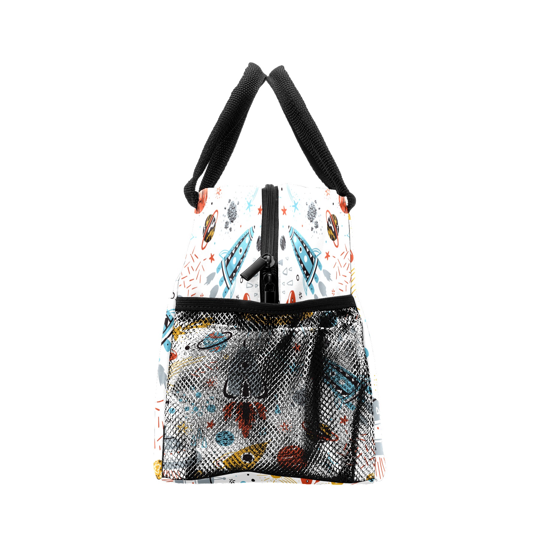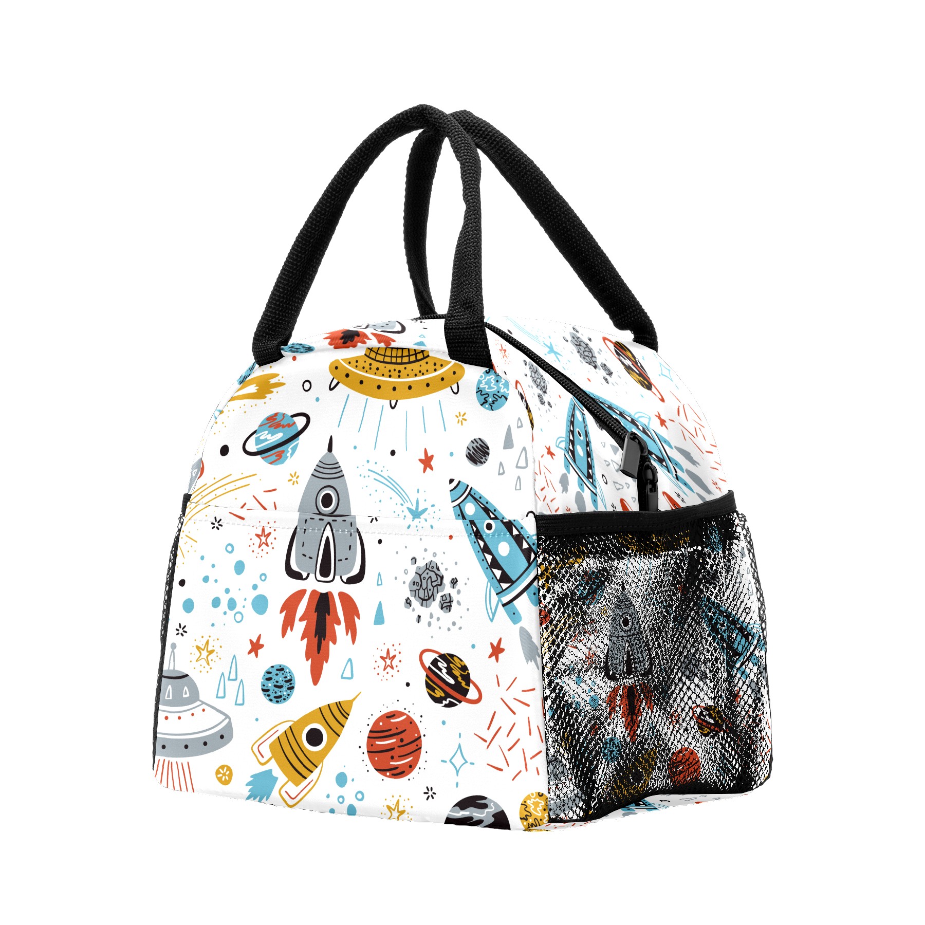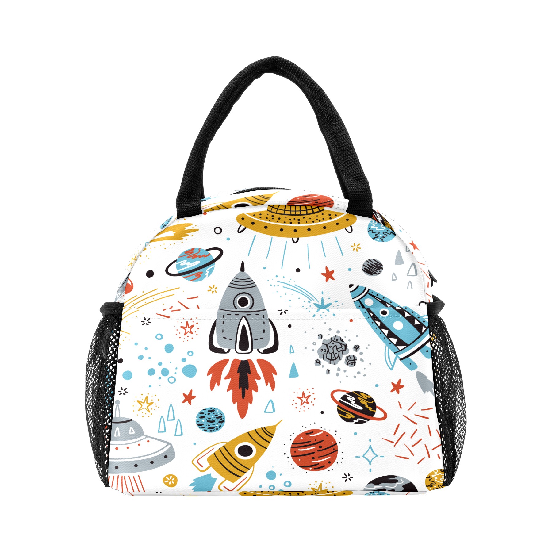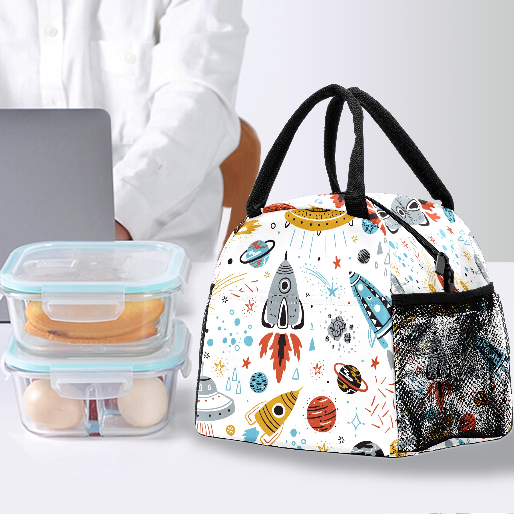 Lunch Bag for Women Men, Outer Spaceship Rockets Planet Galaxy Insulated Reusable Lunch Box Thermal Cooler Tote Bag for Work Picnic Hiking Travel Beach