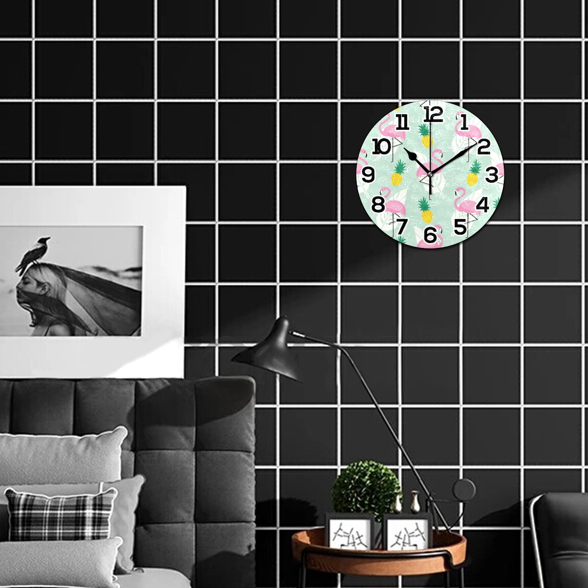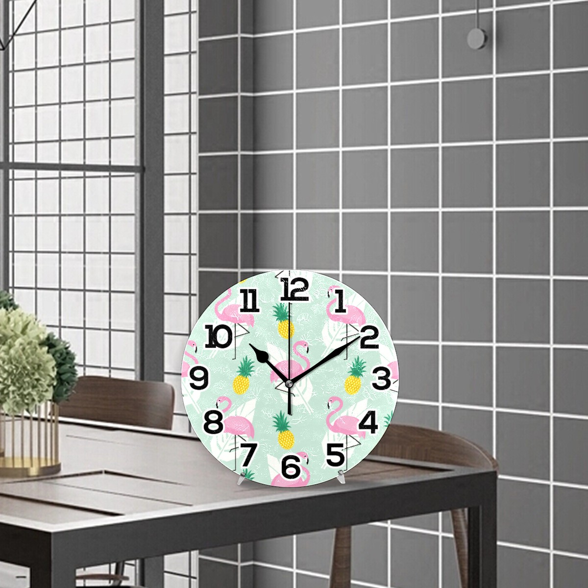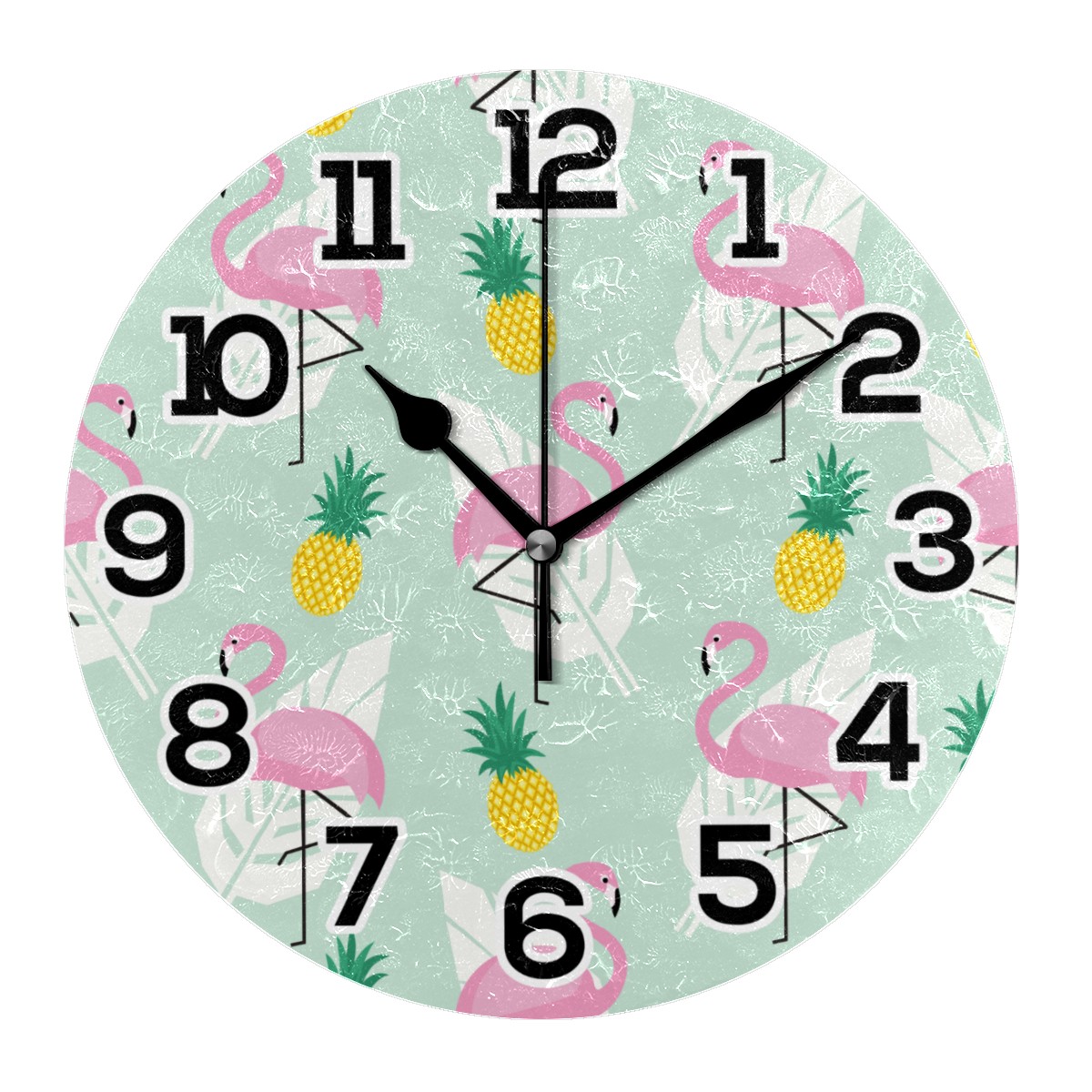 Summer Flamingo Pineapple Pattern Clock Wall Decor Acrylic Decorative Round Battery Operated Wall Clocks for Home Bedroom Living Room Decor Silent Non Ticking