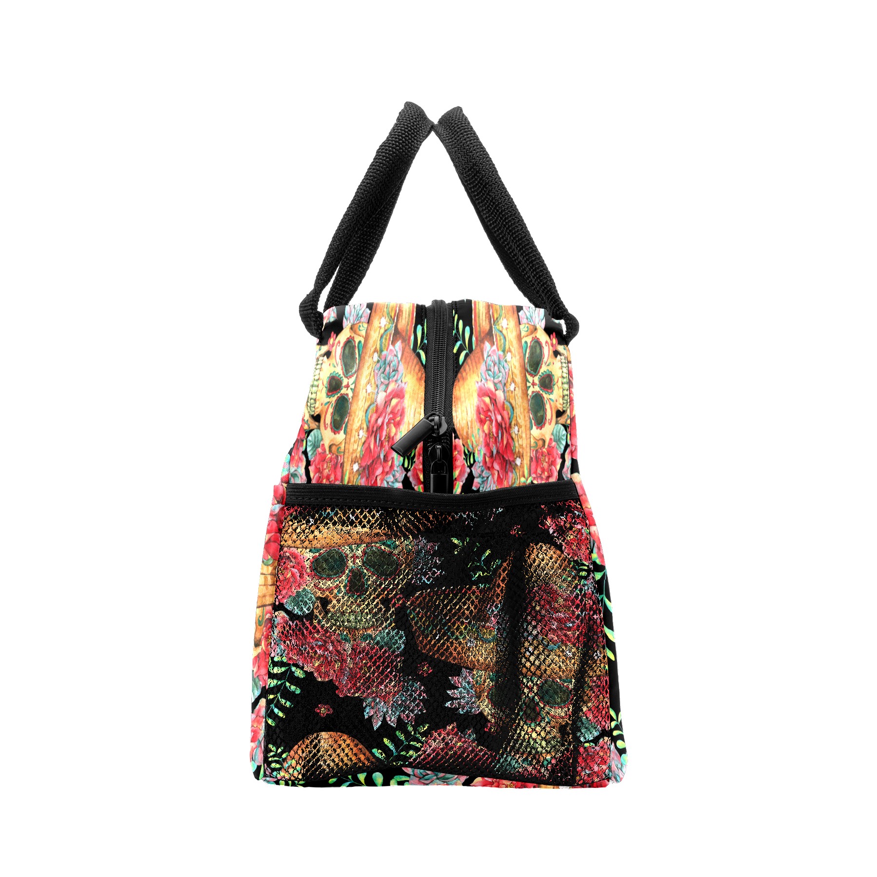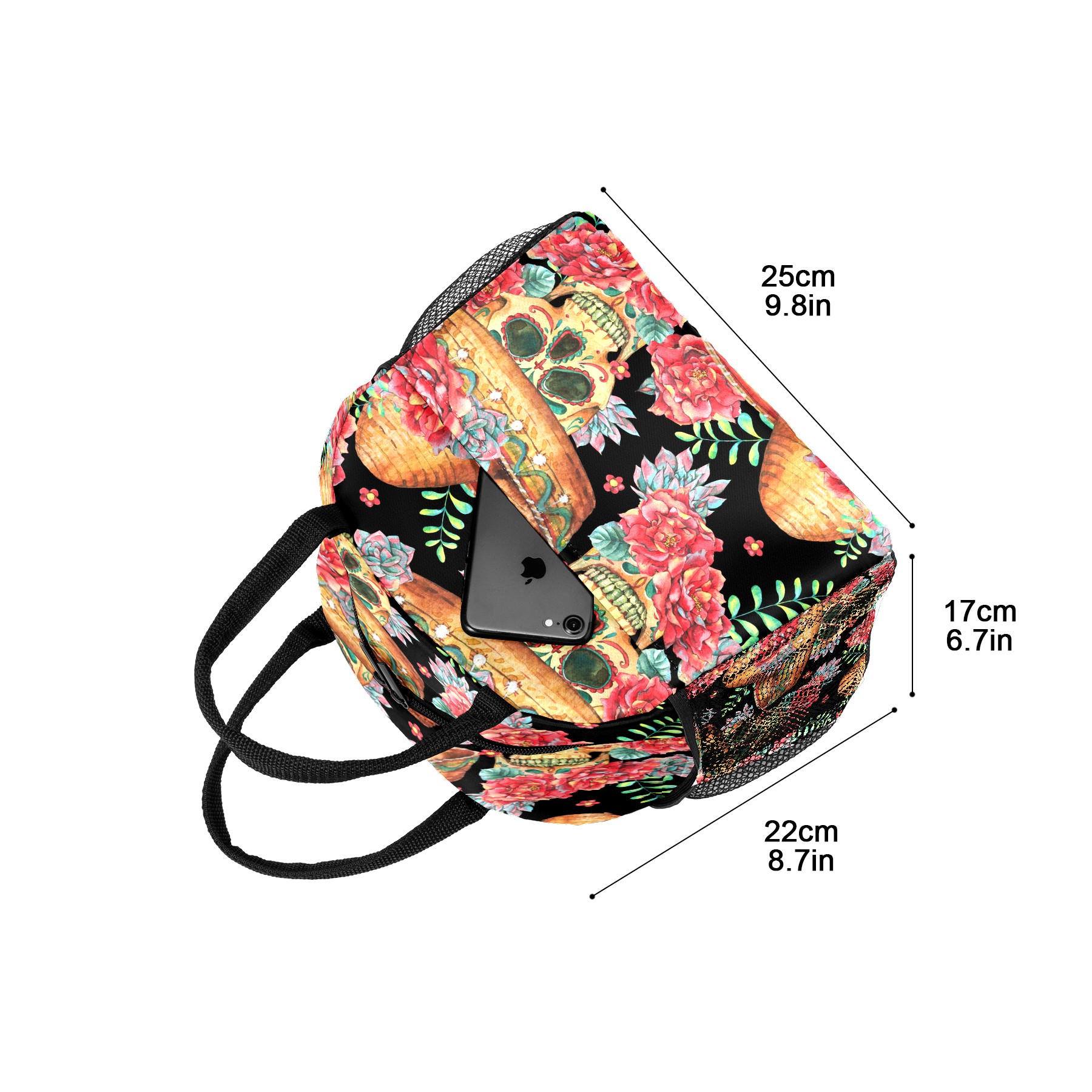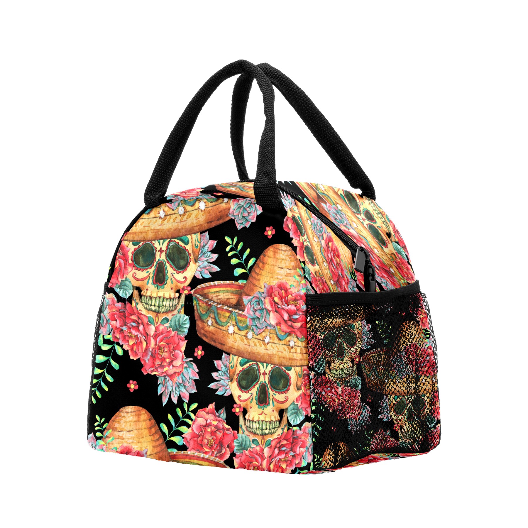 Lunch Bag for Women Men, Mexico Sugar Skull Rose Pattern Insulated Reusable Lunch Box Thermal Cooler Tote Bag for Work Picnic Hiking Travel Beach