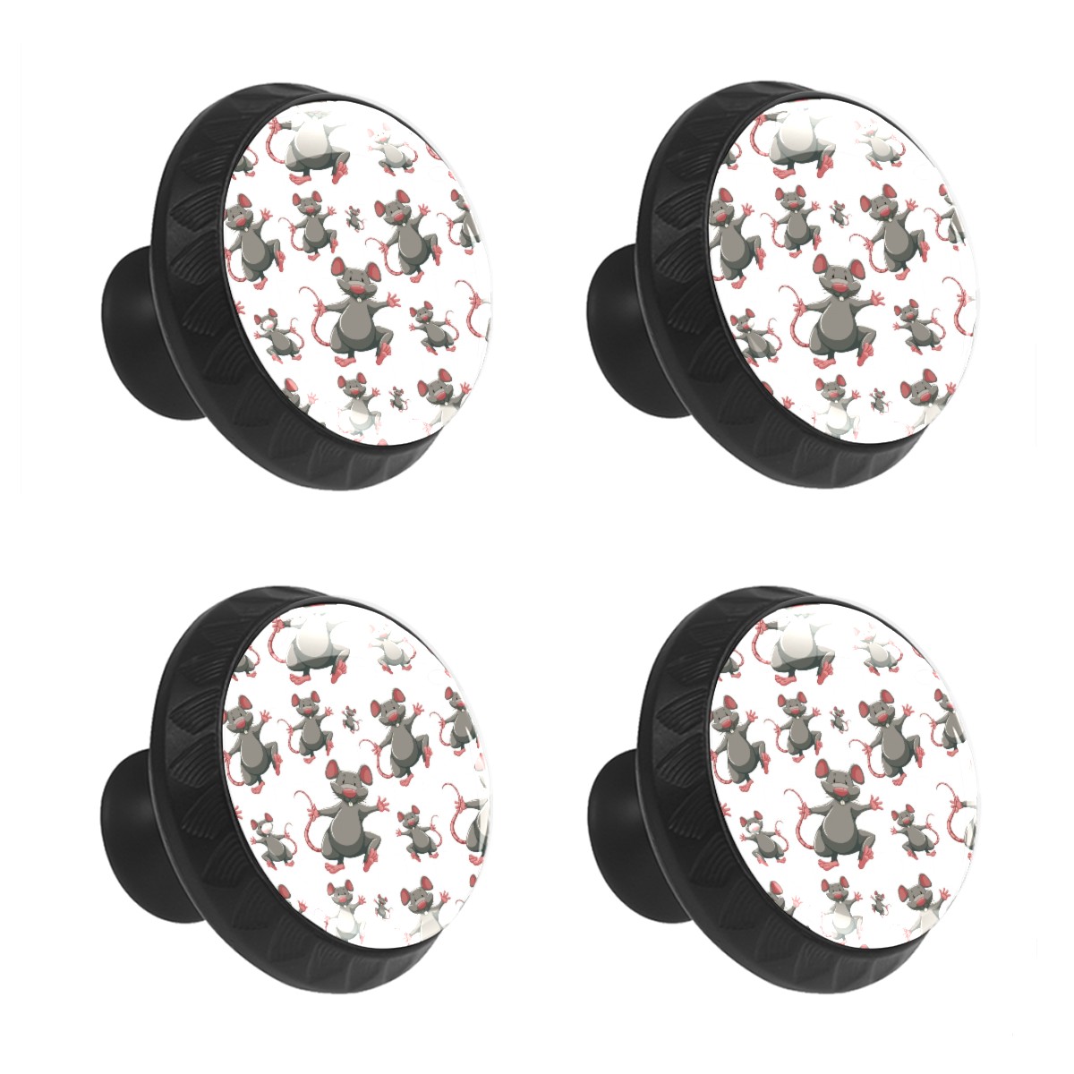Cabinet Drawer Knobs Set of 4 Anima Rats Mice Pattern Grey Cartoon Cabinet Furniture Knobs Drawer Pulls Handle Crystal Glass Round Cupboard Knobs with Screws for Cabinets Kitchen Dresser Wardrobe DIY