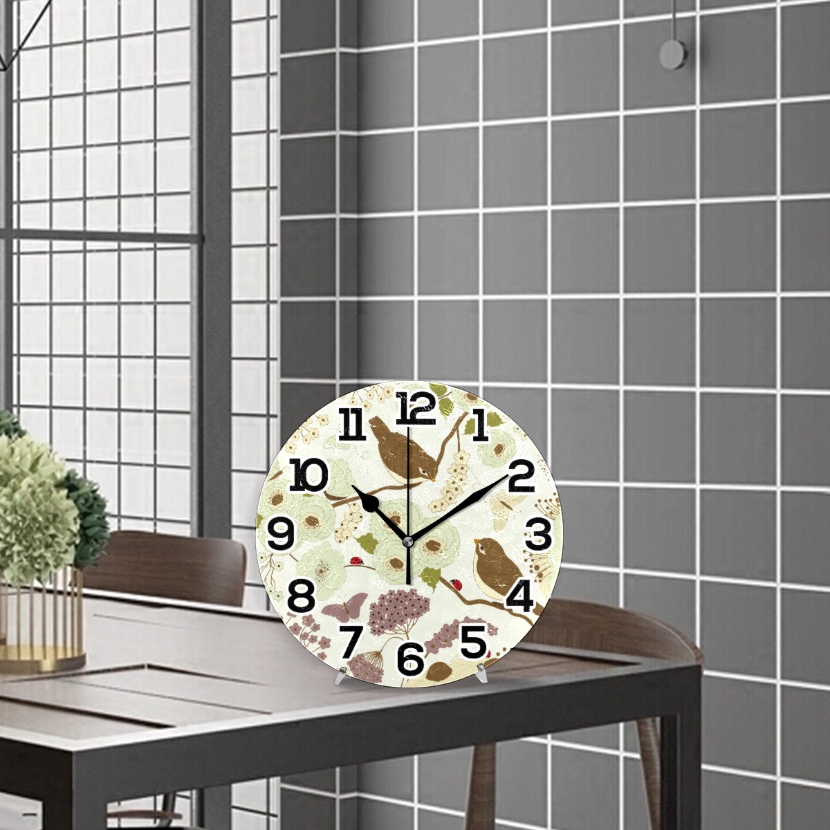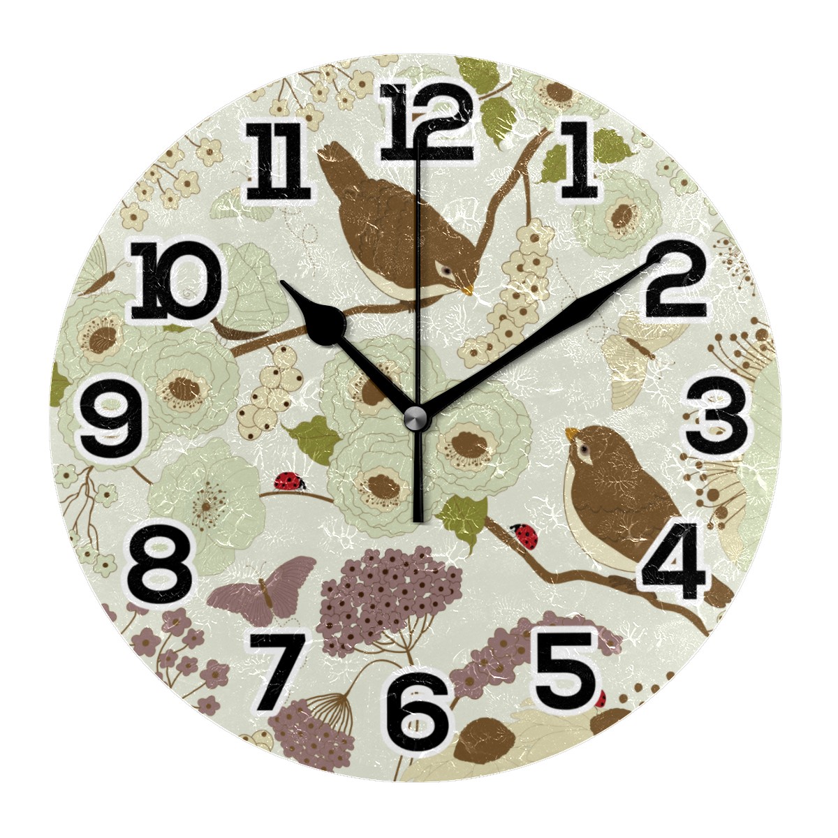 Spring Birds With Floral Butterfly Ladybird Clock Wall Decor Acrylic Decorative Round Battery Operated Wall Clocks for Home Bedroom Living Room Decor Silent Non Ticking