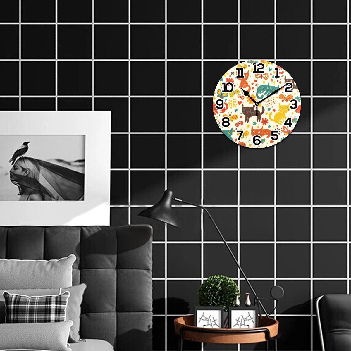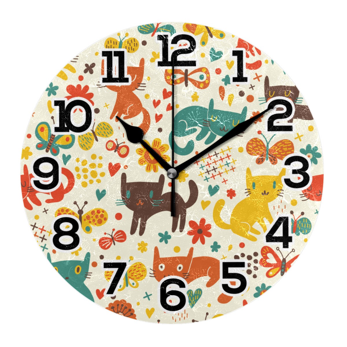Retro Cat Butterfly Flower Pattern Clock Wall Decor Acrylic Decorative Round Battery Operated Wall Clocks for Home Bedroom Living Room Decor Silent Non Ticking