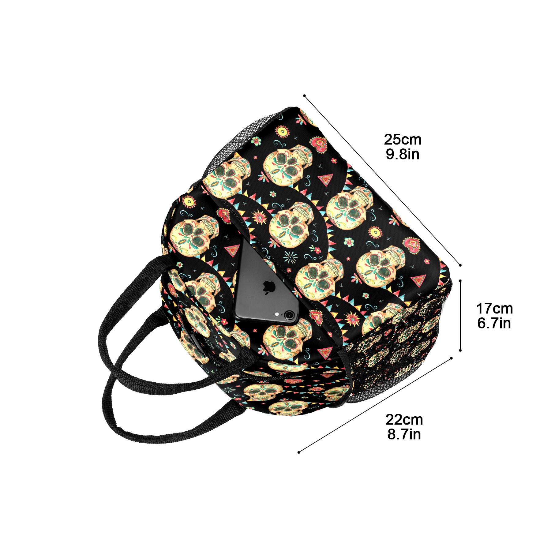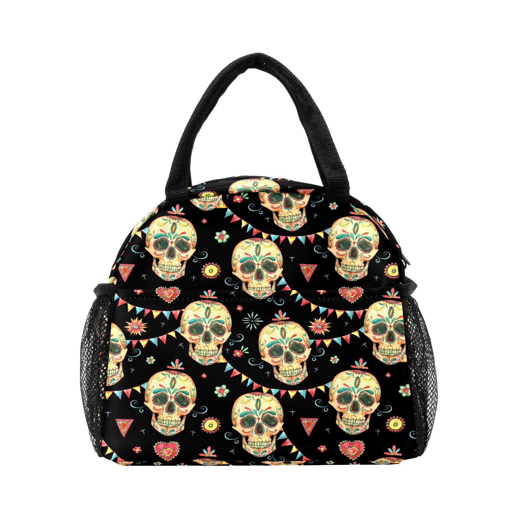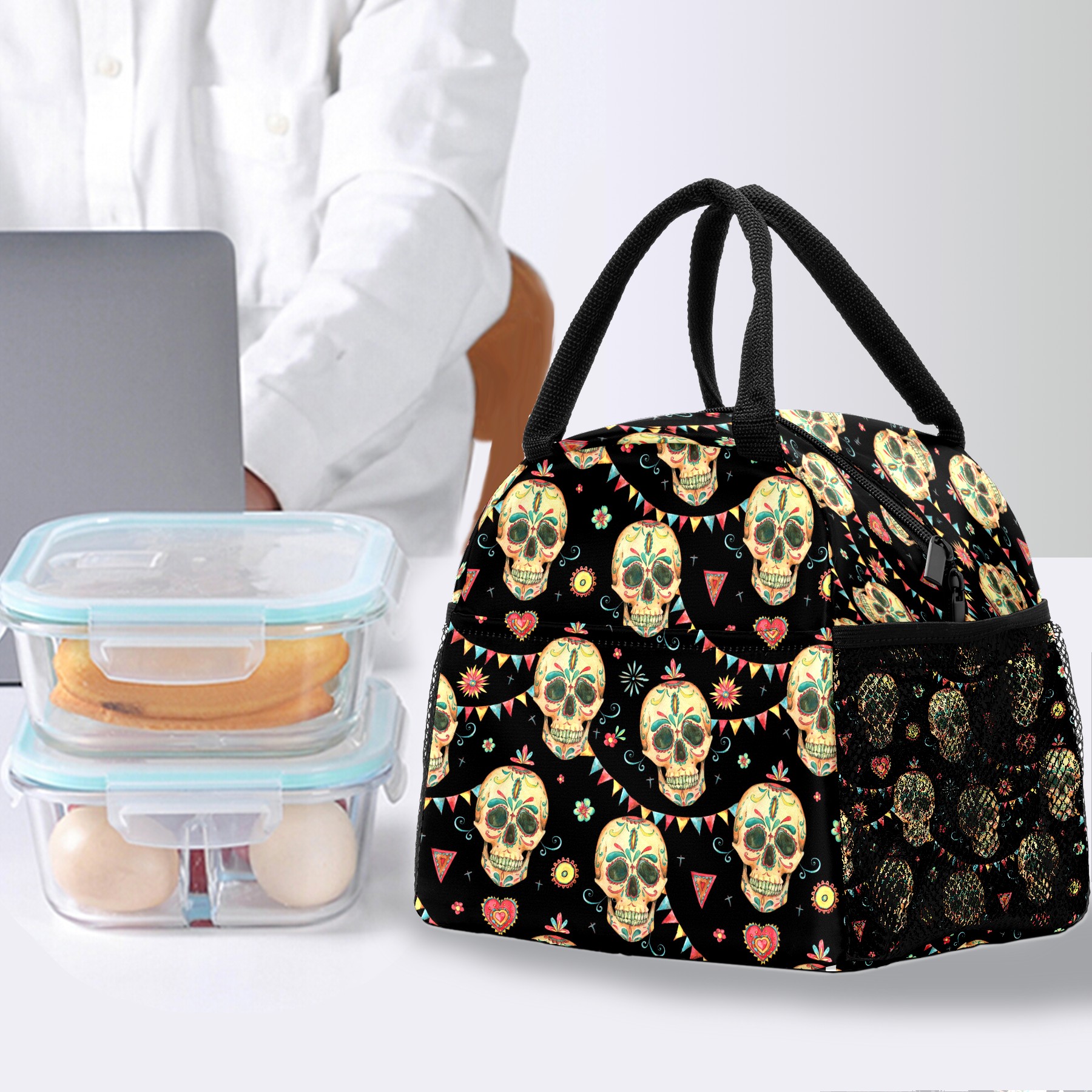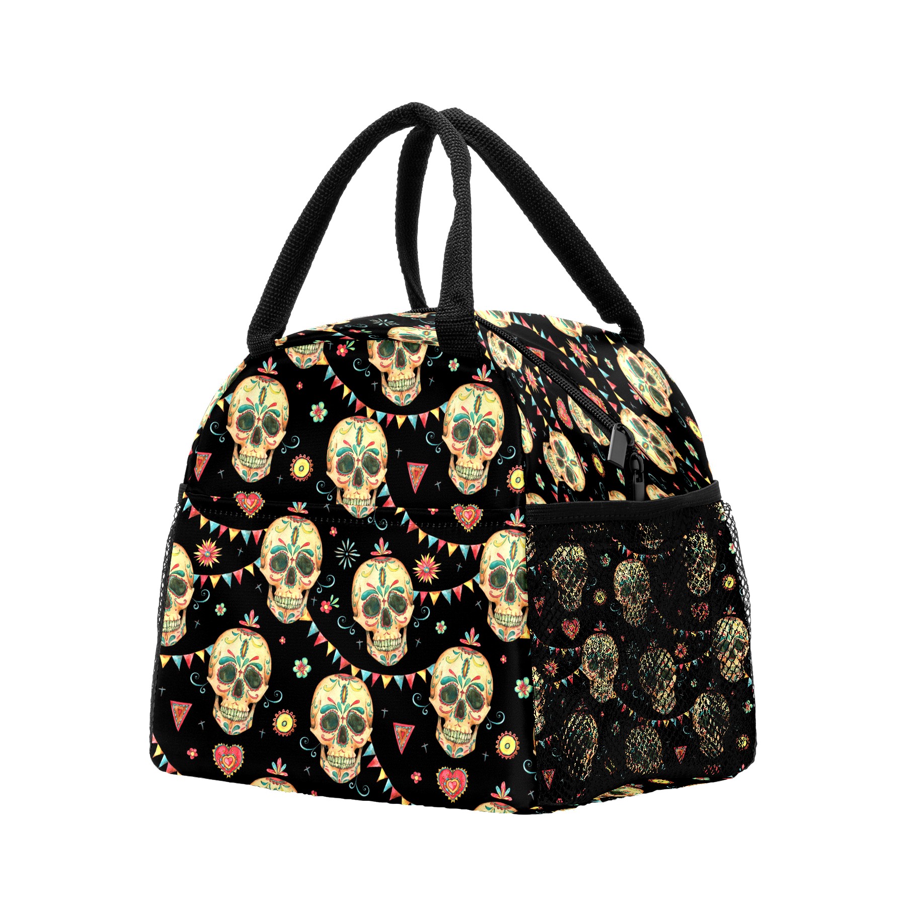 Lunch Bag for Women Men, Mexico Sugar Skull Pattern Insulated Reusable Lunch Box Thermal Cooler Tote Bag for Work Picnic Hiking Travel Beach