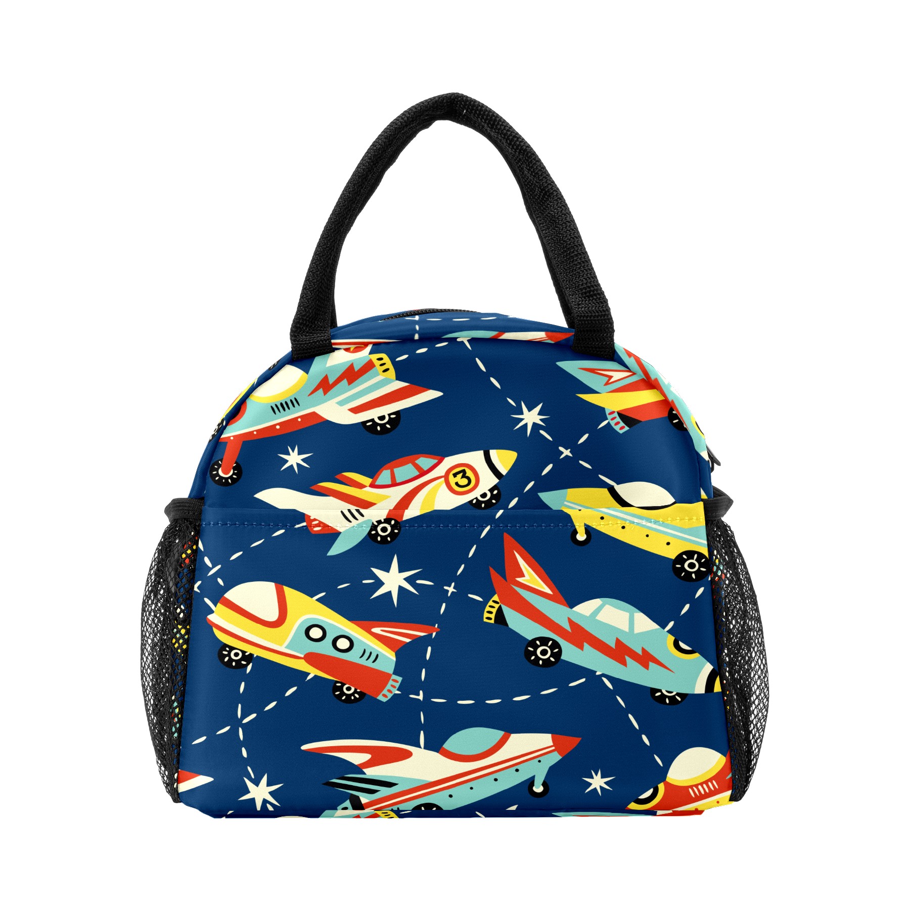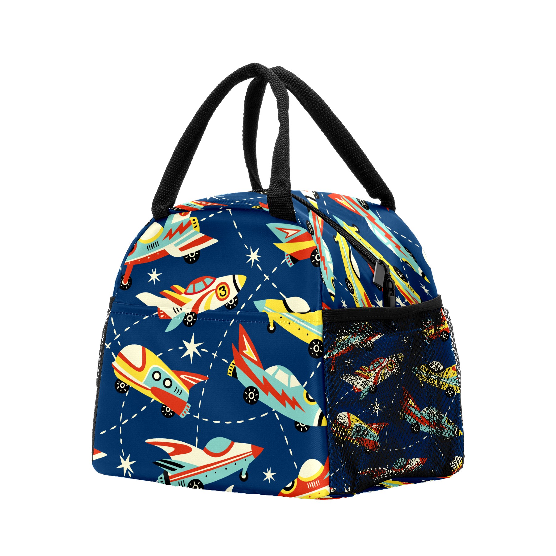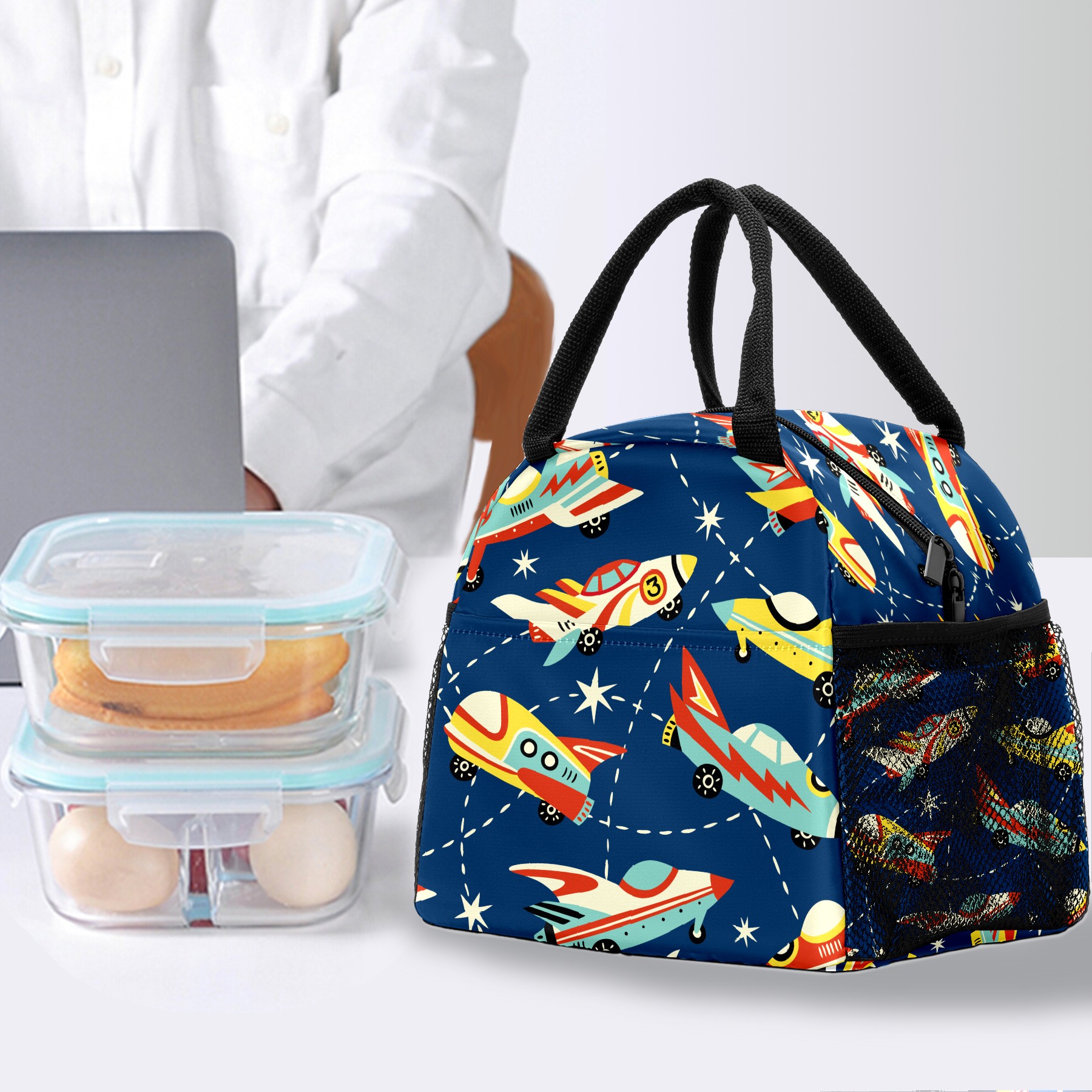 Lunch Bag for Women Men, Outer Space Airplane Stars Pattern Insulated Reusable Lunch Box Thermal Cooler Tote Bag for Work Picnic Hiking Travel Beach
