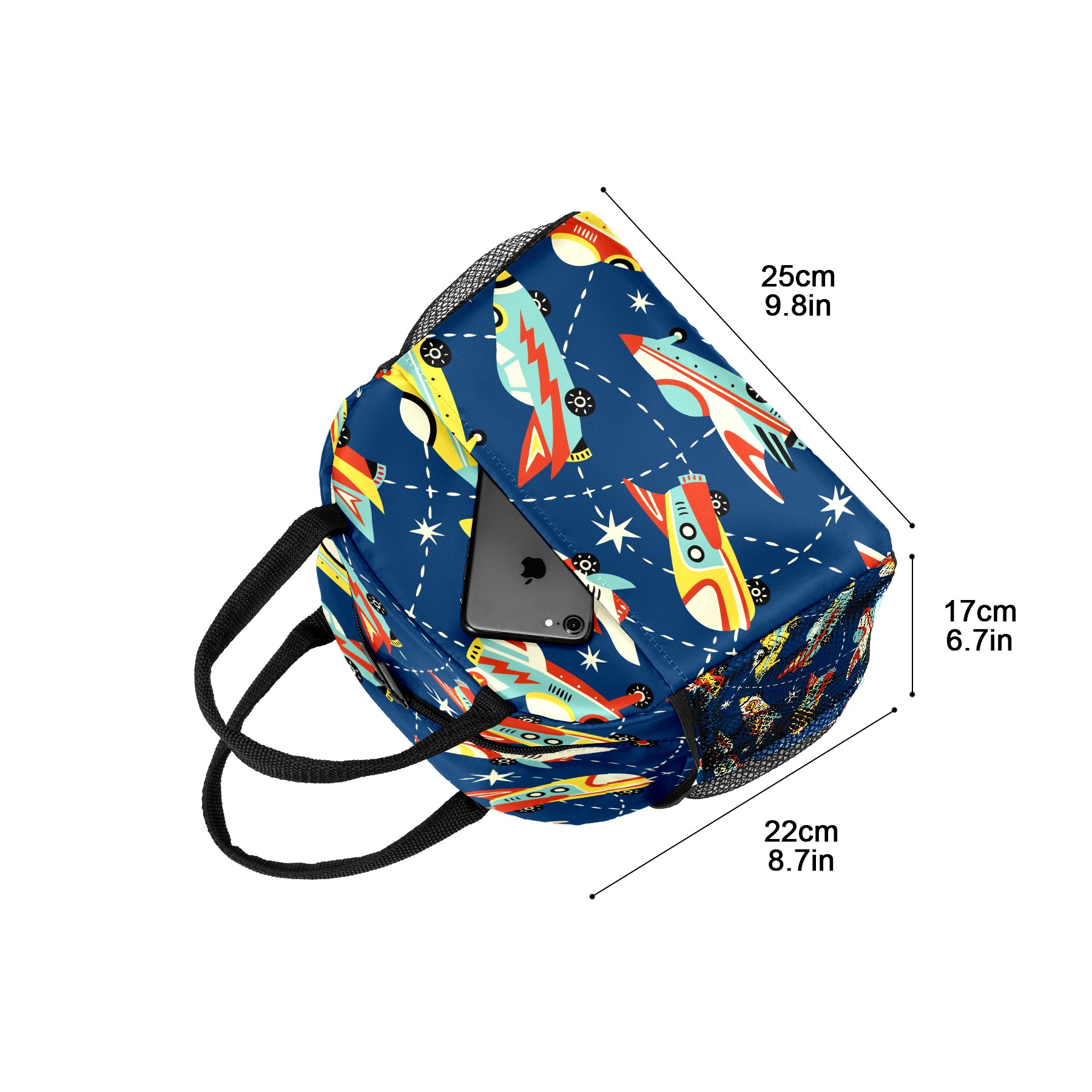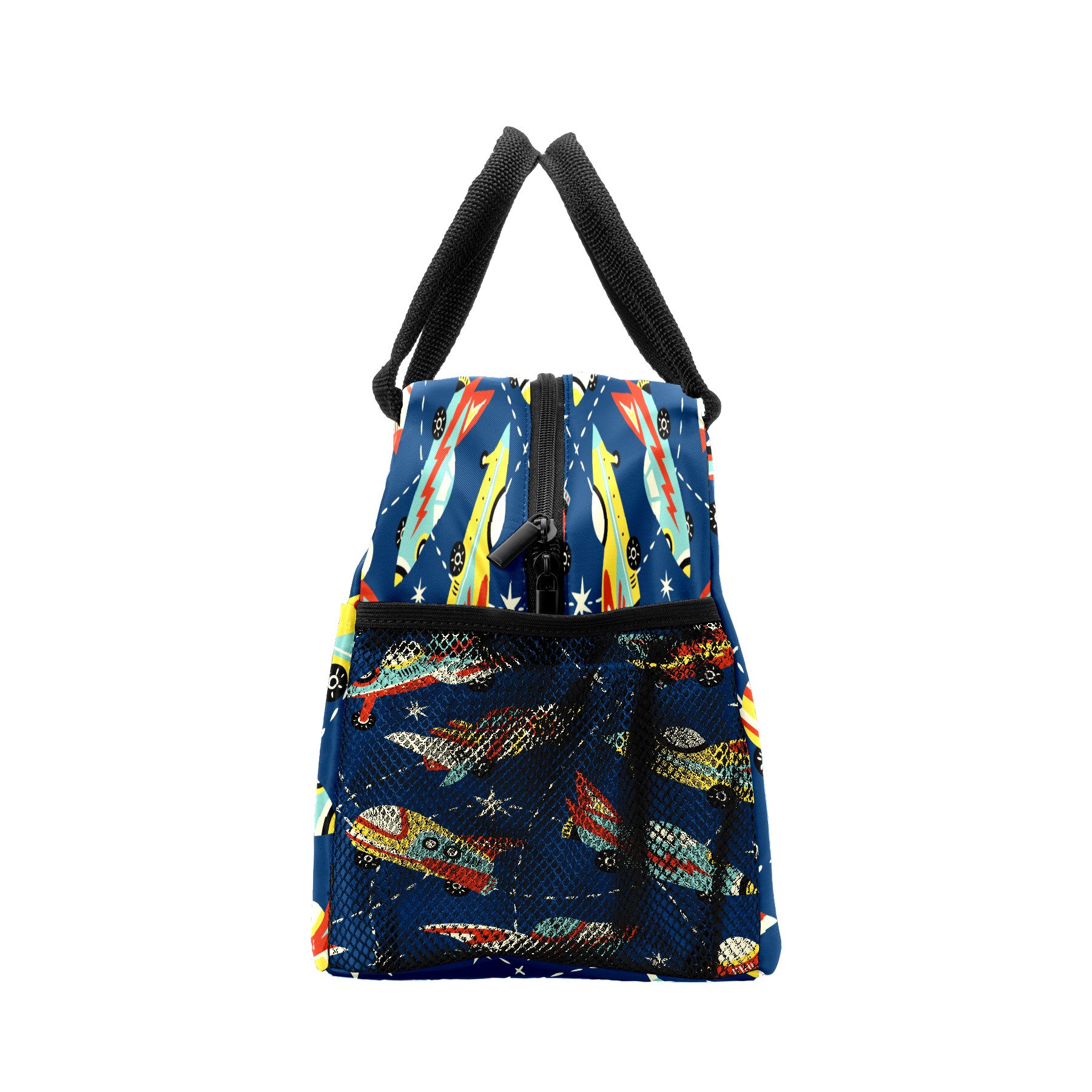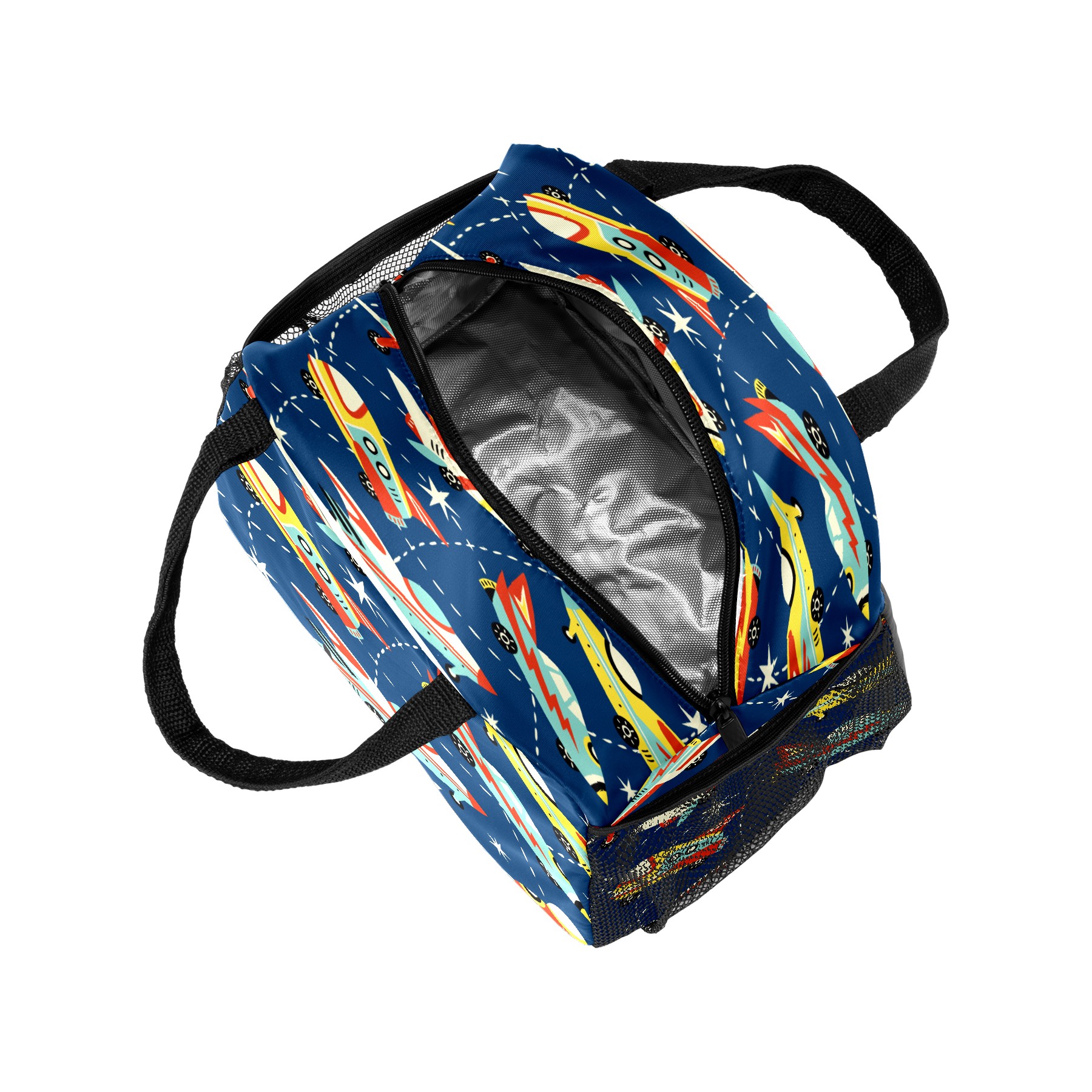 Lunch Bag for Women Men, Outer Space Airplane Stars Pattern Insulated Reusable Lunch Box Thermal Cooler Tote Bag for Work Picnic Hiking Travel Beach