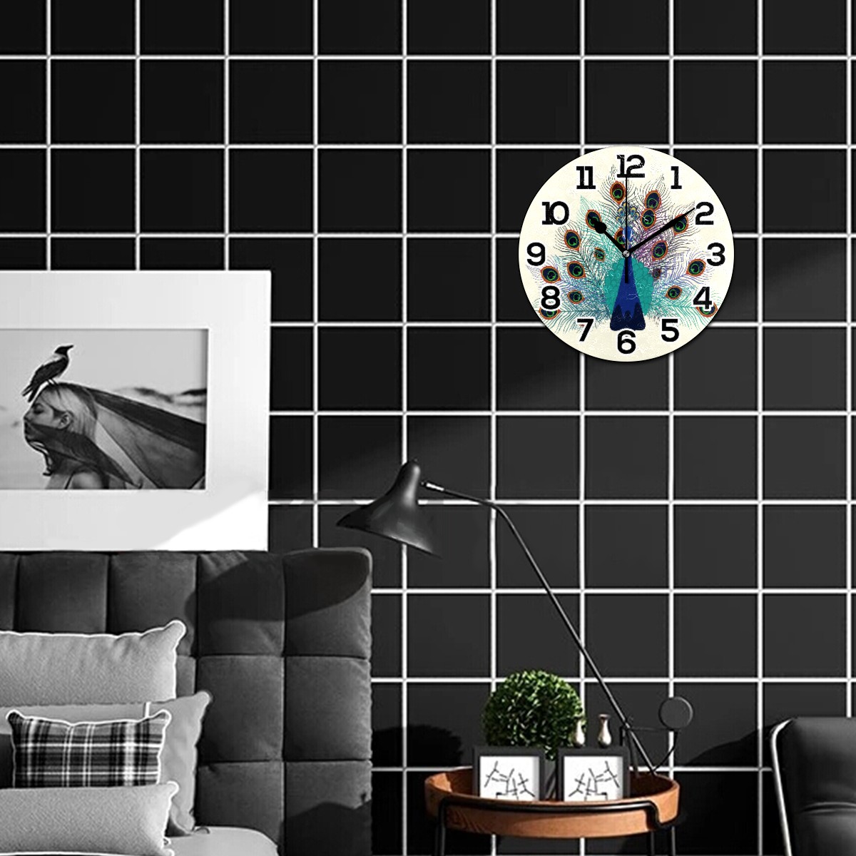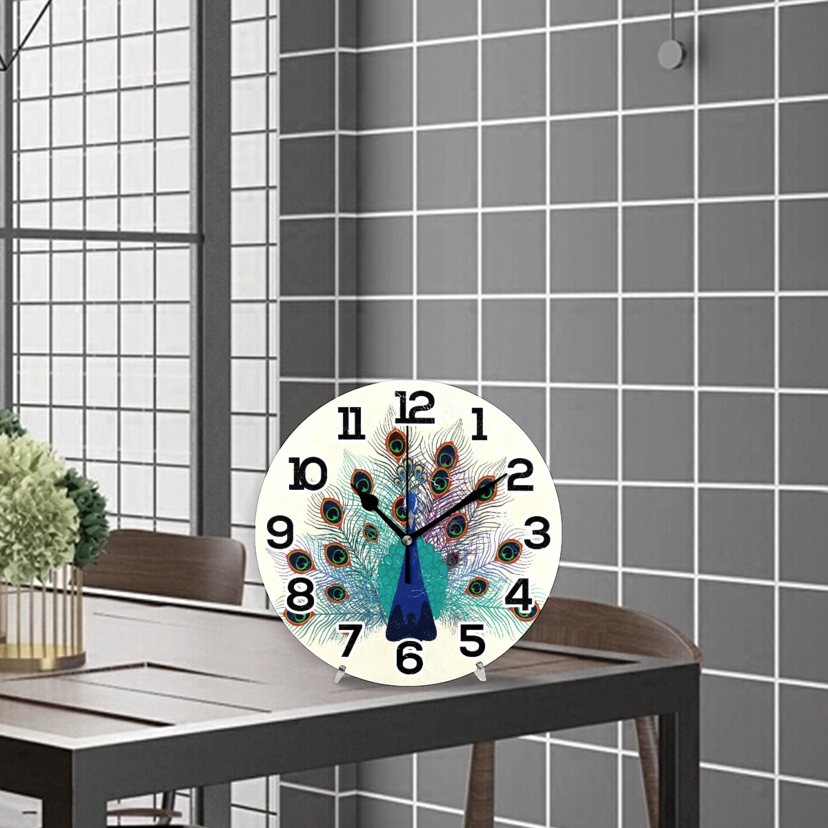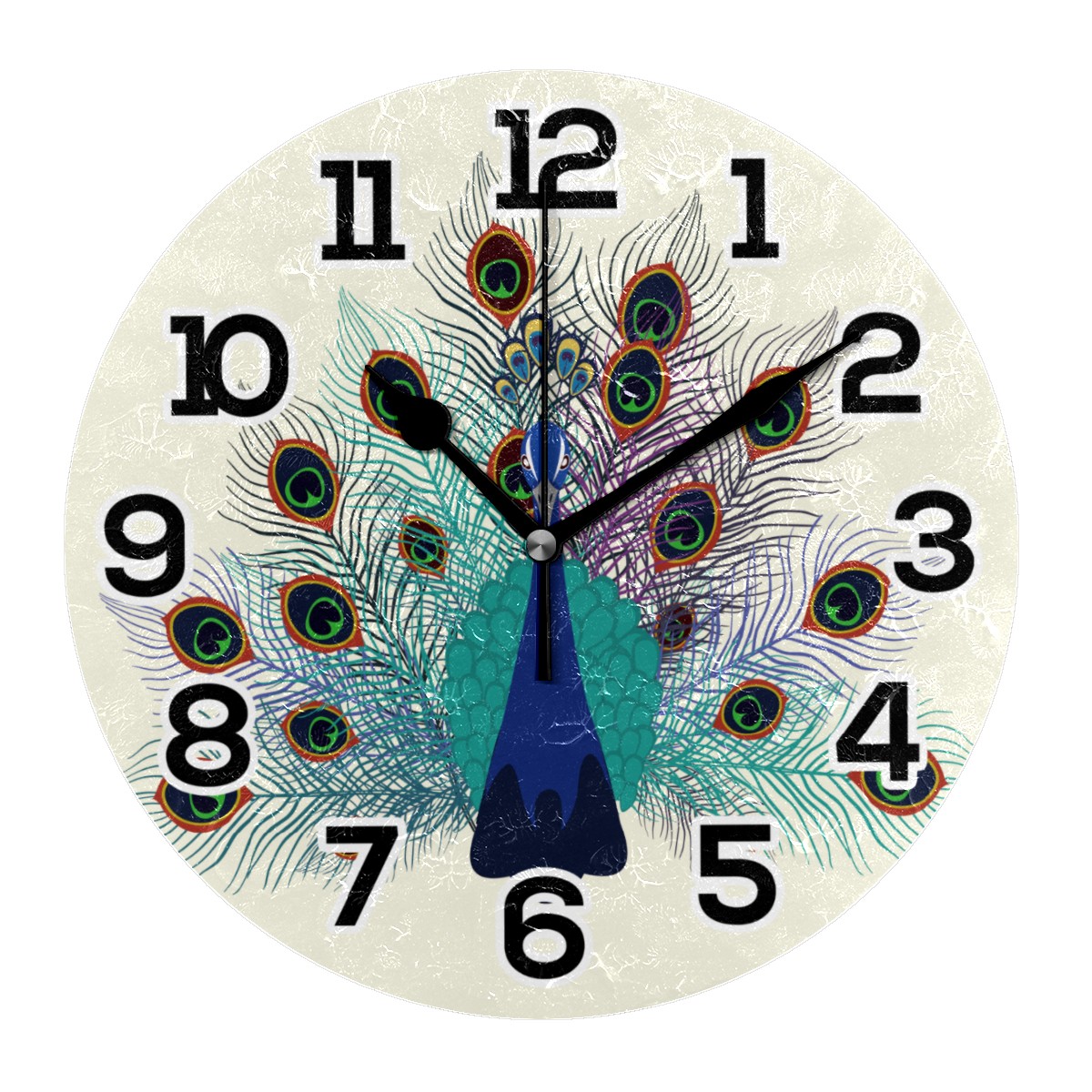 Retro Peacock Floral Clock Wall Decor Acrylic Decorative Round Battery Operated Wall Clocks for Home Bedroom Living Room Decor Silent Non Ticking