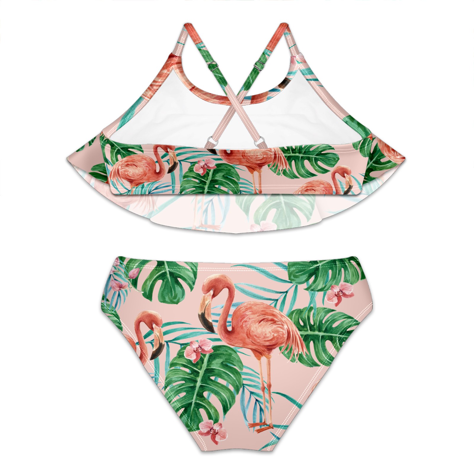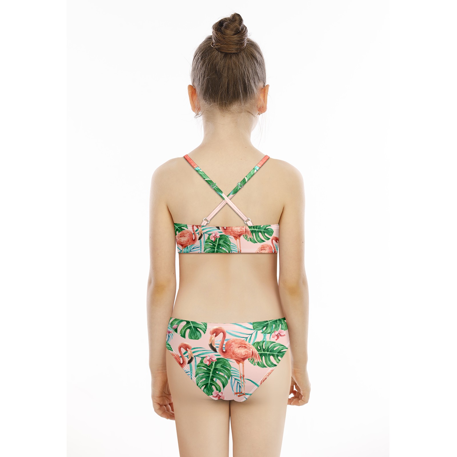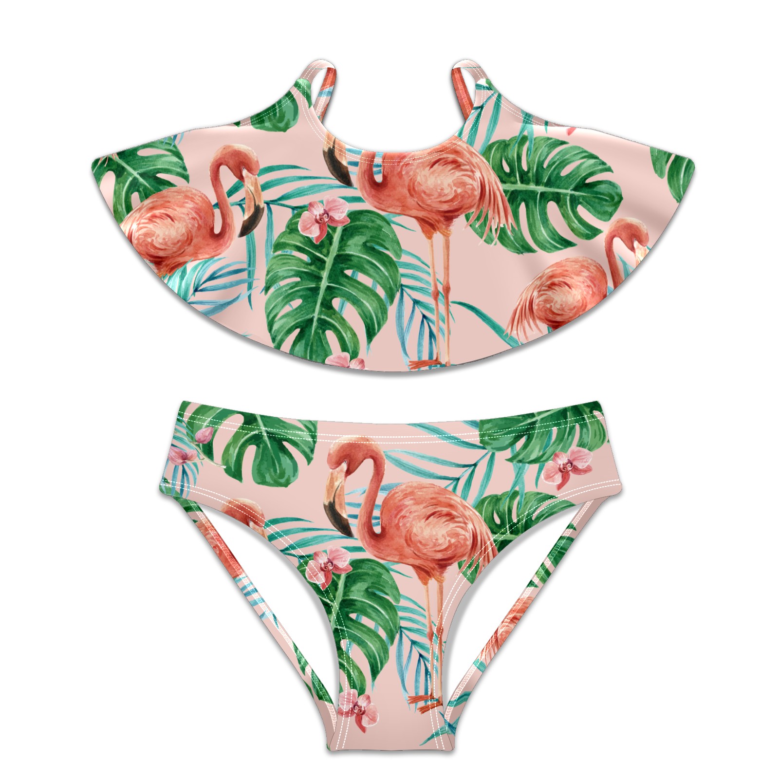 Swimsuits for Girls Two Pieces Bathing Suit Quick Dry Swimwear Tropical Flamingos Leaves Pattern S