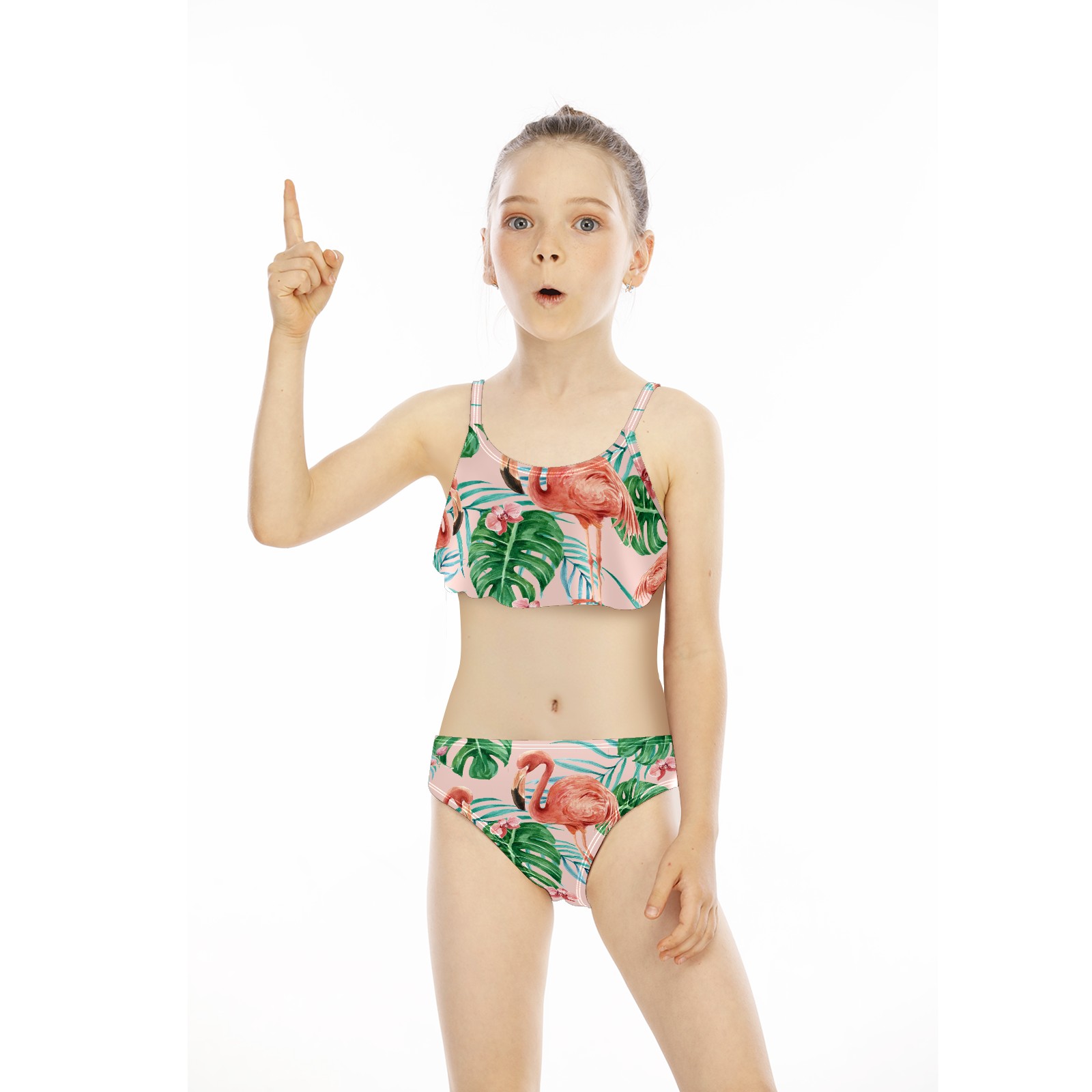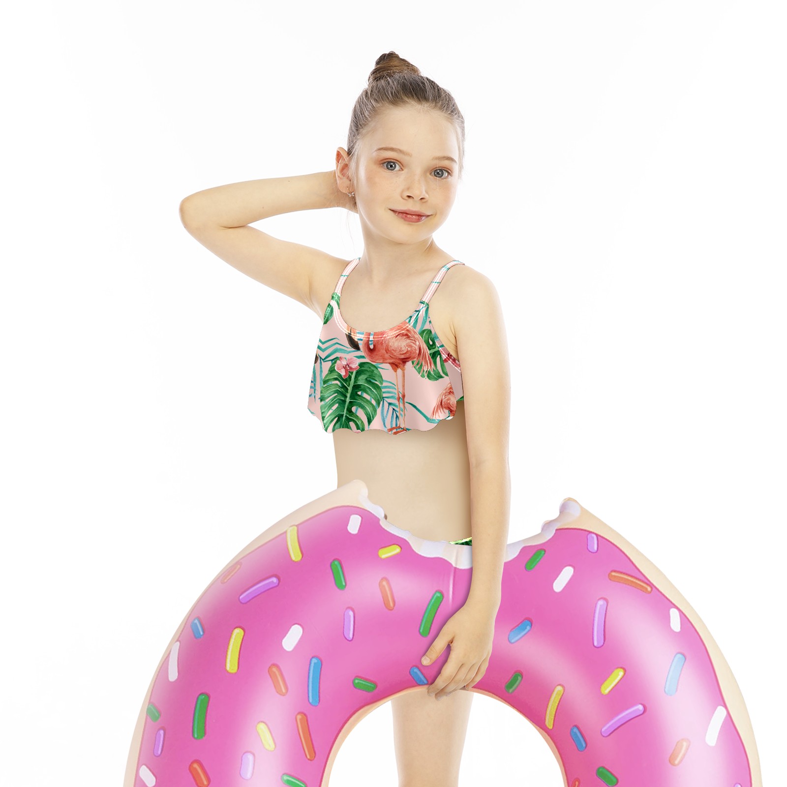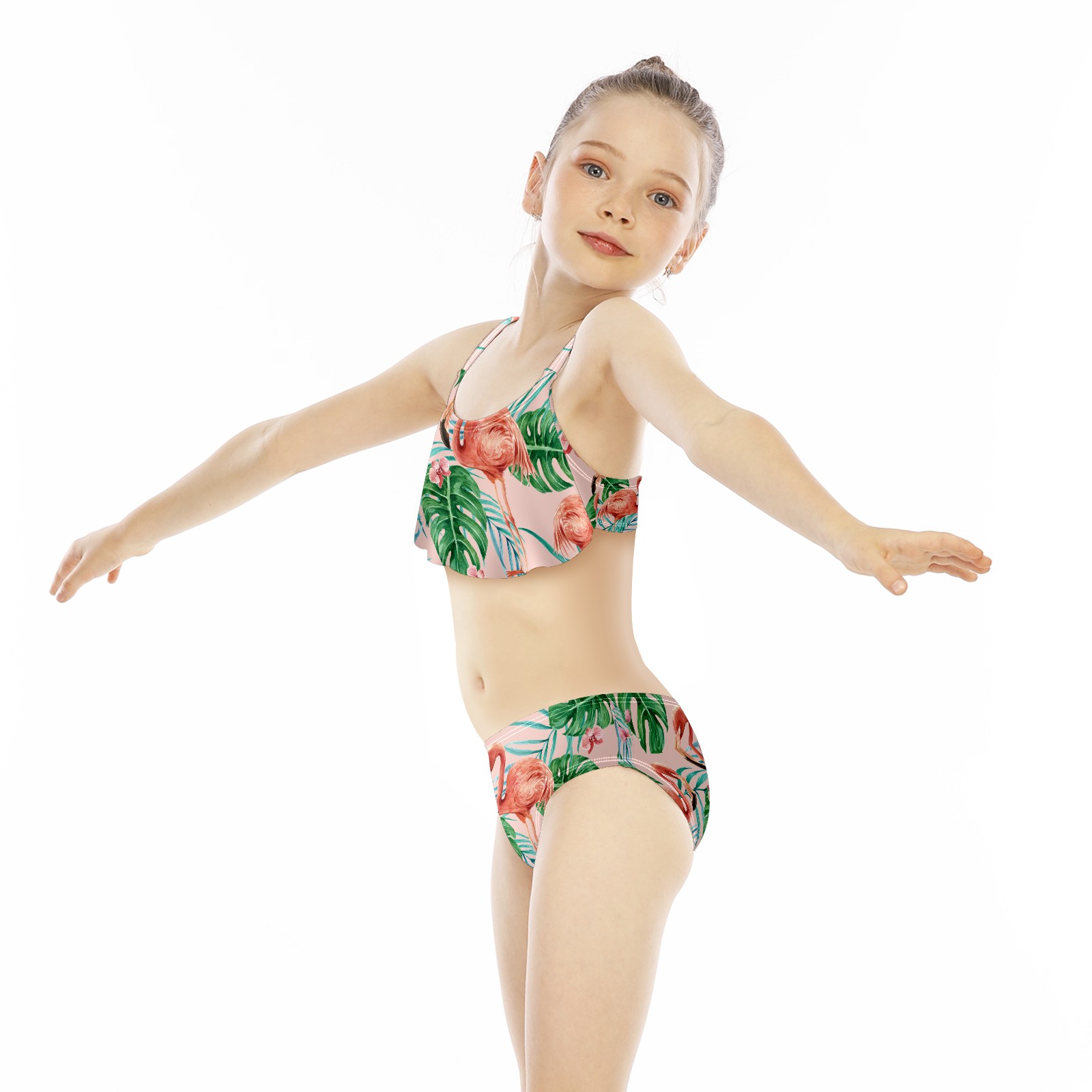 Swimsuits for Girls Two Pieces Bathing Suit Quick Dry Swimwear Tropical Flamingos Leaves Pattern S