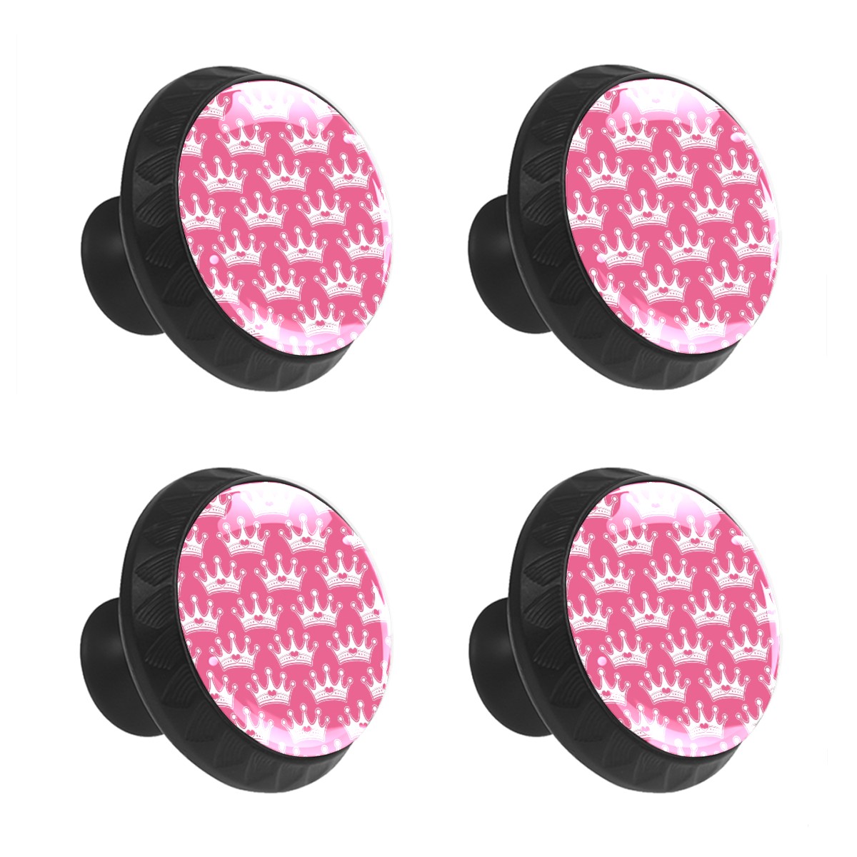 Cabinet Drawer Knobs Set of 4 Pink Girly Princess Royalty Crown Cabinet Furniture Knobs Drawer Pulls Handle Crystal Glass Round Cupboard Knobs with Screws for Cabinets Kitchen Dresser Wardrobe DIY