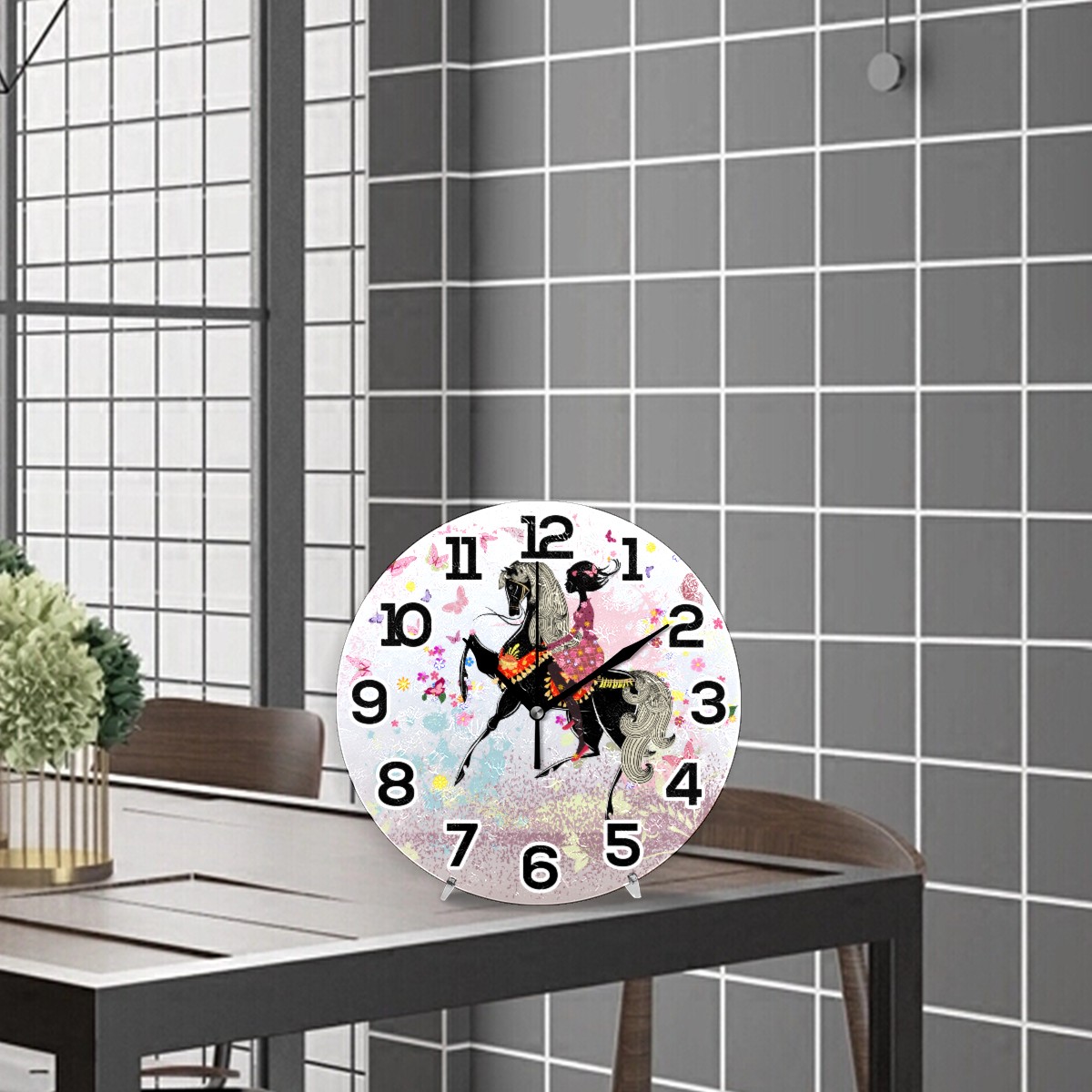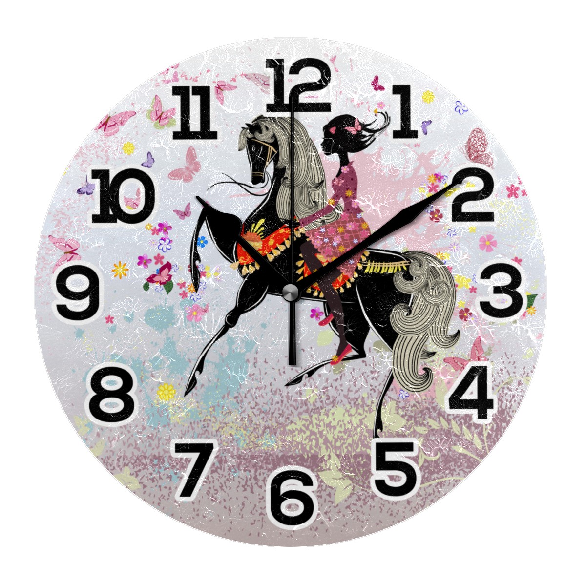 Pink Fairy Butterfly Girl Floral Horse Clock Wall Decor Acrylic Decorative Round Battery Operated Wall Clocks for Home Bedroom Living Room Decor Silent Non Ticking