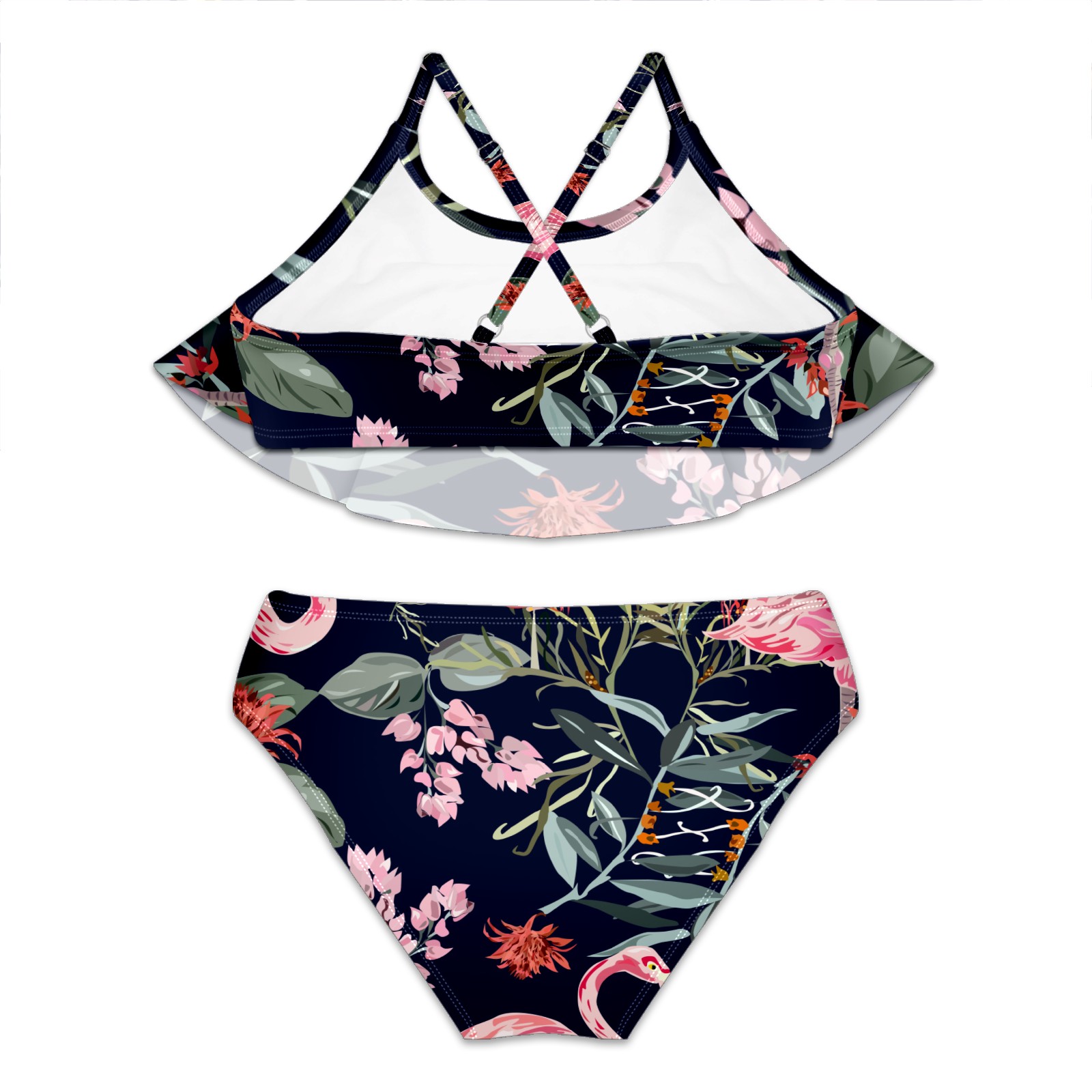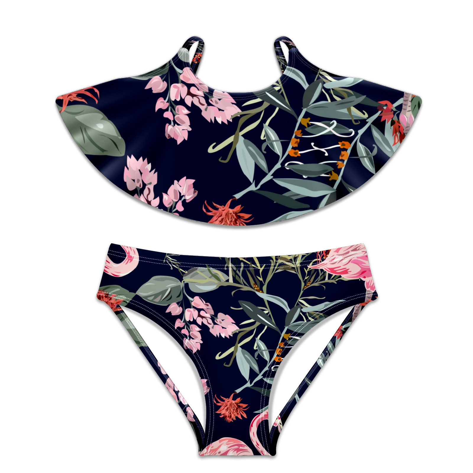 Swimsuits for Girls Two Pieces Bathing Suit Quick Dry Swimwear Tropical Flamingos Floral S