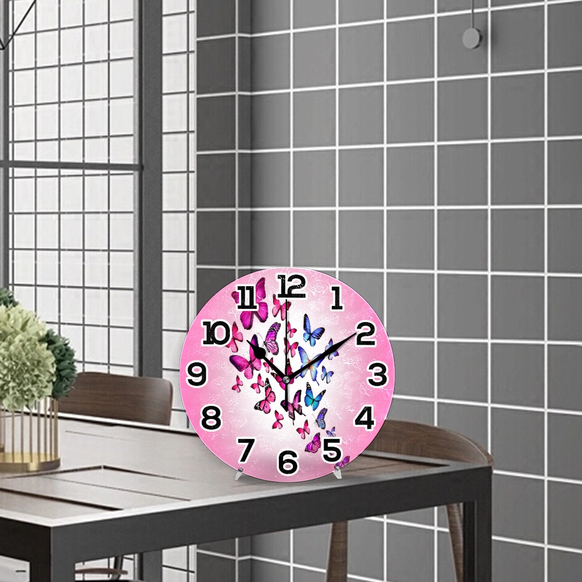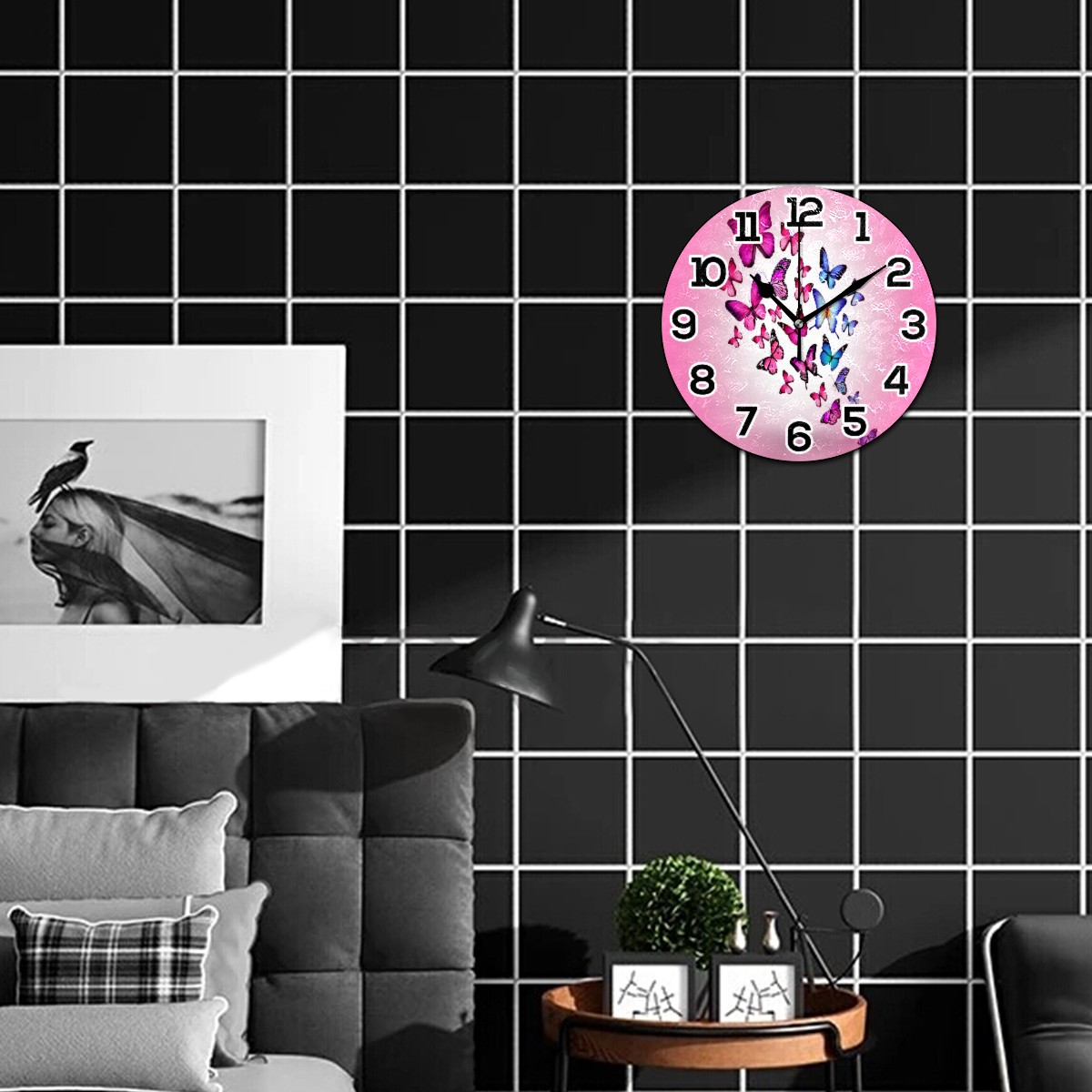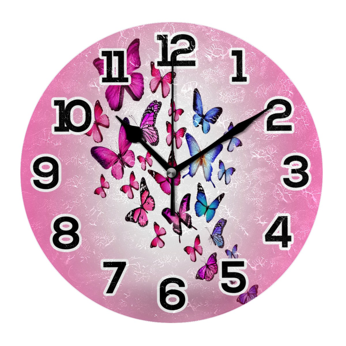 Pink Butterfly Clock Wall Decor Acrylic Decorative Round Battery Operated Wall Clocks for Home Bedroom Living Room Decor Silent Non Ticking