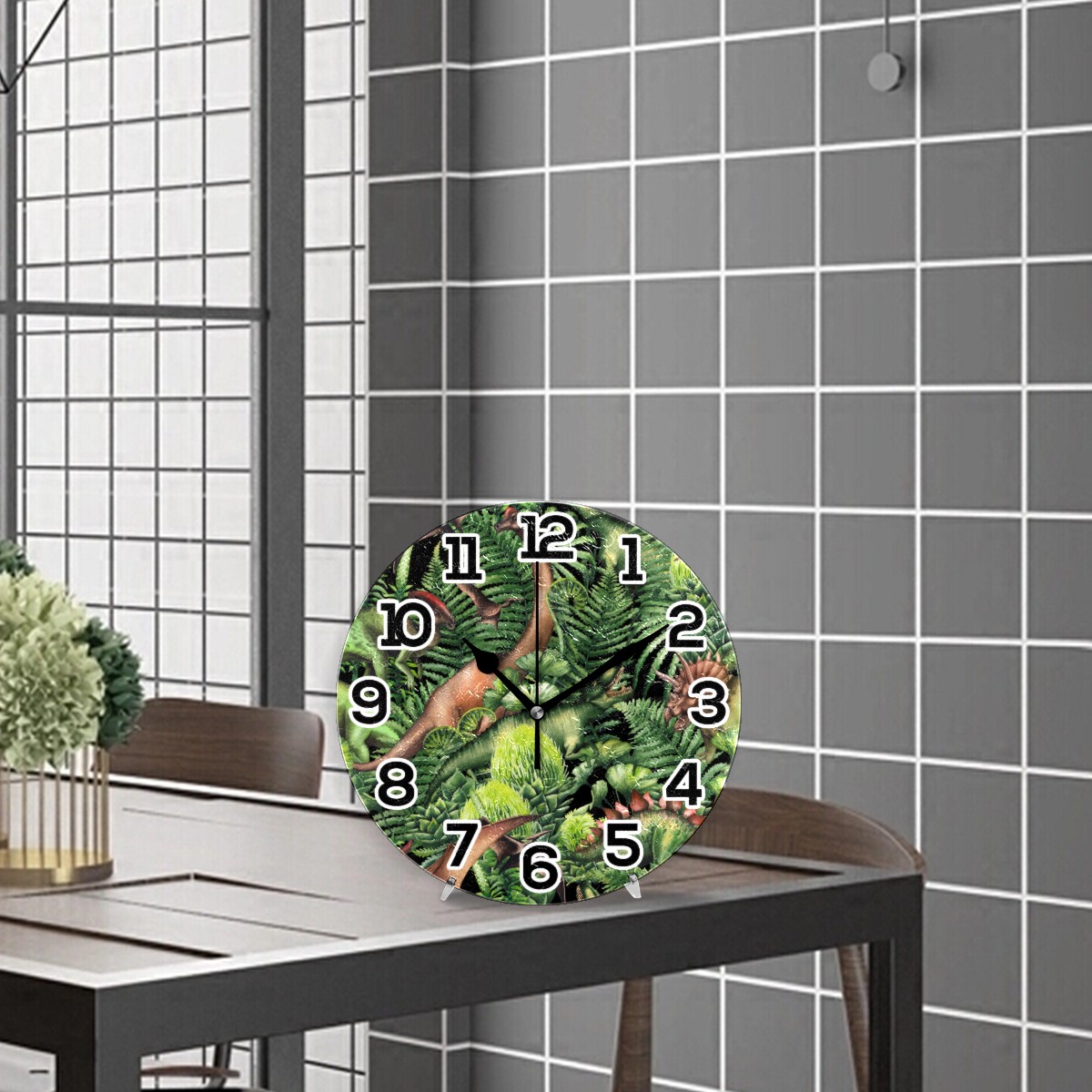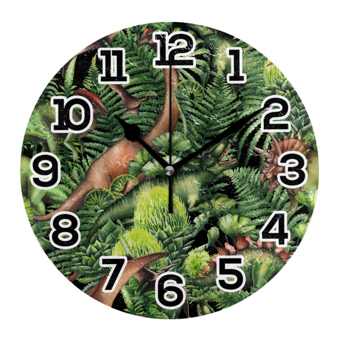 Green Jungle Dinosaur World Clock Wall Decor Acrylic Decorative Round Battery Operated Wall Clocks for Home Bedroom Living Room Decor Silent Non Ticking