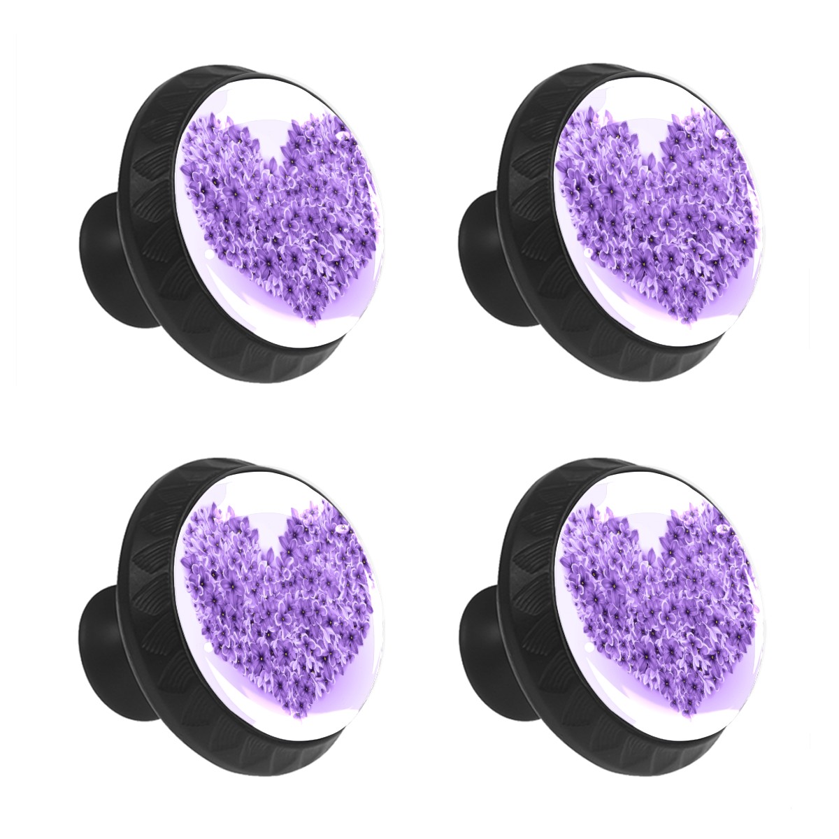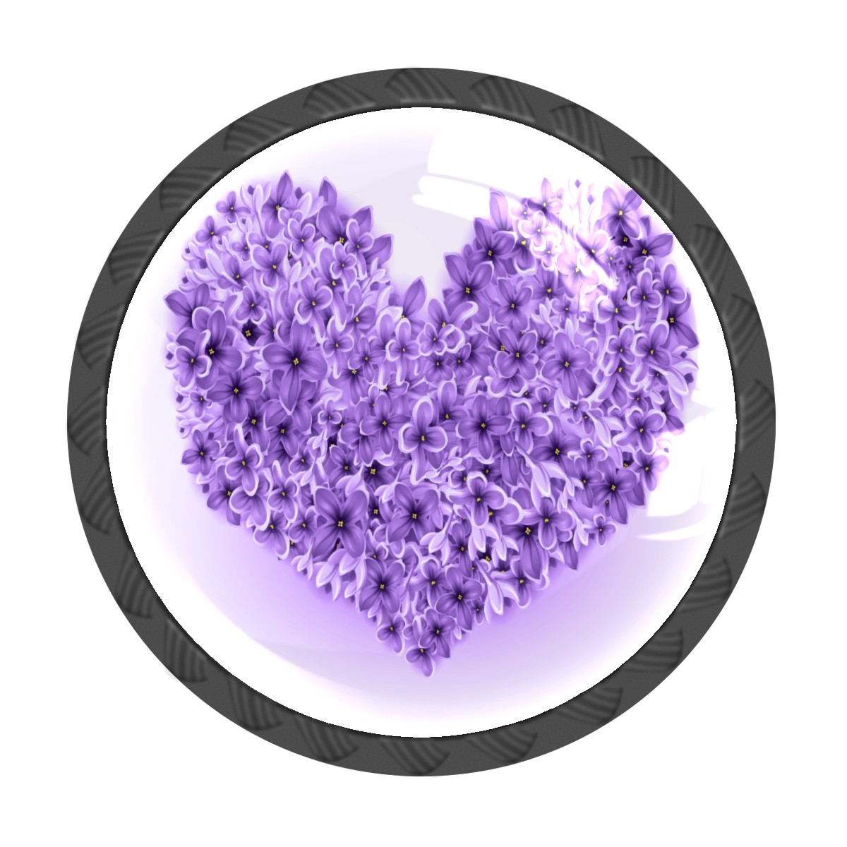 Cabinet Drawer Knobs Set of 4 Purple Flower Love Heart Romantic Cabinet Furniture Knobs Drawer Pulls Handle Crystal Glass Round Cupboard Knobs with Screws for Cabinets Kitchen Dresser Wardrobe DIY