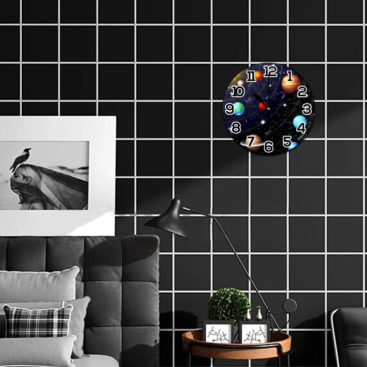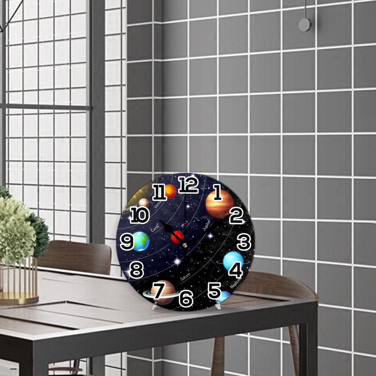 Outer Space Solar System Mars Earth Clock Wall Decor Acrylic Decorative Round Battery Operated Wall Clocks for Home Bedroom Living Room Decor Silent Non Ticking