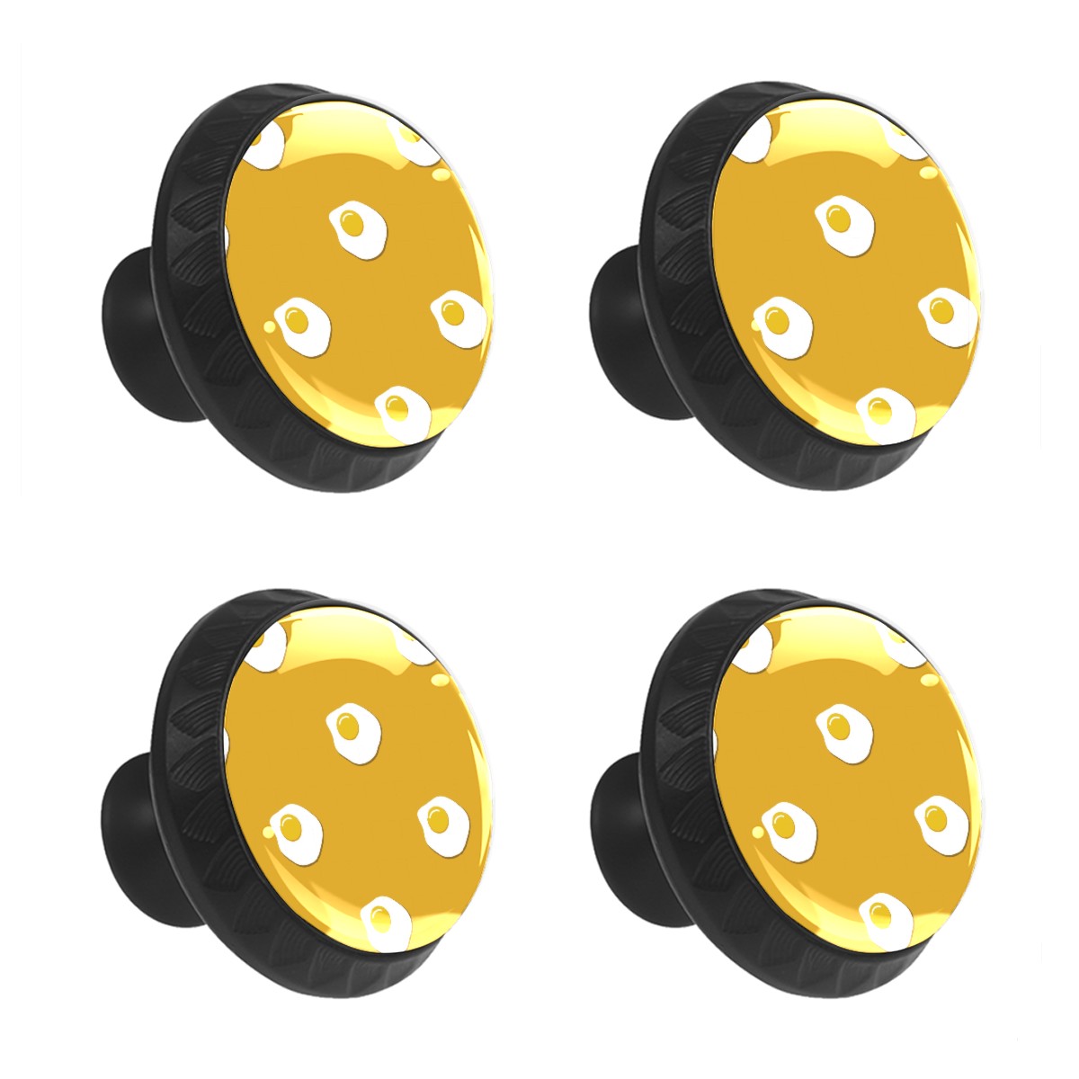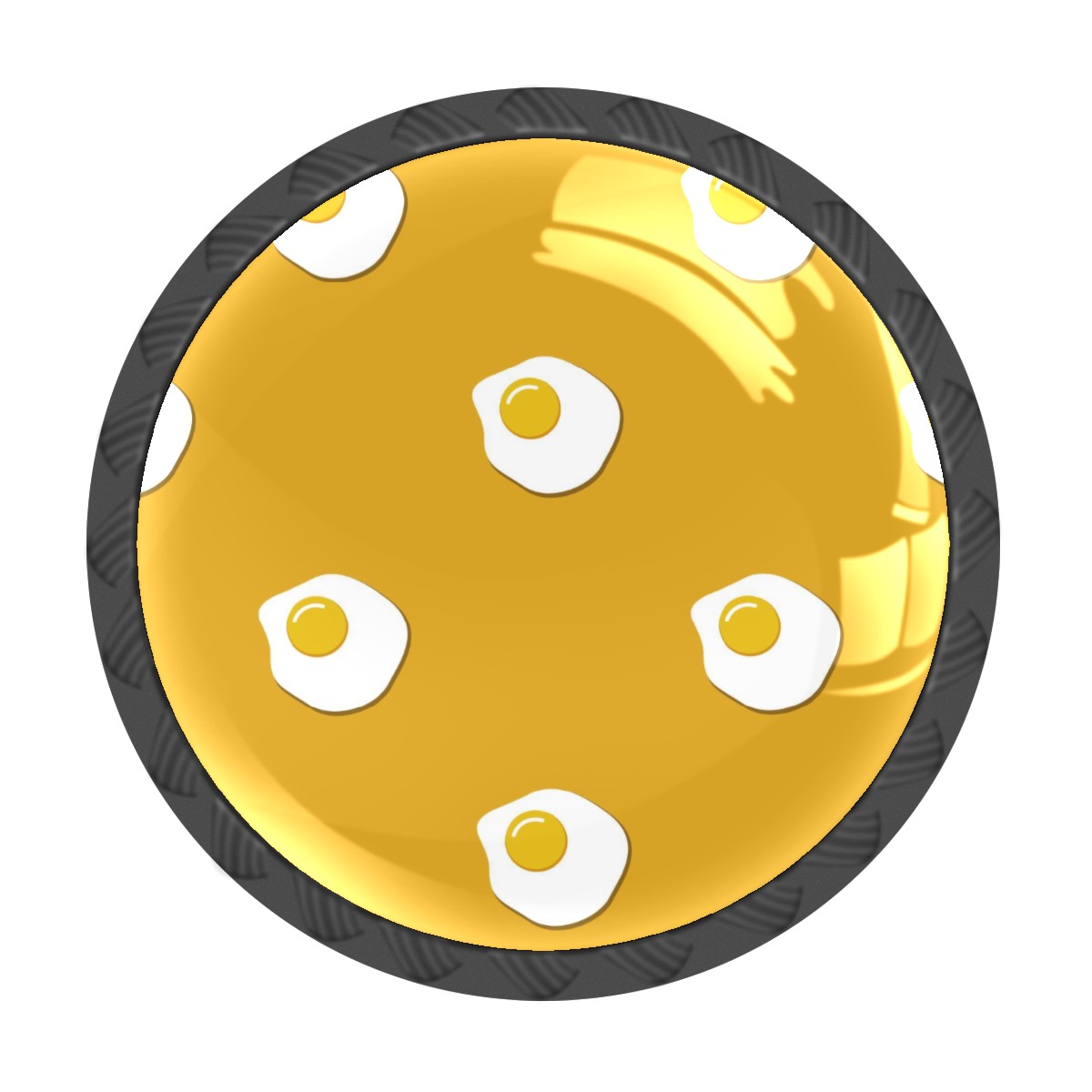 Cabinet Drawer Knobs Set of 4 Fried Egg Pattern Yellow Background Cabinet Furniture Knobs Drawer Pulls Handle Crystal Glass Round Cupboard Knobs with Screws for Cabinets Kitchen Dresser Wardrobe DIY