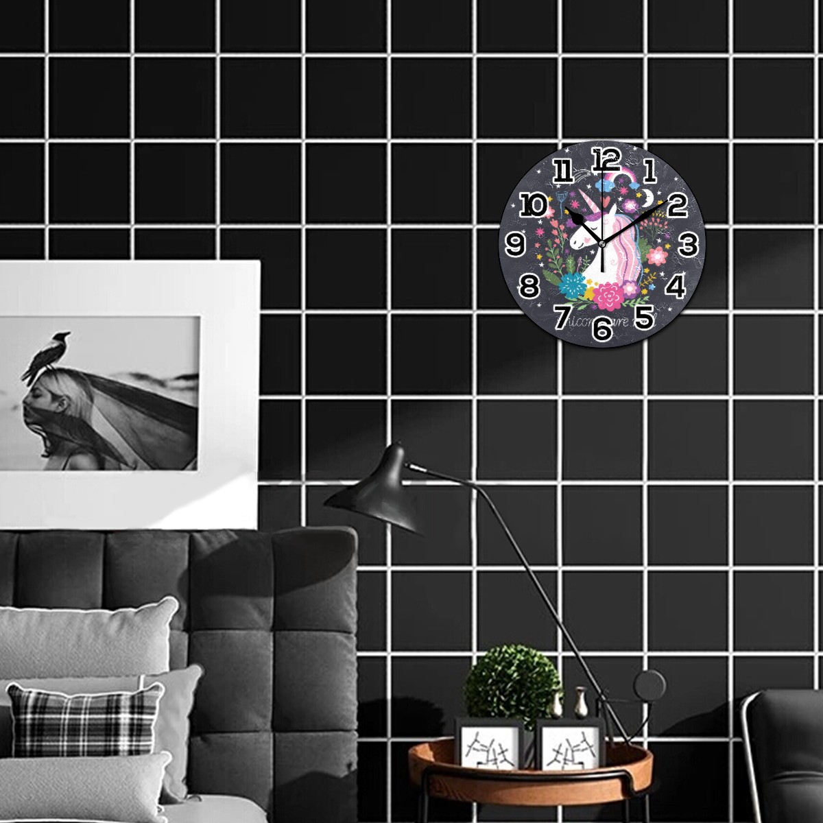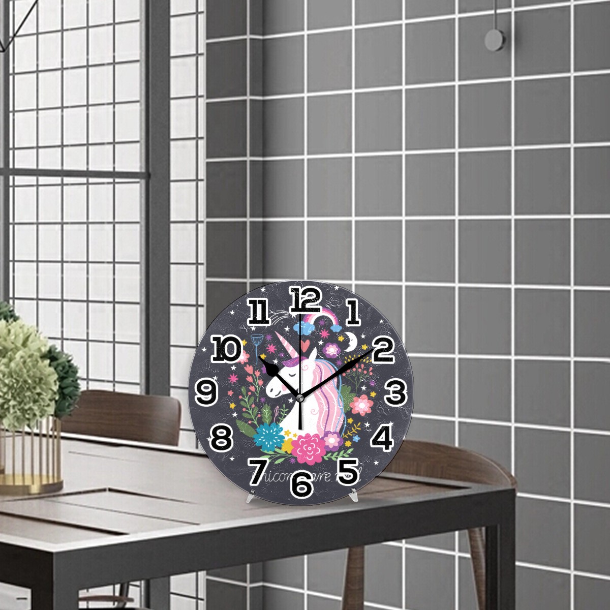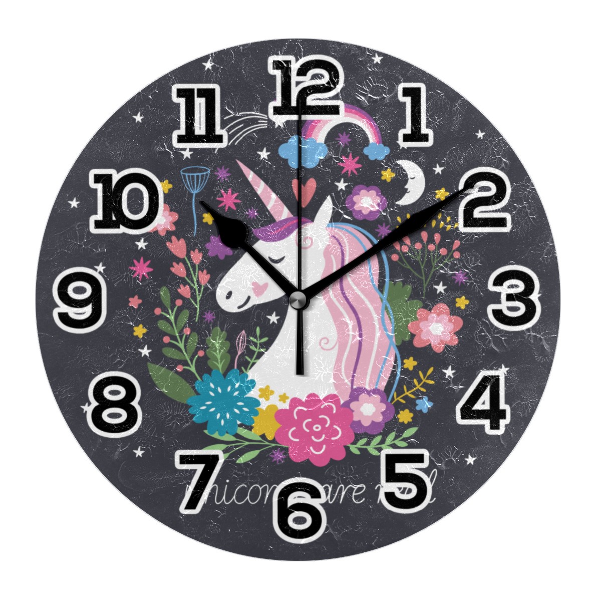 Magic Unicorn Are Real Flower Moon Clock Wall Decor Acrylic Decorative Round Battery Operated Wall Clocks for Home Bedroom Living Room Decor Silent Non Ticking