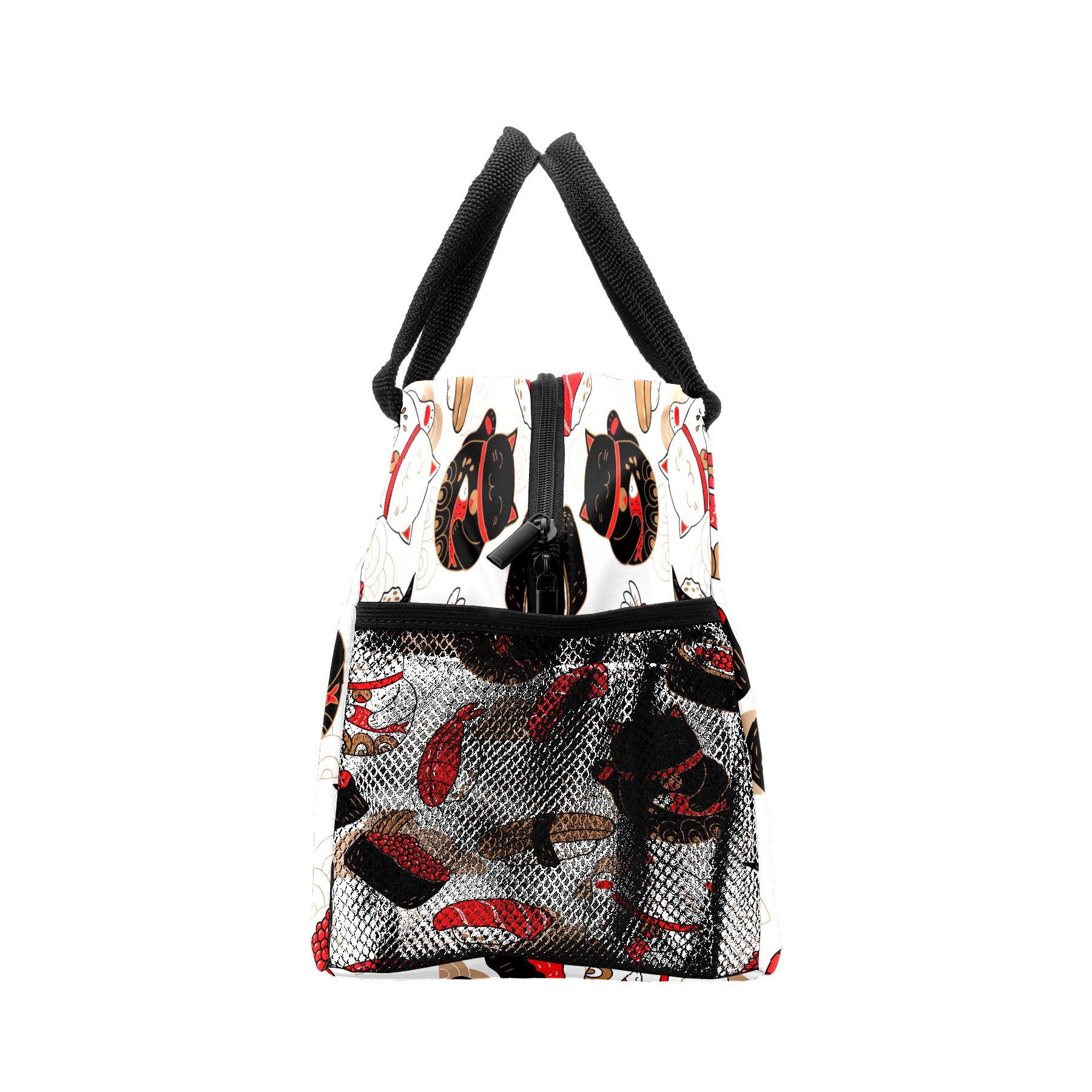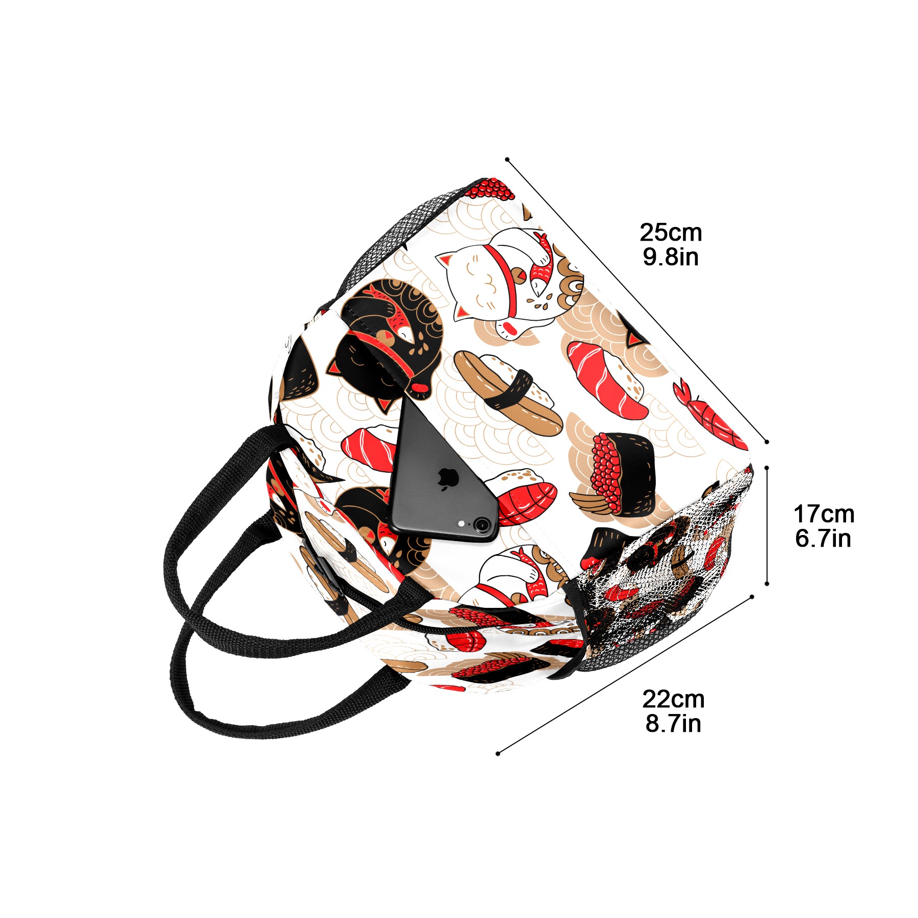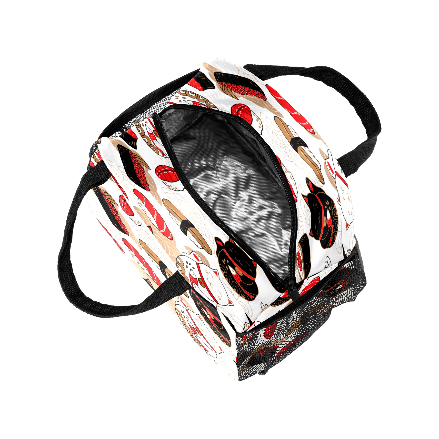 Lunch Bag for Women Men, Japanese Sushi Lucky Cat Pattern Insulated Reusable Lunch Box Thermal Cooler Tote Bag for Work Picnic Hiking Travel Beach