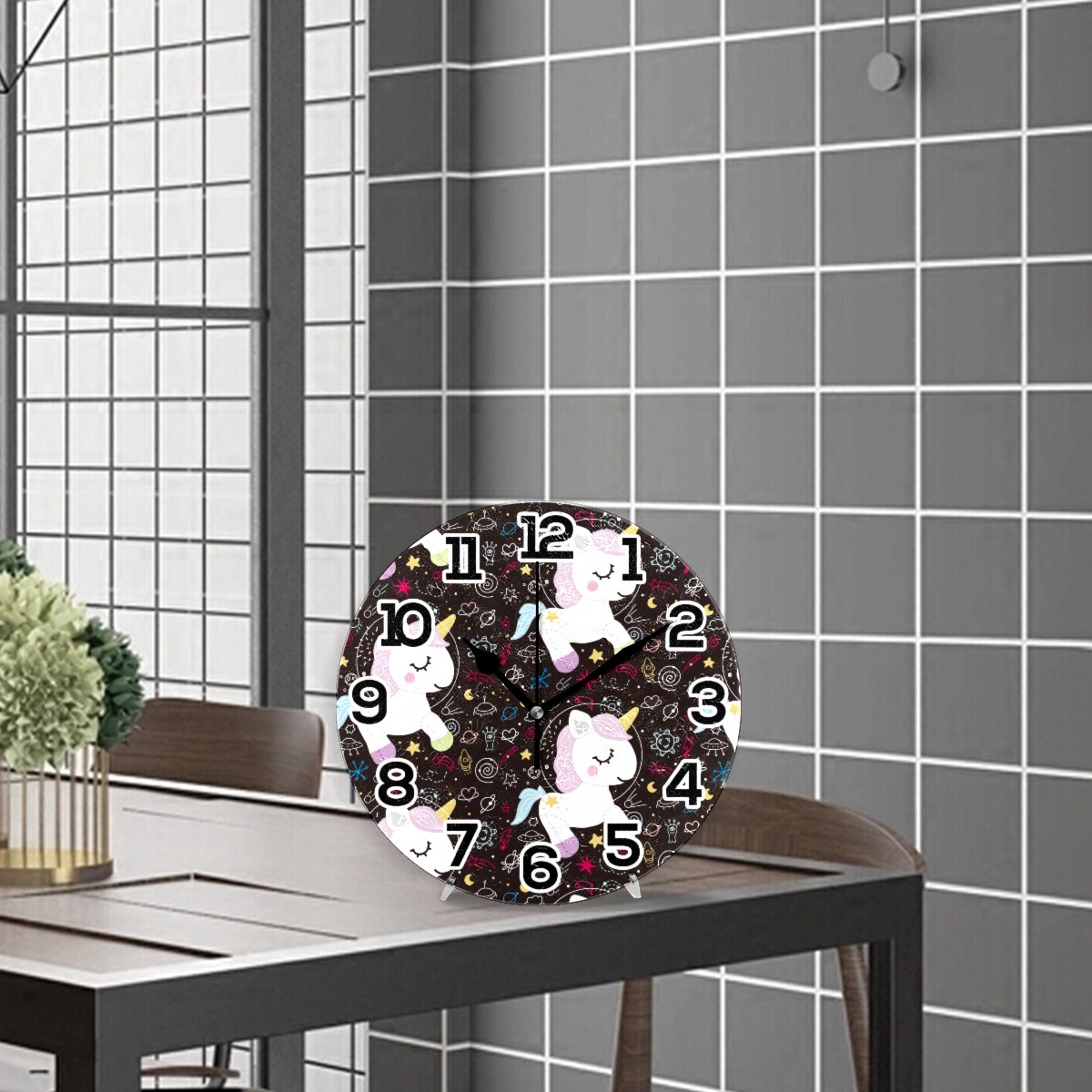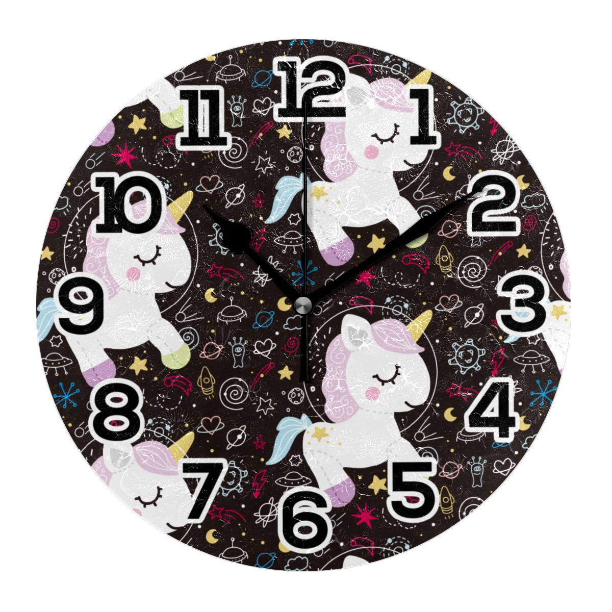 Galaxy Unicorn Horse Astronaut Spaces Planet Clock Wall Decor Acrylic Decorative Round Battery Operated Wall Clocks for Home Bedroom Living Room Decor Silent Non Ticking
