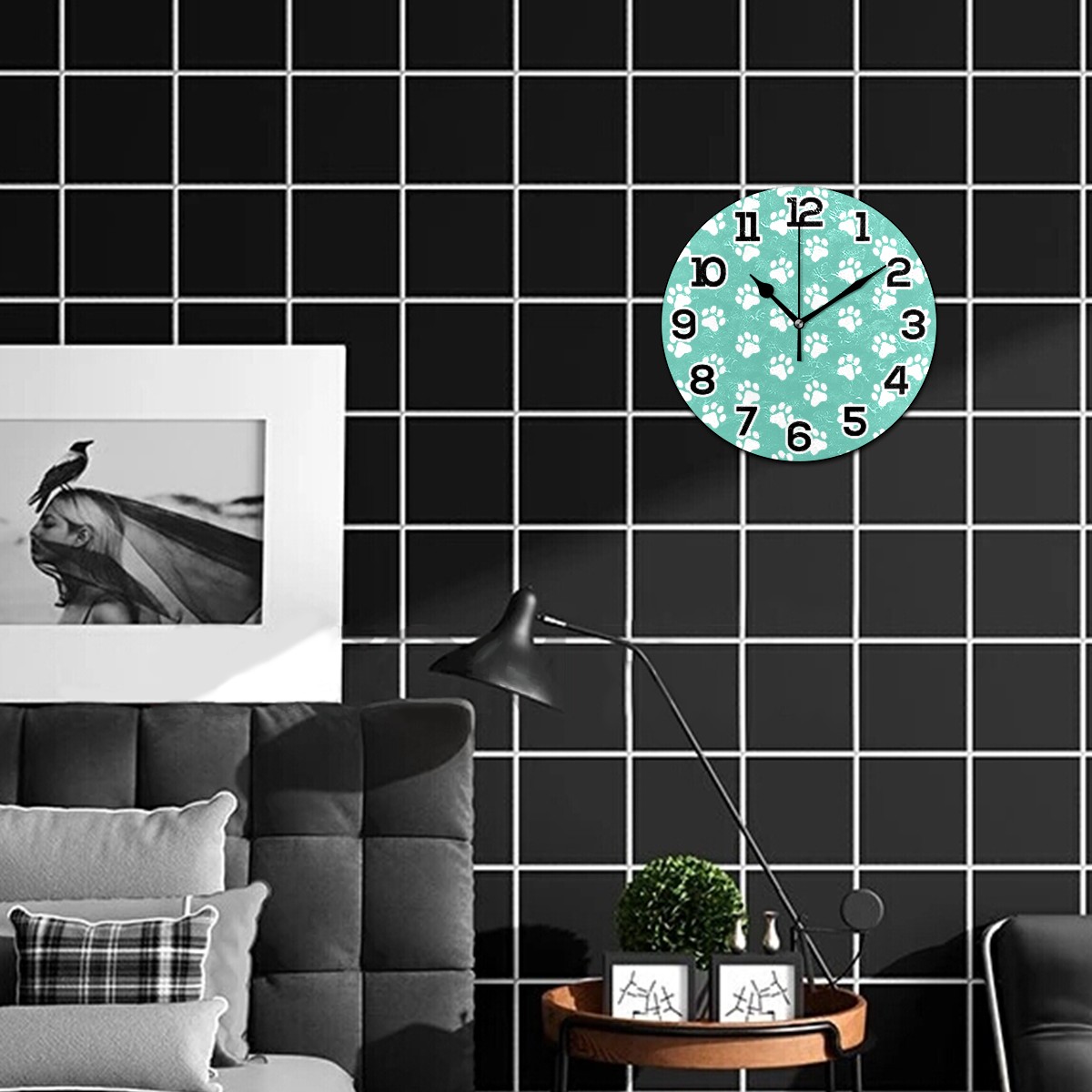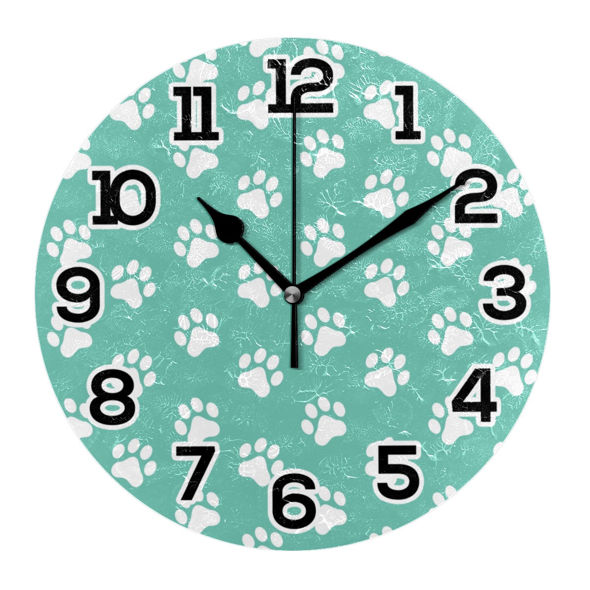 Green Cats Paw Pattern Clock Wall Decor Acrylic Decorative Round Battery Operated Wall Clocks for Home Bedroom Living Room Decor Silent Non Ticking