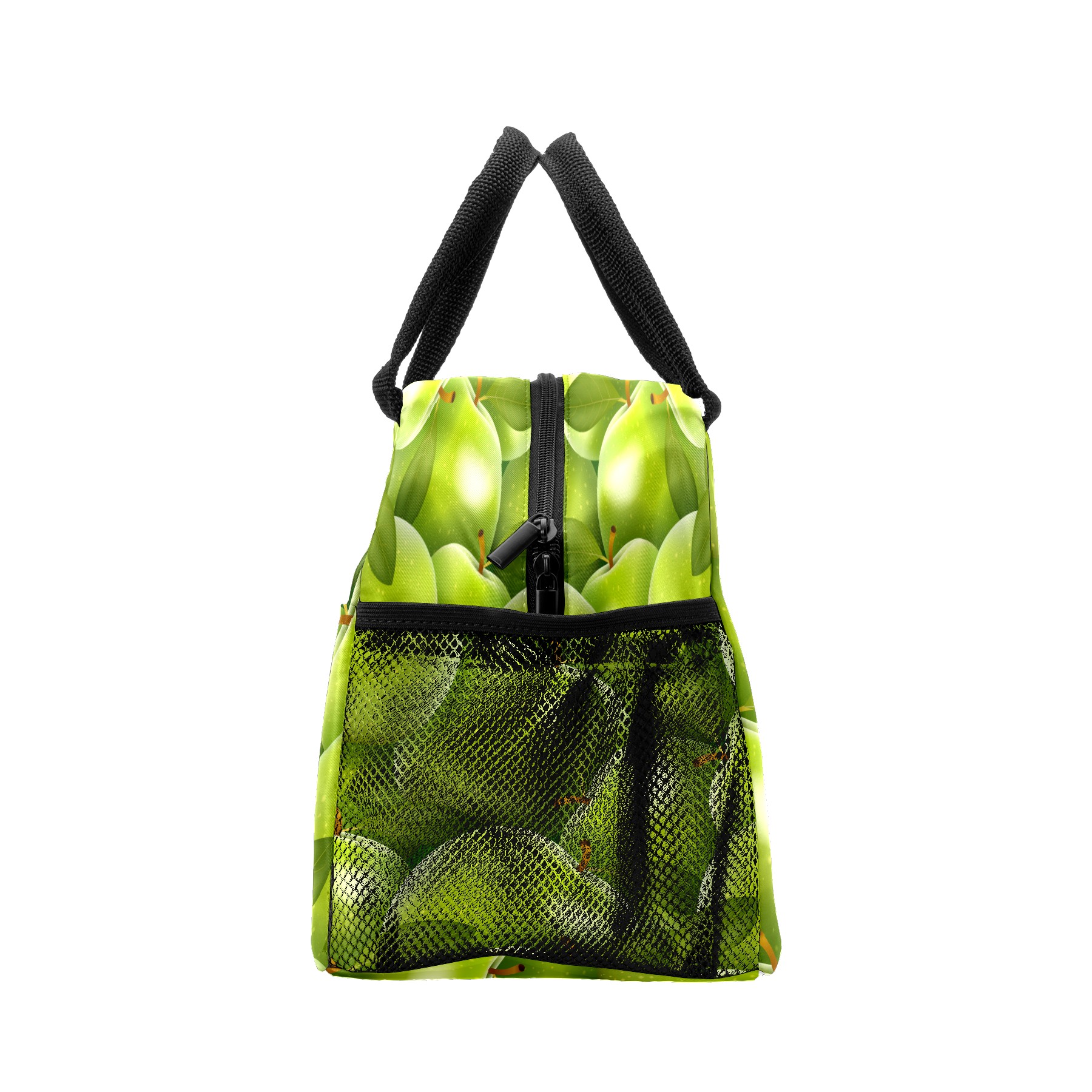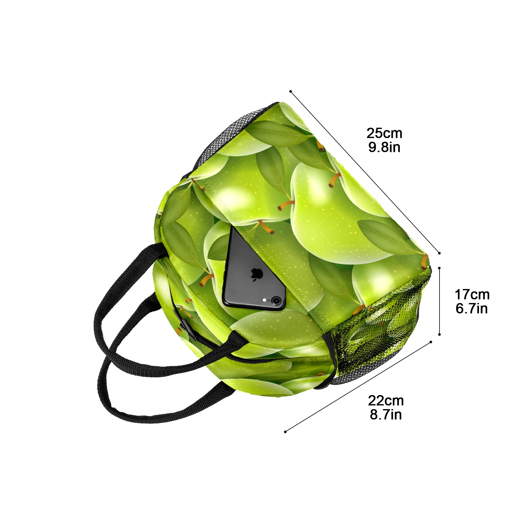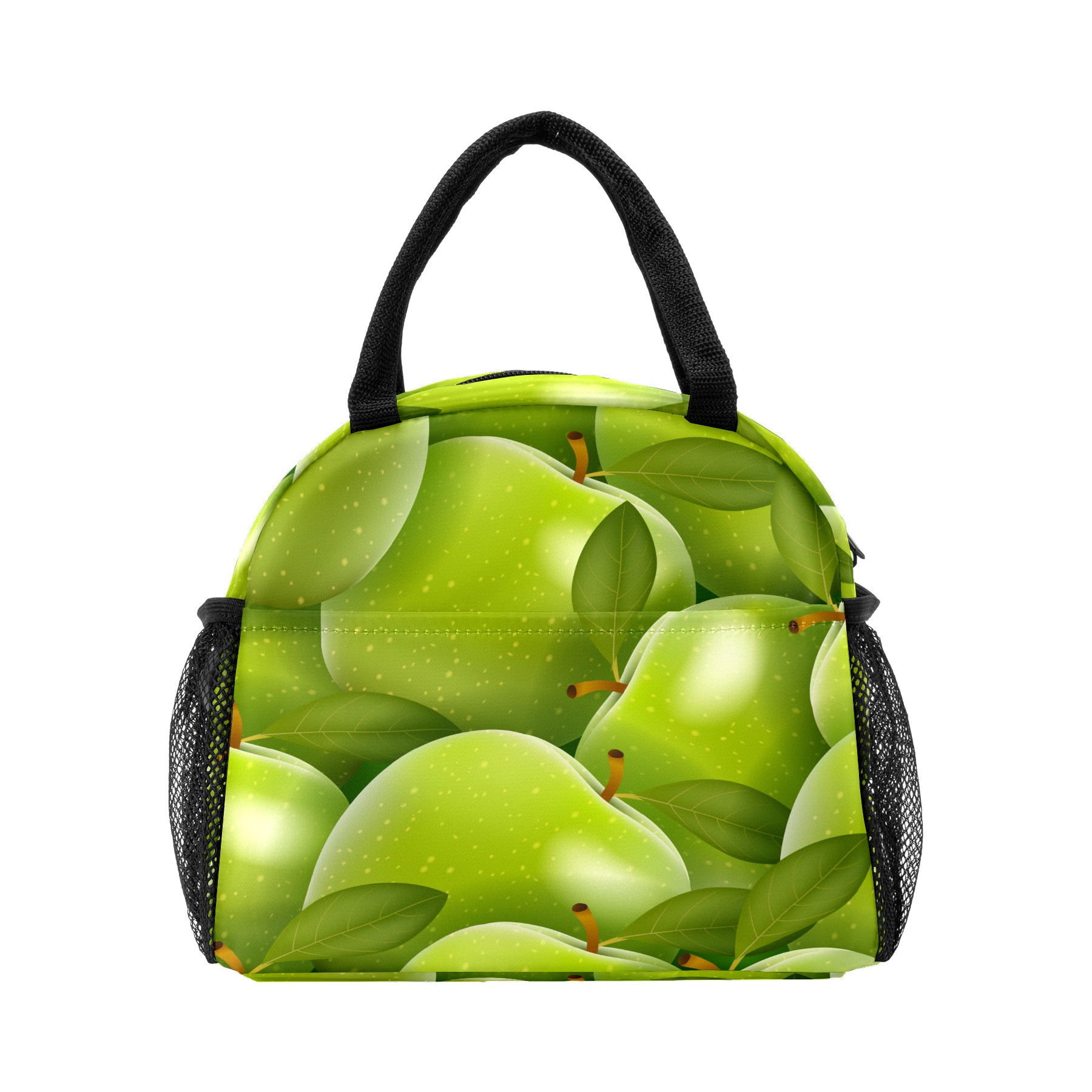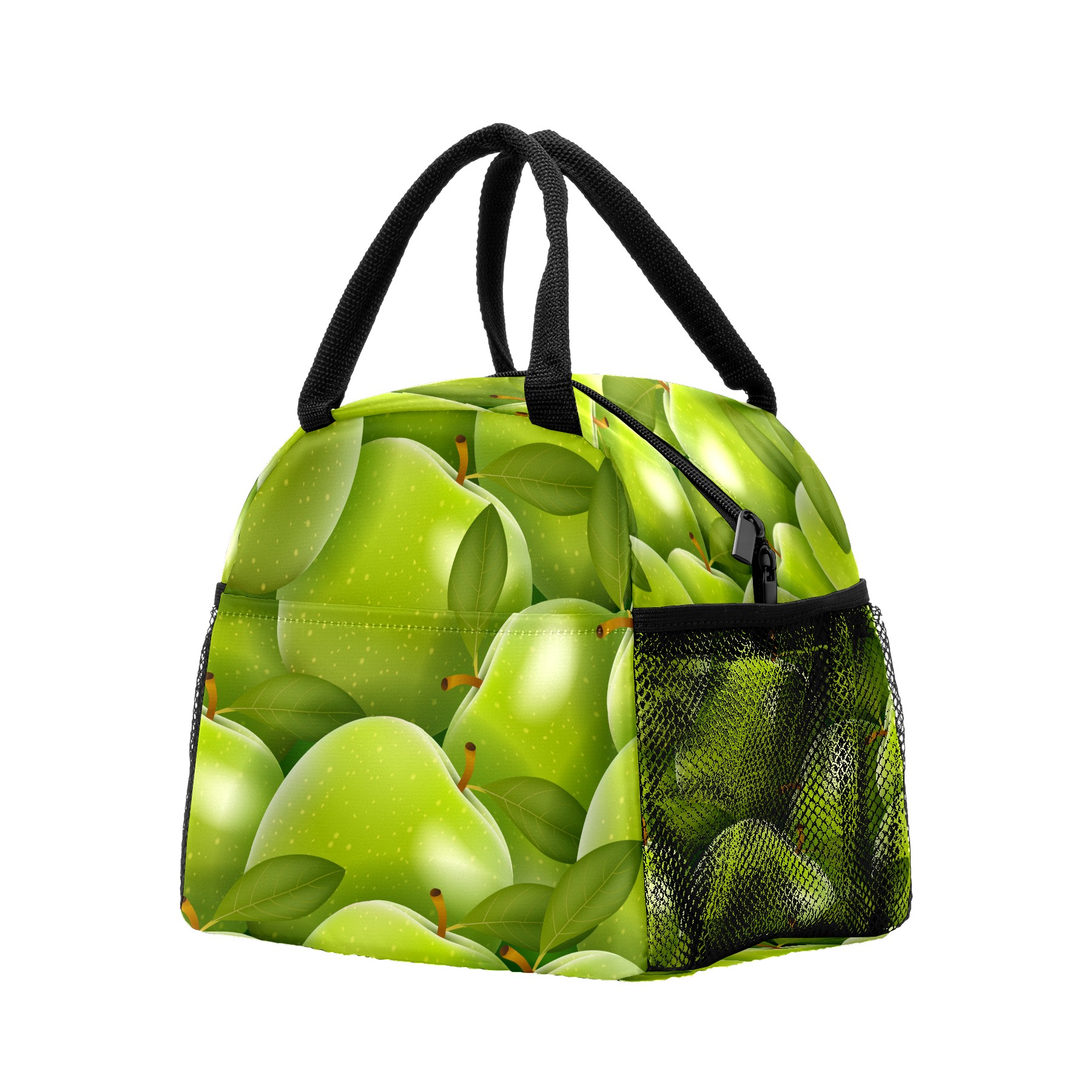 Lunch Bag for Women Men, Green Apple Fruits Pattern Insulated Reusable Lunch Box Thermal Cooler Tote Bag for Work Picnic Hiking Travel Beach
