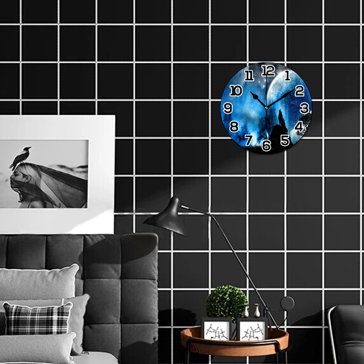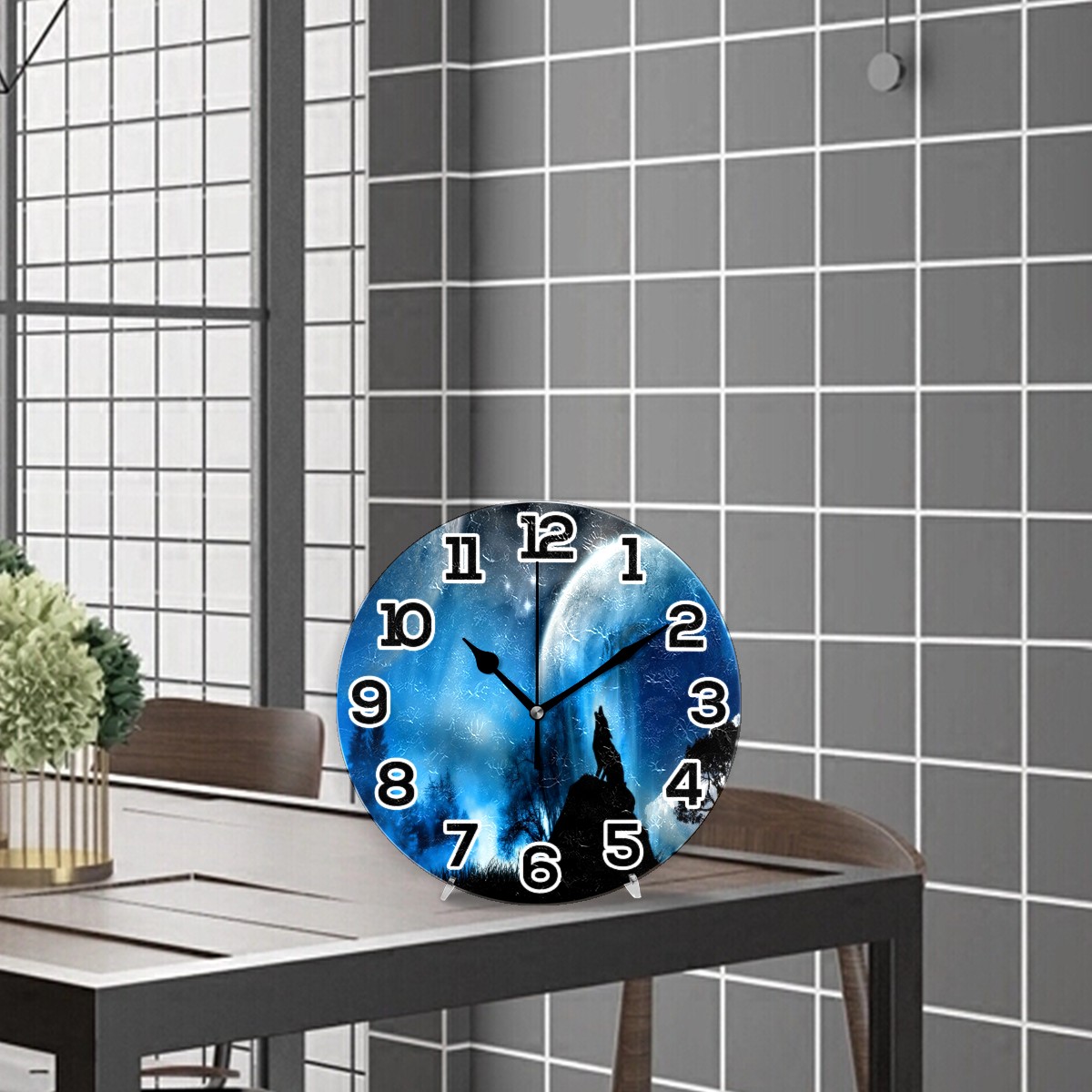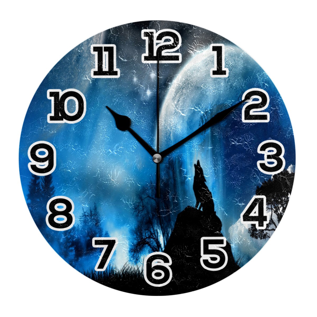 Galaxy Sky Wolf Clock Wall Decor Acrylic Decorative Round Battery Operated Wall Clocks for Home Bedroom Living Room Decor Silent Non Ticking