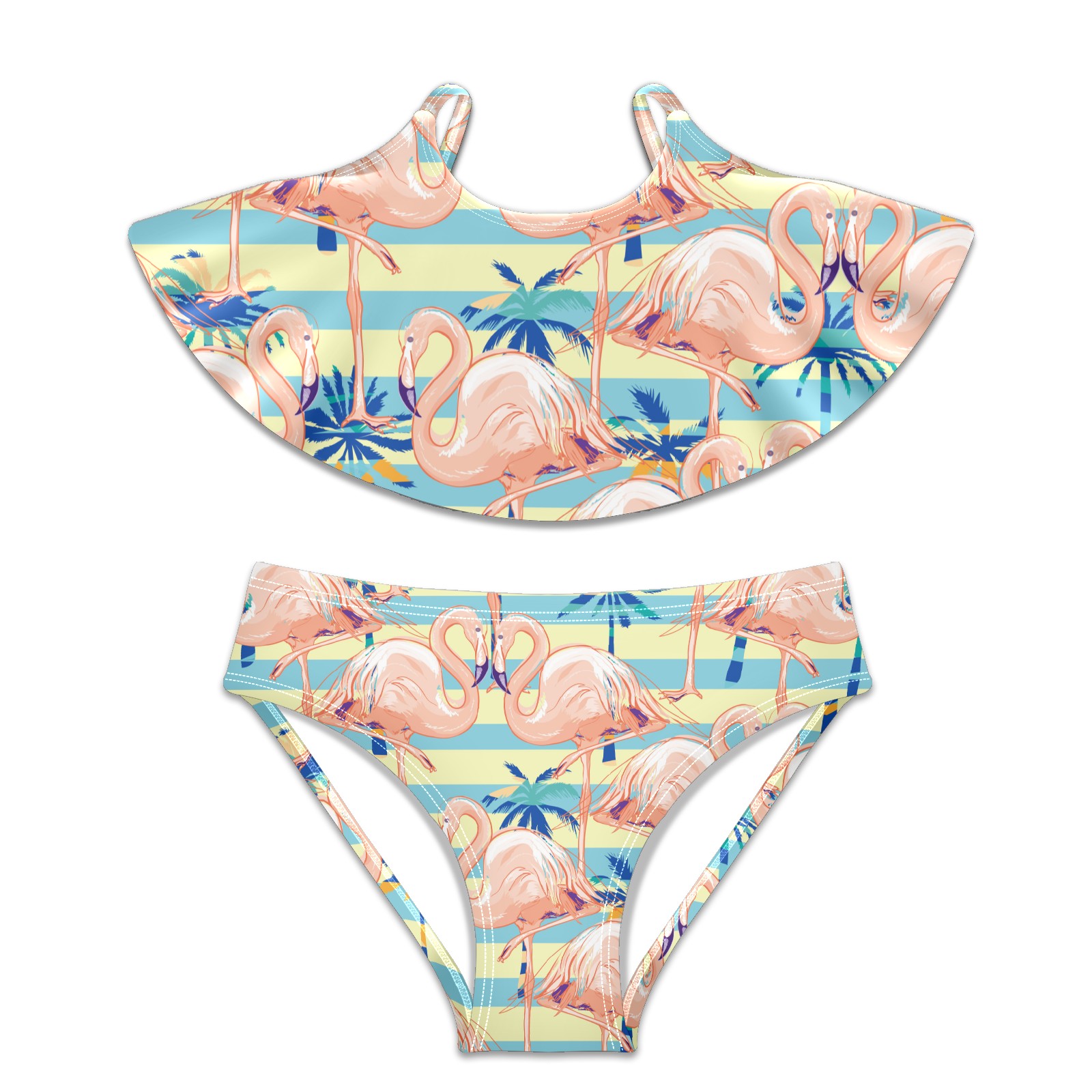 Swimsuits for Girls Two Pieces Bathing Suit Quick Dry Swimwear Tropical Bird Flamingos Trees S