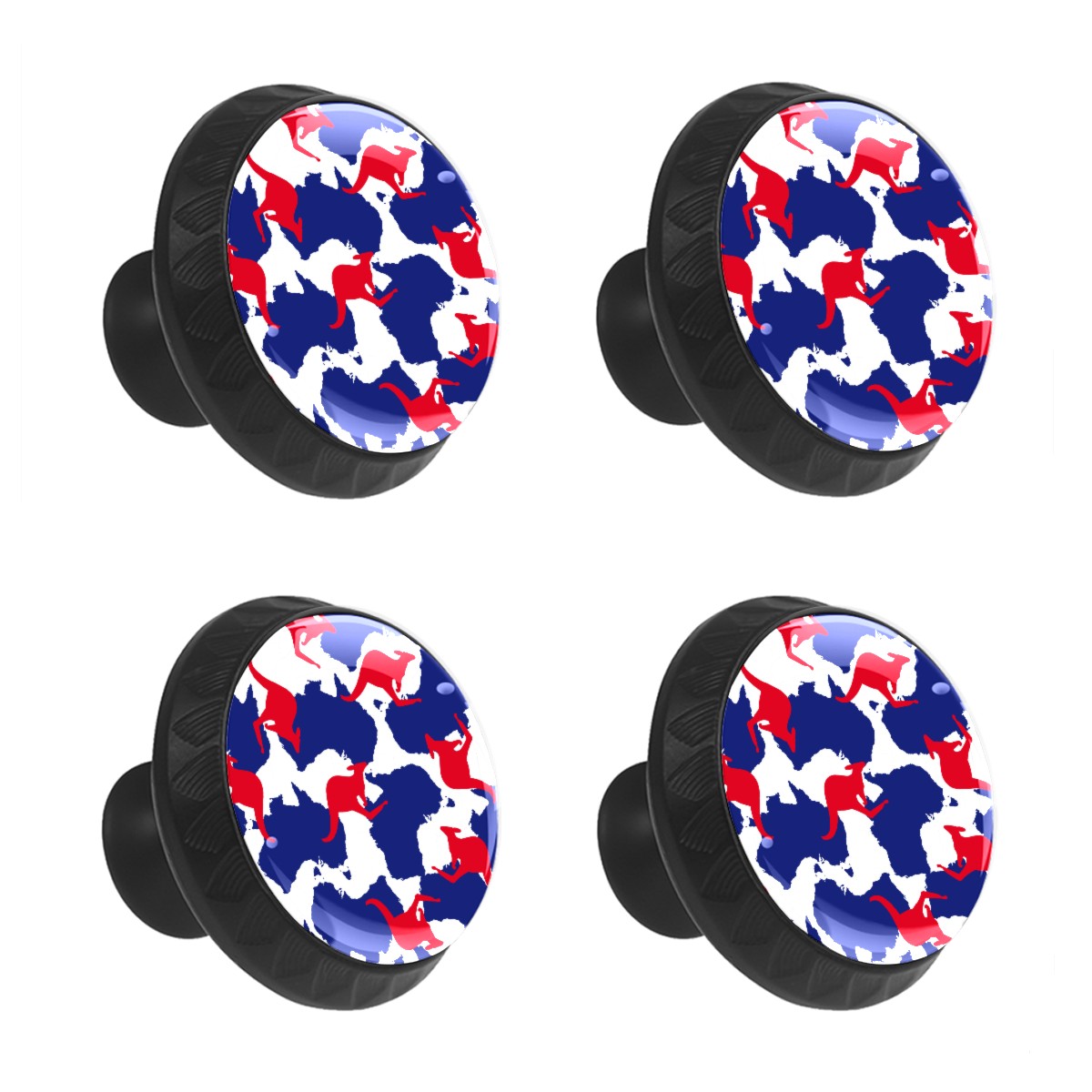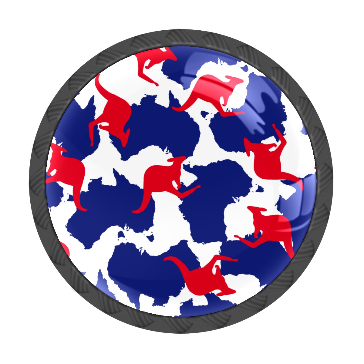 Cabinet Drawer Knobs Set of 4 Blue Australia Map Red Kangaroo Silhouette Cabinet Furniture Knobs Drawer Pulls Handle Crystal Glass Round Cupboard Knobs with Screws for Cabinets Kitchen Dresser Wardrobe DIY