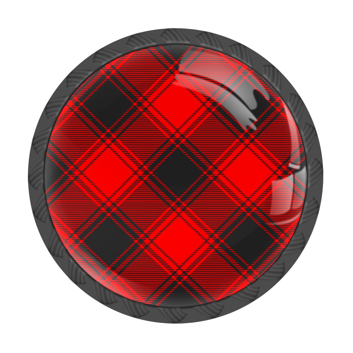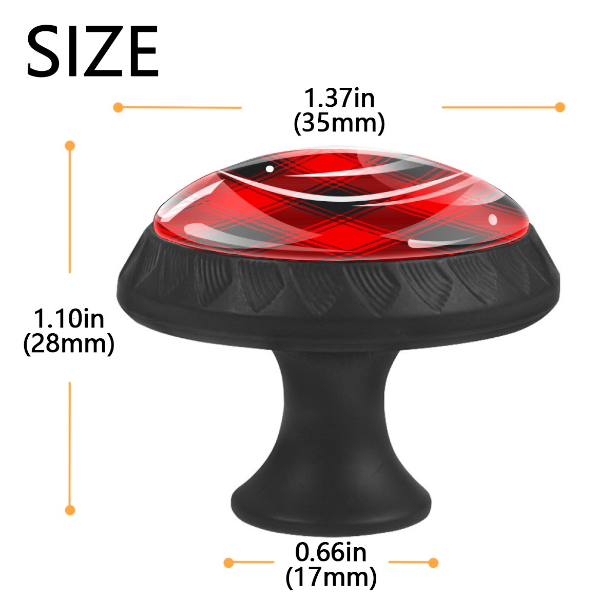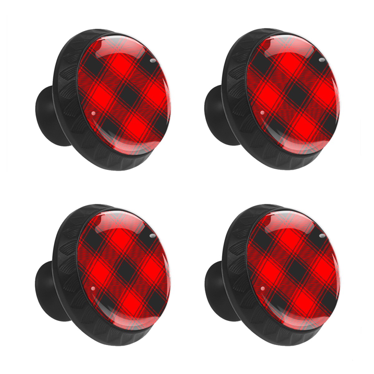 Cabinet Drawer Knobs Set of 4 Buffalo Plaid Pattern Red Black Inclined Cabinet Furniture Knobs Drawer Pulls Handle Crystal Glass Round Cupboard Knobs with Screws for Cabinets Kitchen Dresser Wardrobe DIY