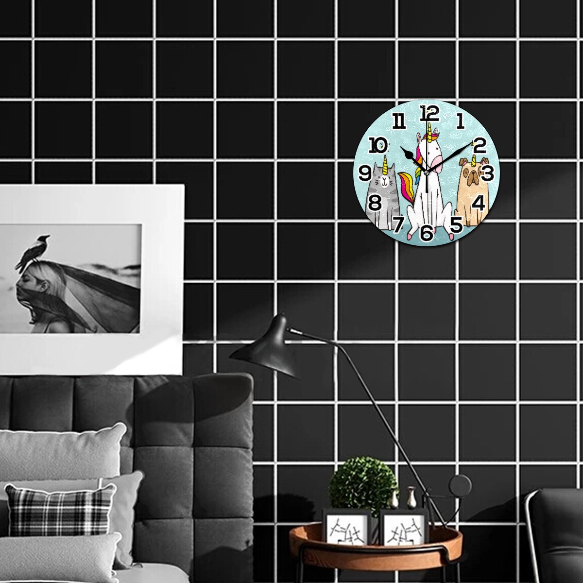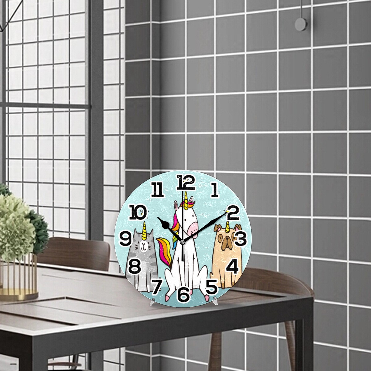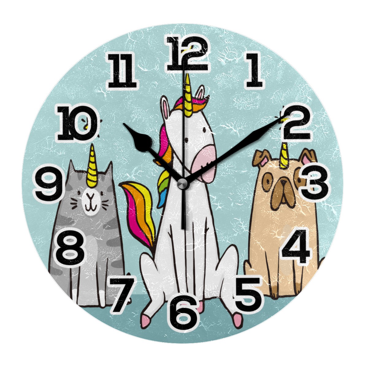 Funny Unicorn Dog Horse Clock Wall Decor Acrylic Decorative Round Battery Operated Wall Clocks for Home Bedroom Living Room Decor Silent Non Ticking