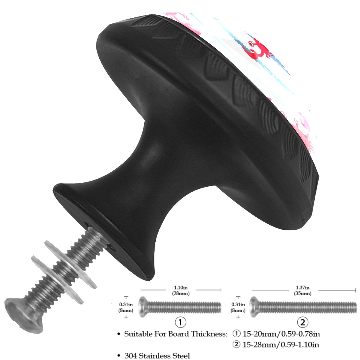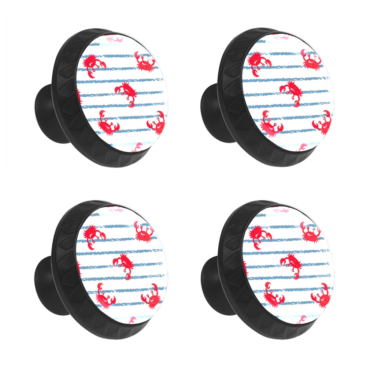 Cabinet Drawer Knobs Set of 4 Red Crab Blue White Stripes Cabinet Furniture Knobs Drawer Pulls Handle Crystal Glass Round Cupboard Knobs with Screws for Cabinets Kitchen Dresser Wardrobe DIY