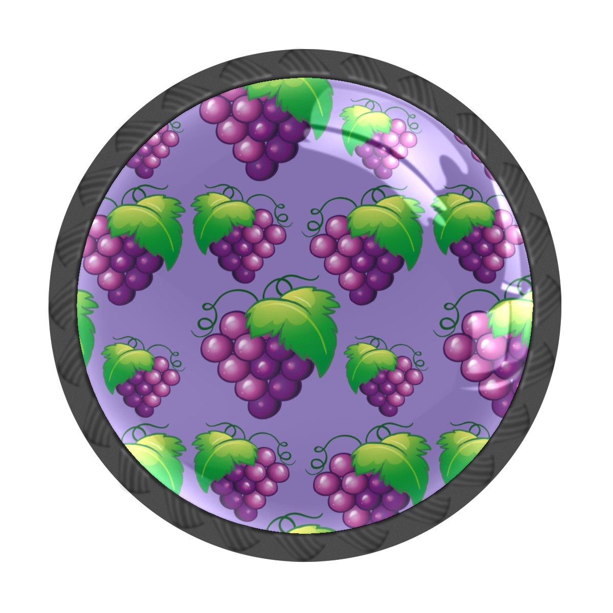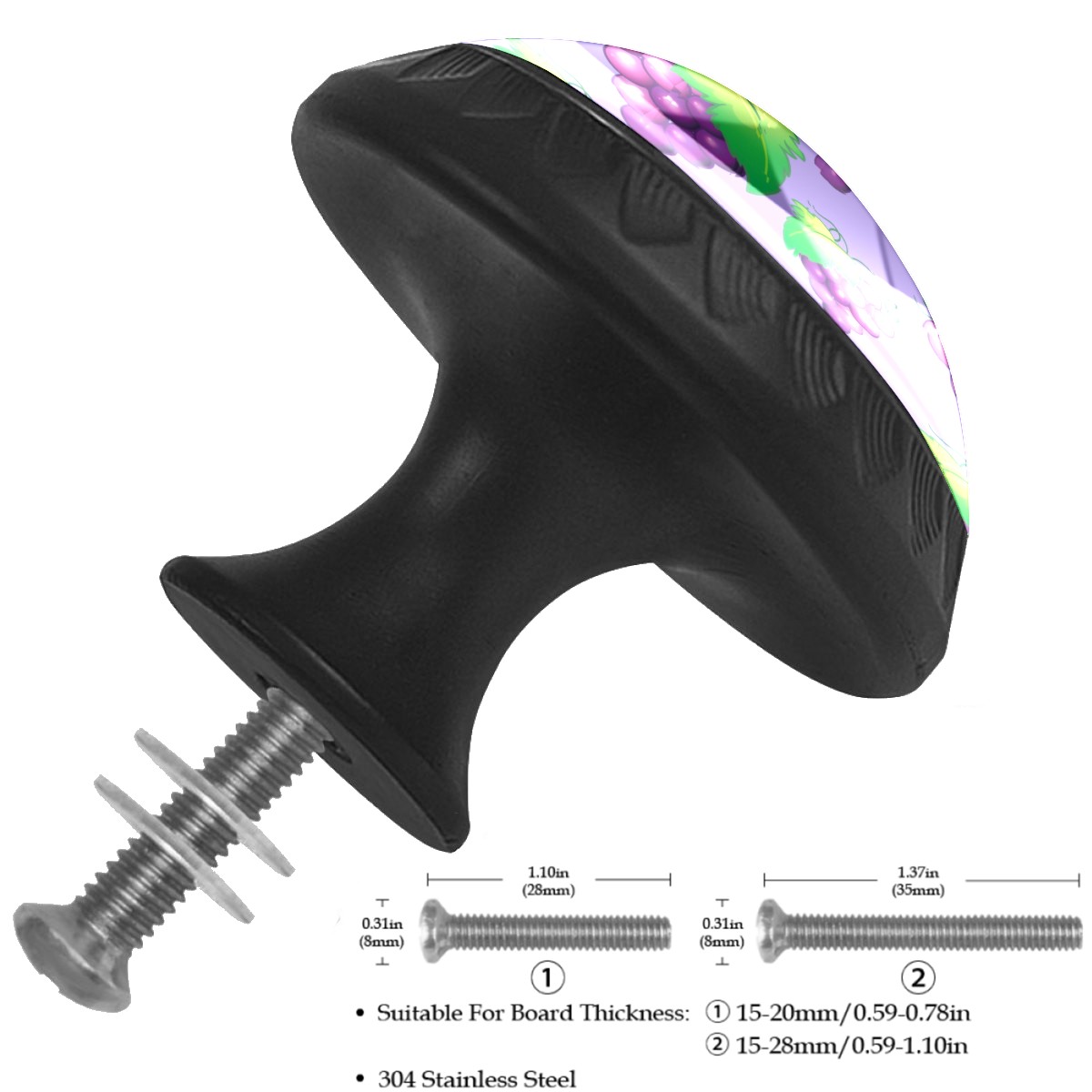 Cabinet Drawer Knobs Set of 4 Sweet Fresh Grapes Pattern Purple Cabinet Furniture Knobs Drawer Pulls Handle Crystal Glass Round Cupboard Knobs with Screws for Cabinets Kitchen Dresser Wardrobe DIY