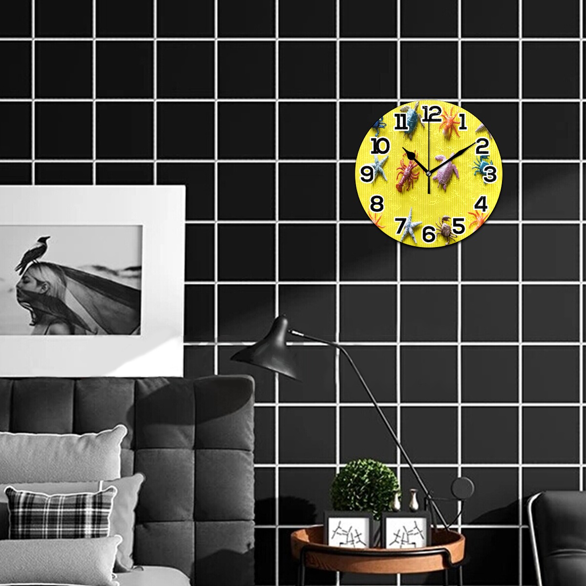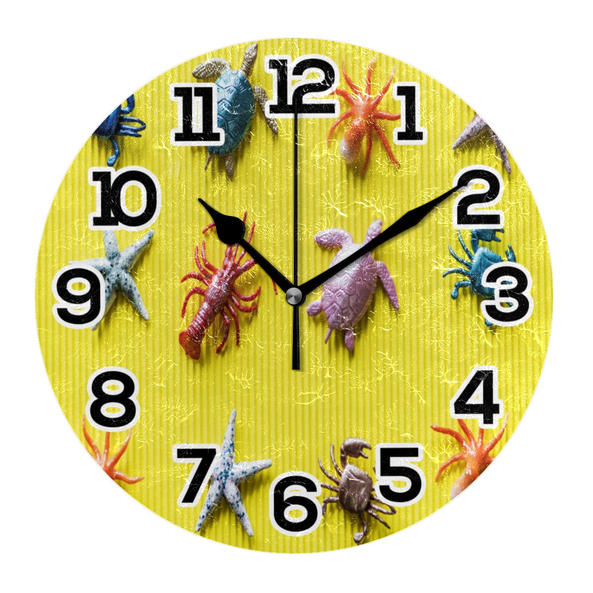 Funny Starfish Tortoise Crab Ocean World Clock Wall Decor Acrylic Decorative Round Battery Operated Wall Clocks for Home Bedroom Living Room Decor Silent Non Ticking