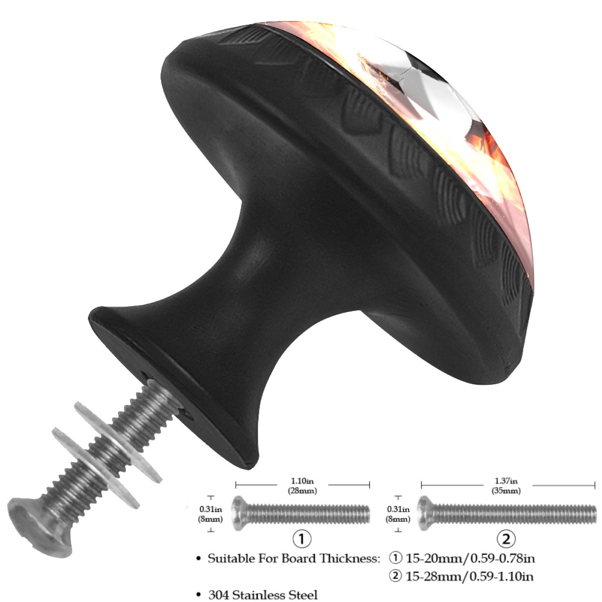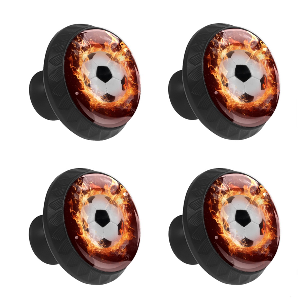 Cabinet Drawer Knobs Set of 4 Hot Soccer Ball Fires Flame Sports Cabinet Furniture Knobs Drawer Pulls Handle Crystal Glass Round Cupboard Knobs with Screws for Cabinets Kitchen Dresser Wardrobe DIY